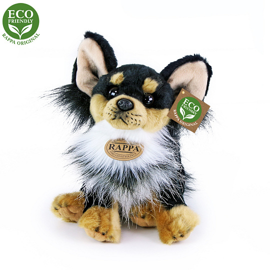 Plyšový pes rasy čivava měří 24 cm a díky těm nejkvalitnějším materiálům se řadí do Exkluzivní kolekce plyšových hraček značky Rappa. Díky ručnímu zpracování každého kusu navíc vypadá jako živý. Proč označení ECO-FRIENDLY? Rappa si je vědoma všech dopadů na životního prostředí, zaměřuje se na udržitelnost a omezení používání plastů na minimum. Proto je výplň hraček vyrobena z recyklovaných materiálů, zejména PET lahví. Ta je však zcela nezávadná a vhodná i pro děti od narození. FUN FACT: Věděli jste, že čivavy mají v poměru k velikosti těla jeden z největších mozků mezi psy?