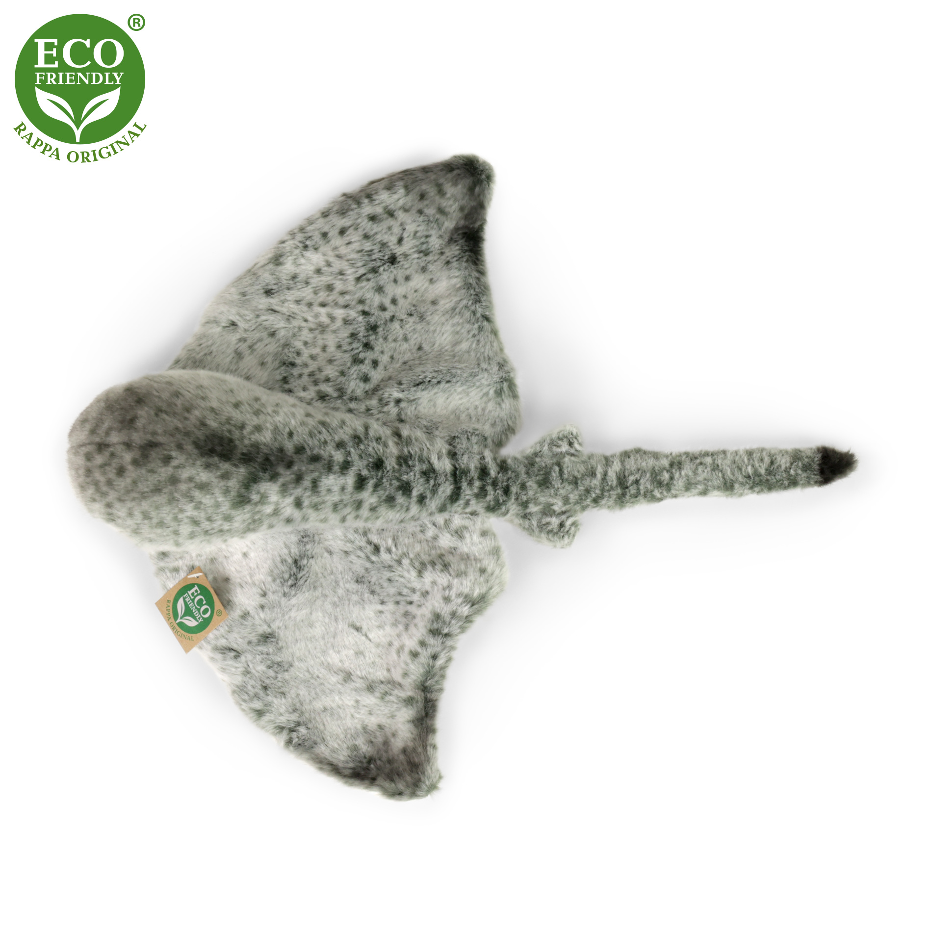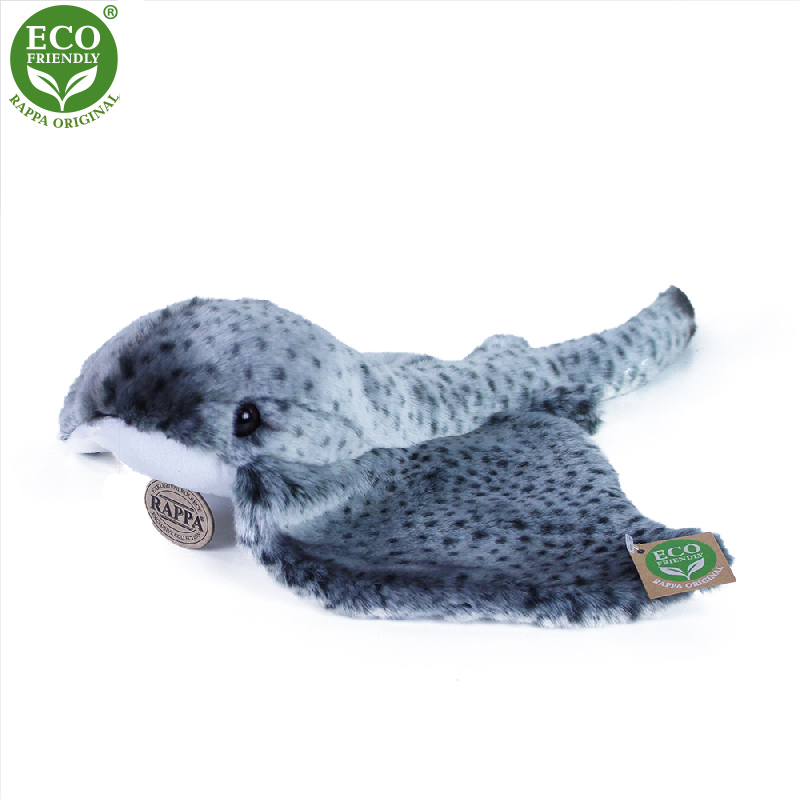 Plyšový rejnok měří 43 cm a díky těm nejkvalitnějším materiálům se řadí do Exkluzivní kolekce plyšových hraček značky Rappa. Díky ručnímu zpracování každého kusu navíc vypadá jako živý. Proč označení ECO-FRIENDLY? Rappa si je vědoma všech dopadů na životního prostředí, zaměřuje se na udržitelnost a omezení používání plastů na minimum. Proto je výplň hraček vyrobena z recyklovaných materiálů, zejména PET lahví. Ta je však zcela nezávadná a vhodná i pro děti od narození. FUN FACT: Věděli jste, že rejnoci mají speciální smyslové orgány zvané Lorenziniho ampule a proto dokážou vnímat i ty nejmenší elektrické signály kořisti ukryté v písku?