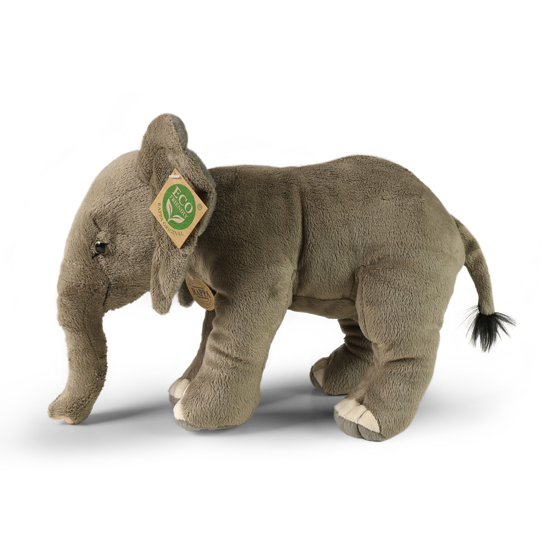 Plyšový slon měří 28 cm a díky těm nejkvalitnějším materiálům se řadí do Exkluzivní kolekce plyšových hraček značky Rappa. Díky ručnímu zpracování každého kusu navíc vypadá jako živý. Proč označení ECO-FRIENDLY? Rappa si je vědoma všech dopadů na životního prostředí, zaměřuje se na udržitelnost a omezení používání plastů na minimum. Proto je výplň hraček vyrobena z recyklovaných materiálů, zejména PET lahví. Ta je však zcela nezávadná a vhodná i pro děti od narození. FUN FACT: Věděli jste, že sloni umí „příst“ podobně jako kočky, když jsou spokojení nebo klidní?