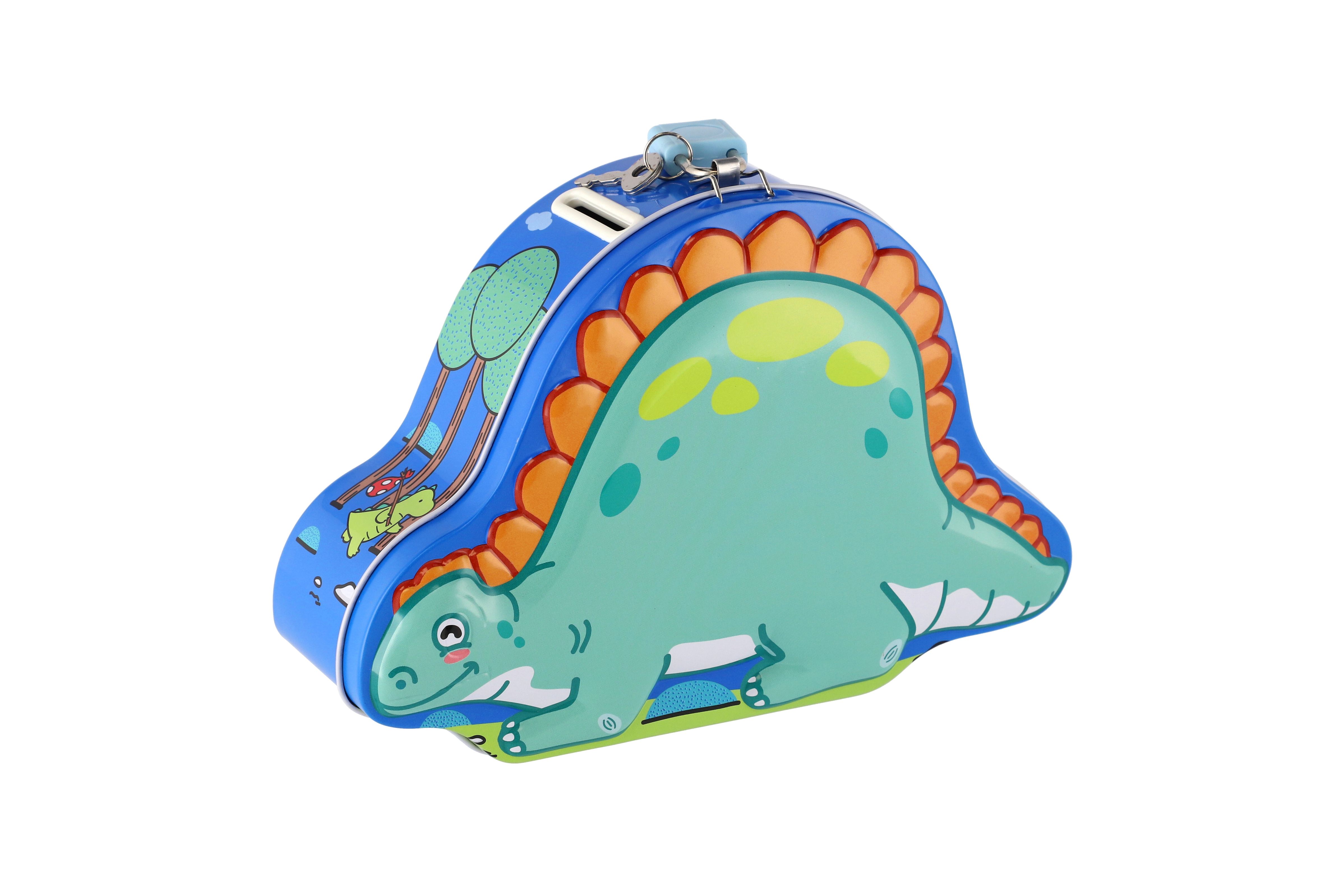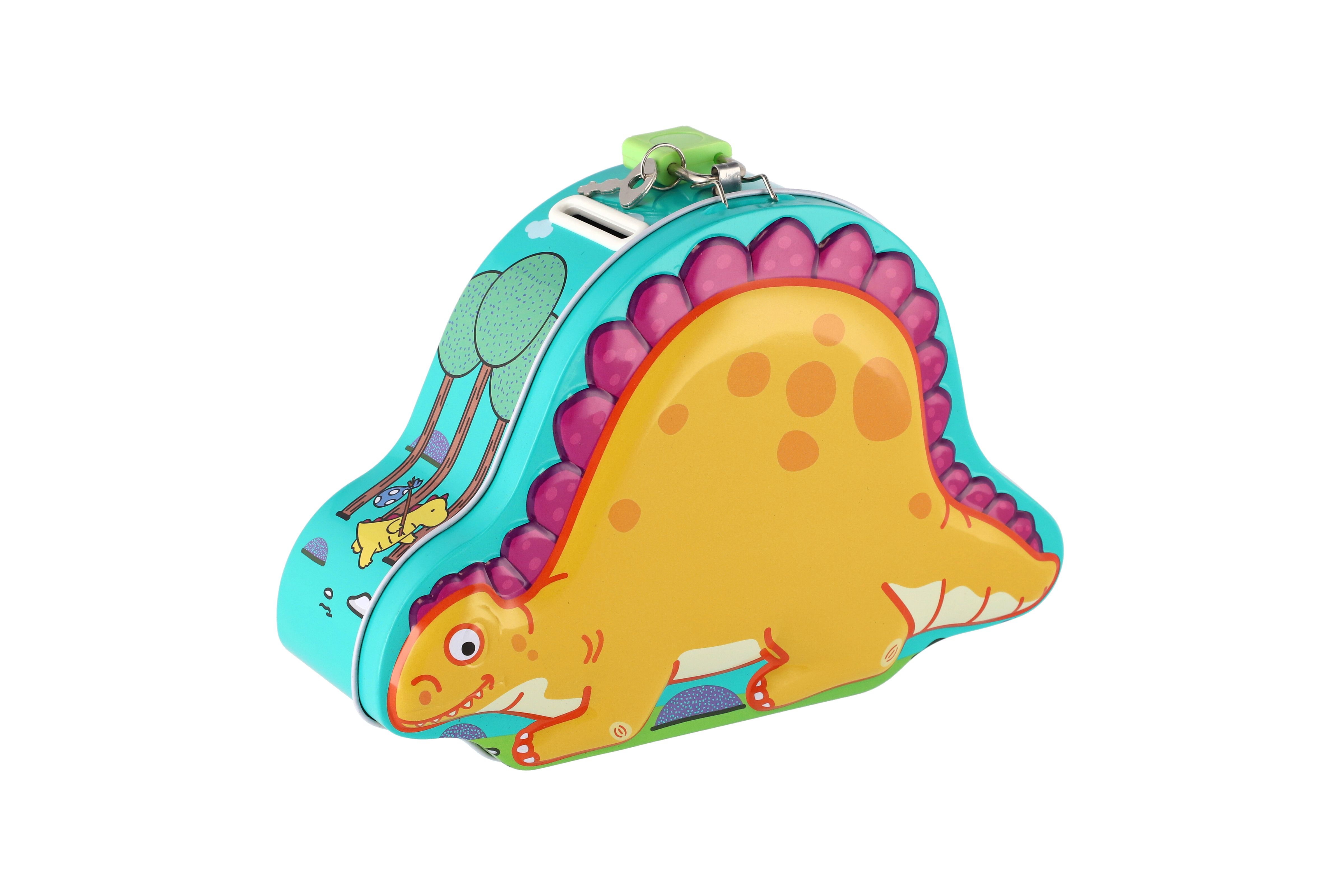 Wiky Pokladnička dinosaurus plechová se zámkem 18x13cm, 3 barvy