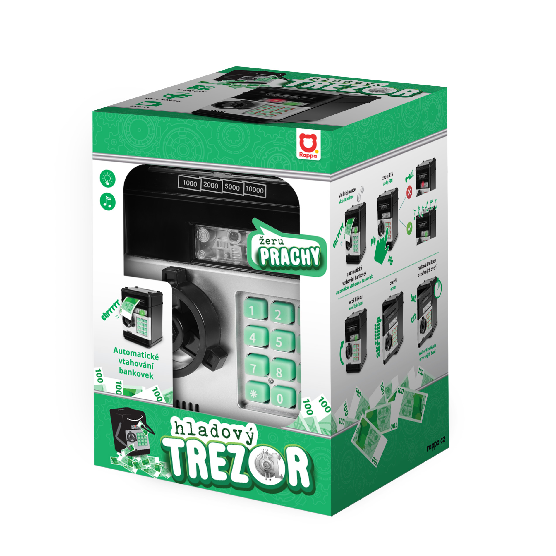 Rappa Pokladnička hladový trezor- bankomat na mince i bankovky s PIN kódem - český obal