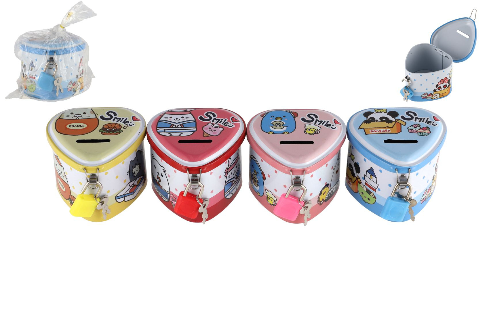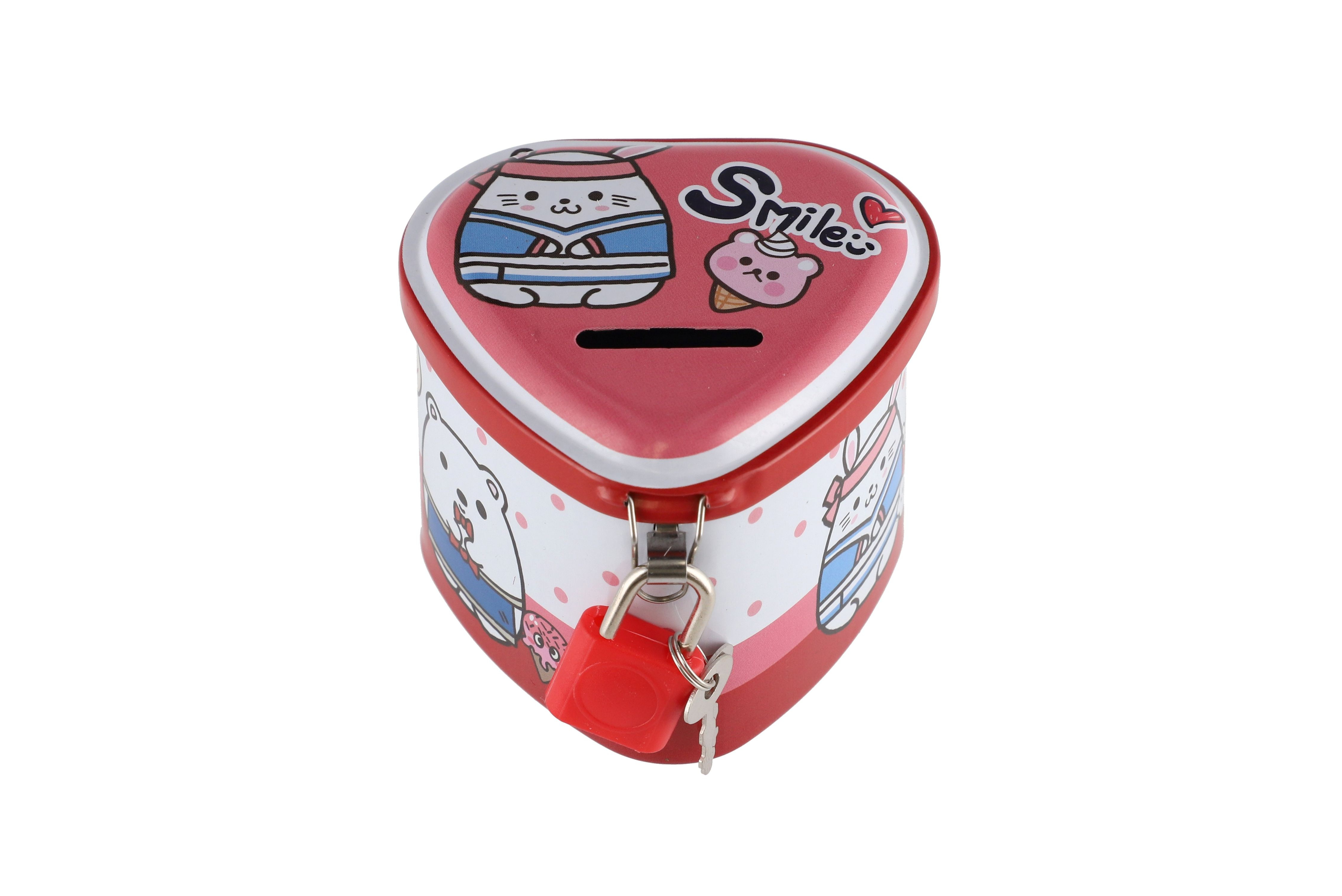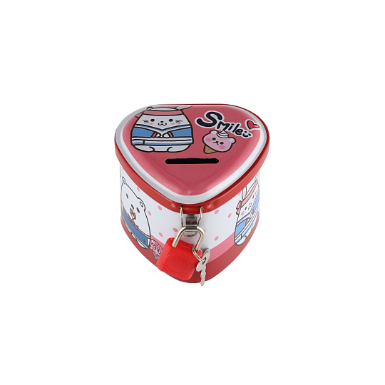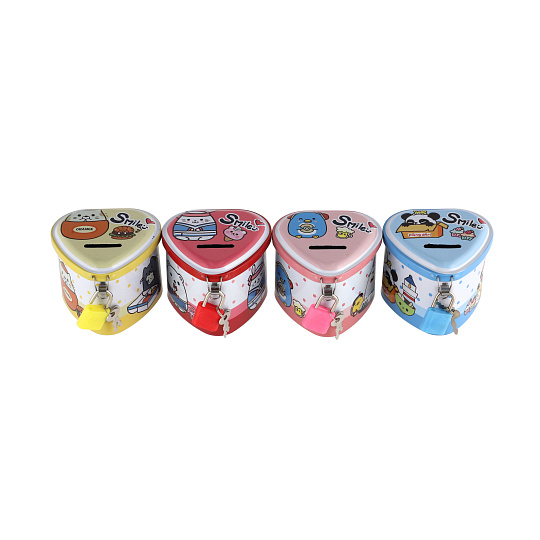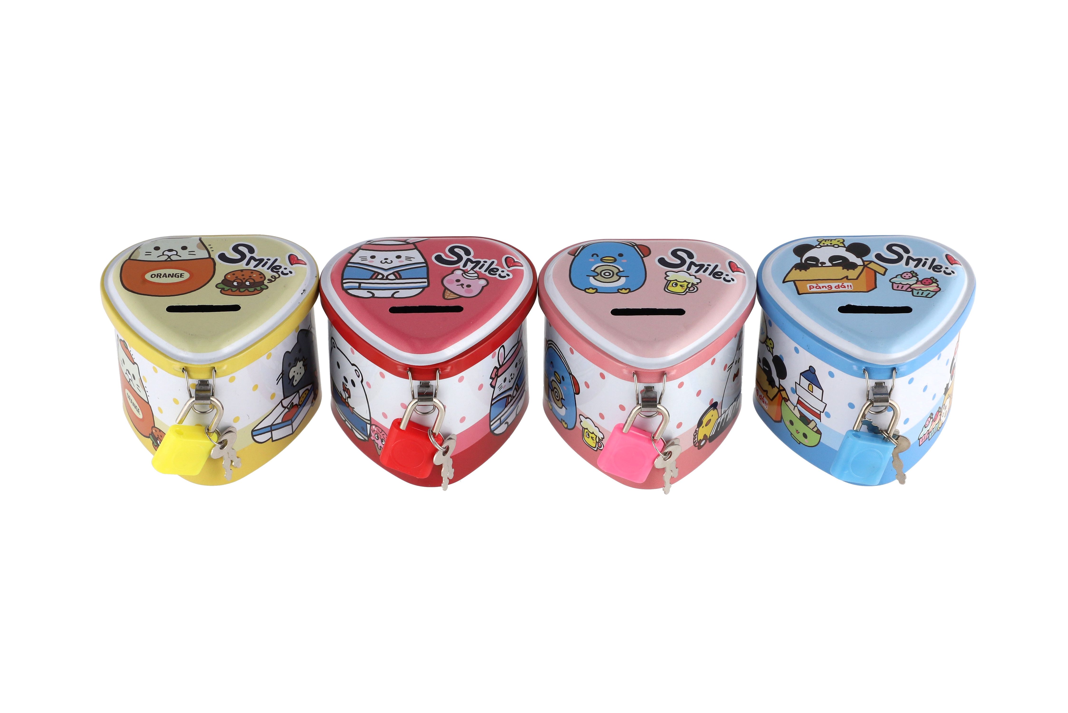 Teddies Pokladnička plechová srdce se zámkem 8x7cm 4 barvy
