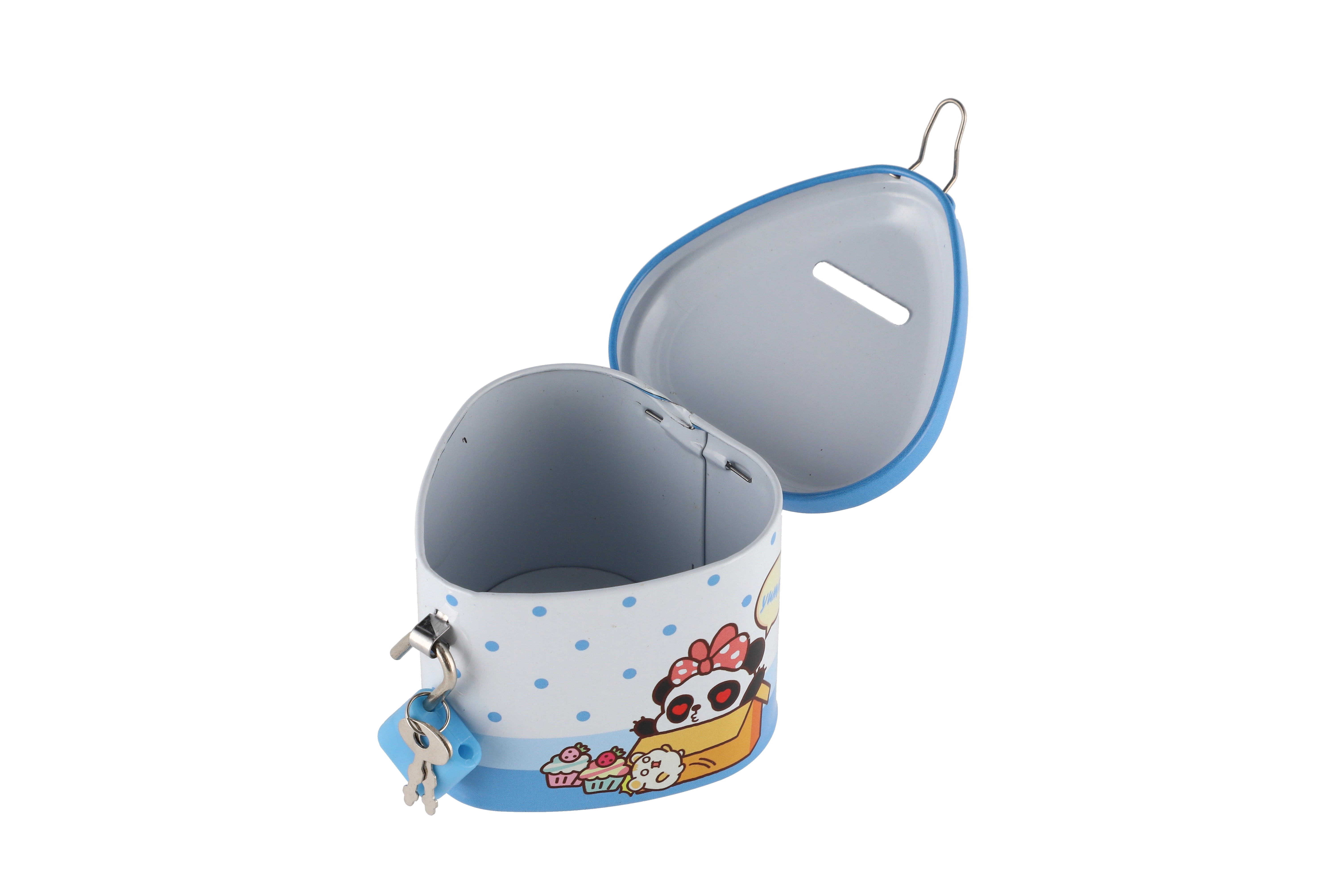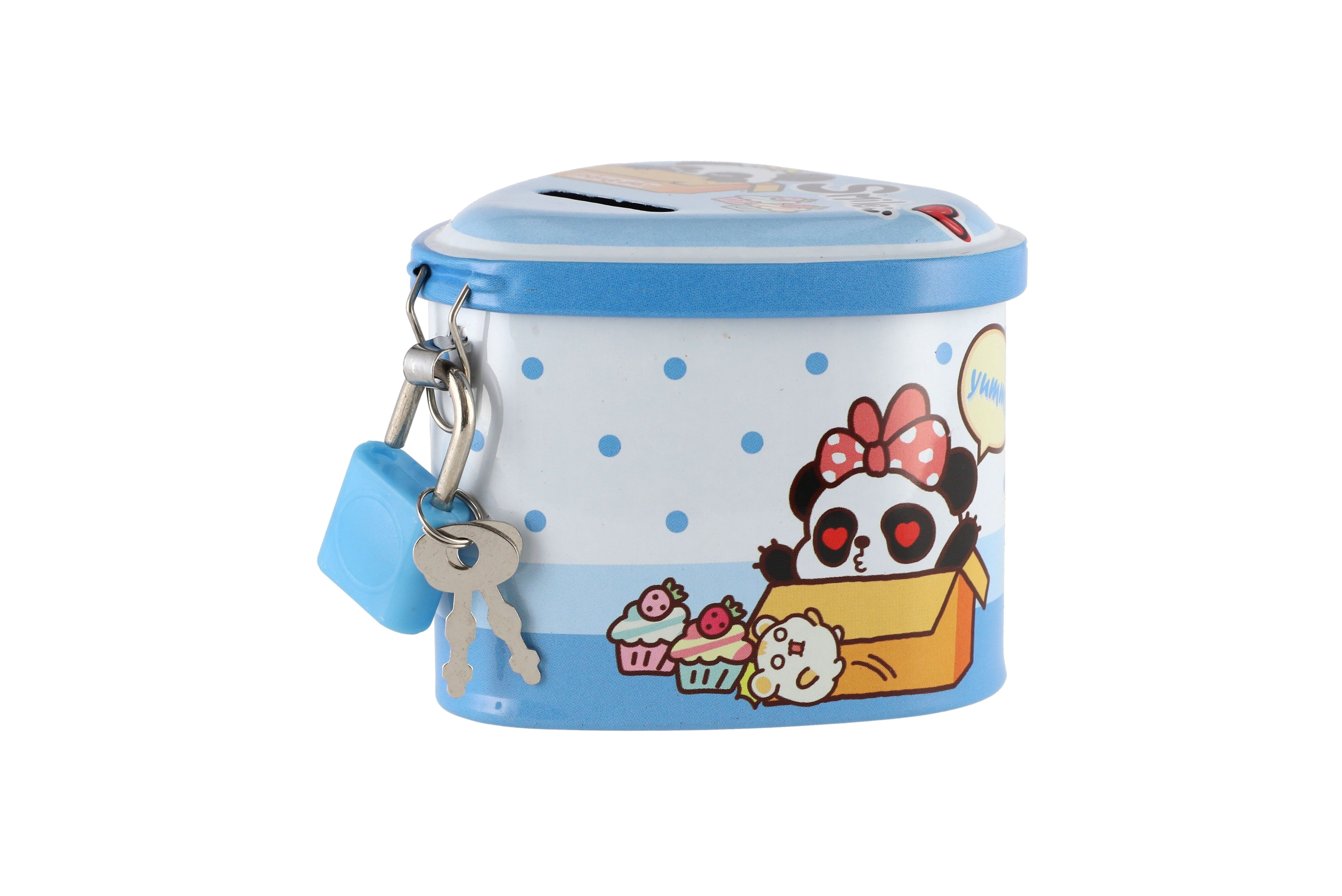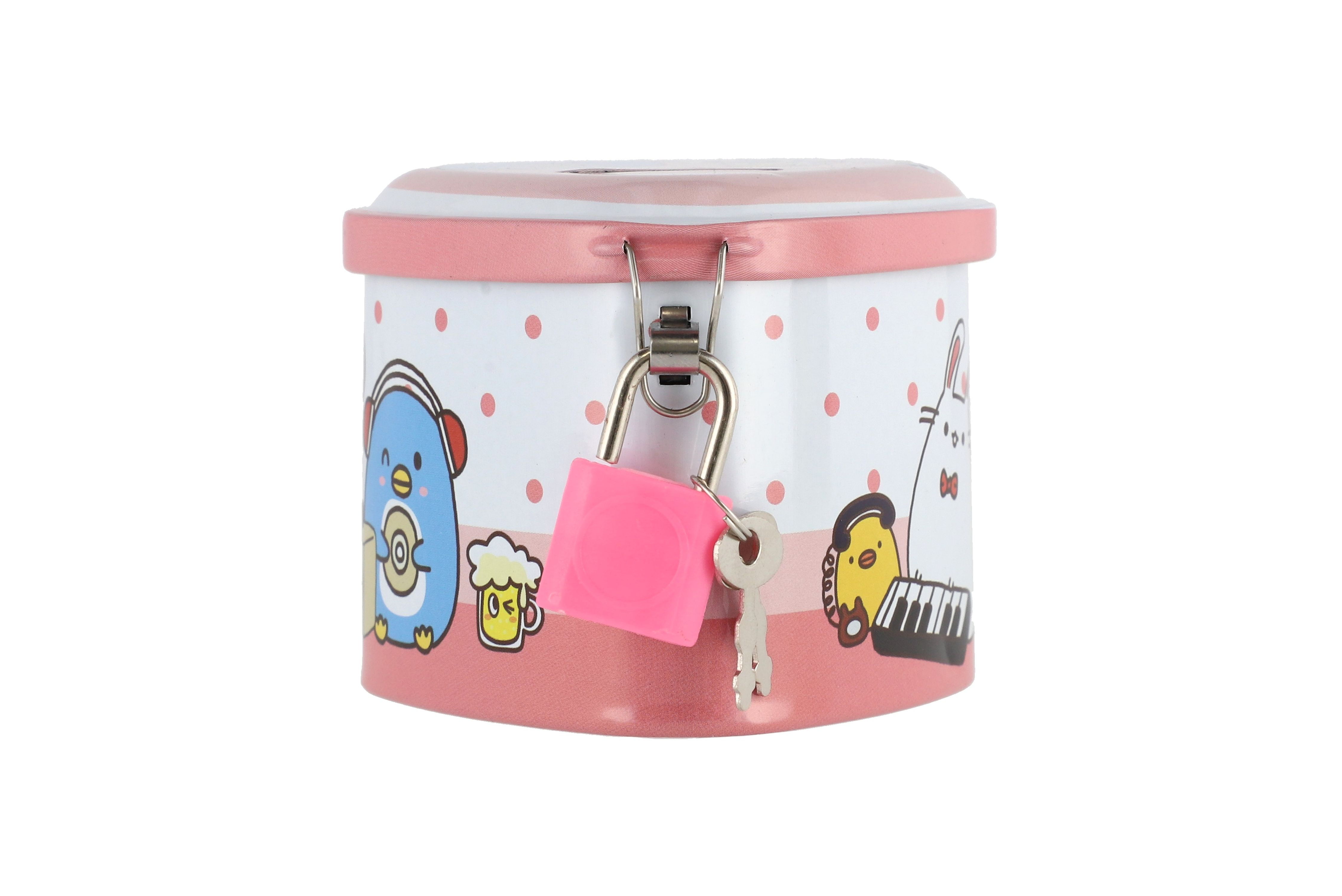 Plechová kasička je skvělou pomůckou, jak děti naučit hospodařit se svými penězi, ale i k procvičení počítání! Na vrchní části pokladničky je otvor pro vložení mincí. Pokladna je na zámek, takže jsou ušetřené penízky v bezpečí. Rozměr pokladničky 8 x 7 cm.