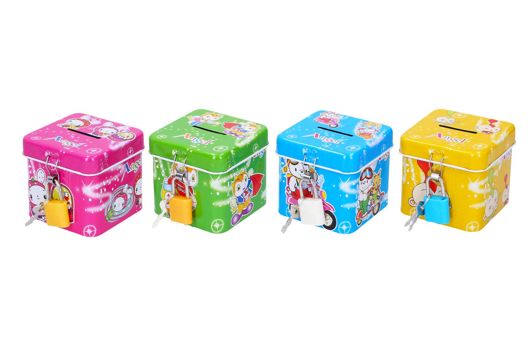 Wiky Pokladnička se zámkem plechová kostka 6,5x6cm 4 barvy