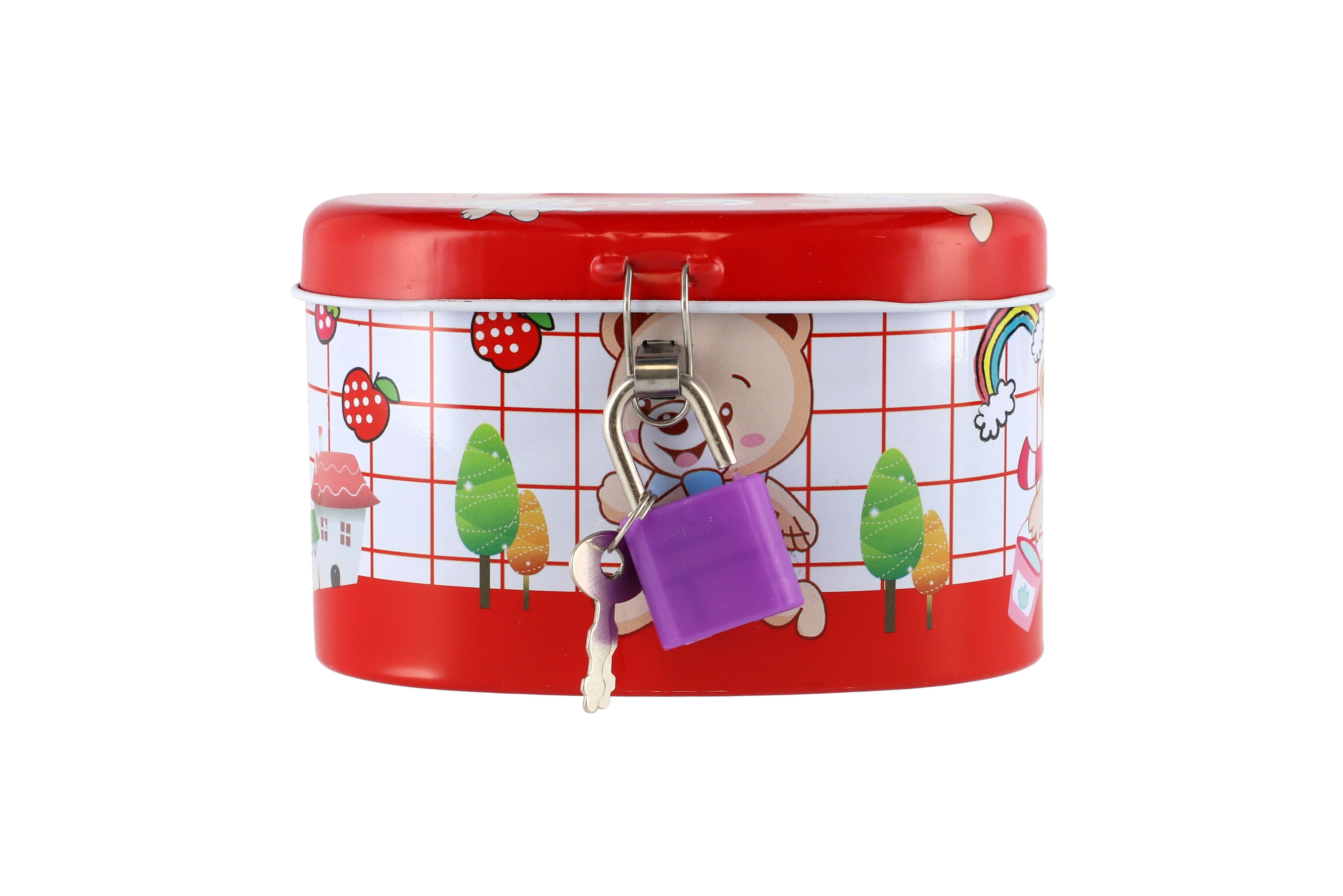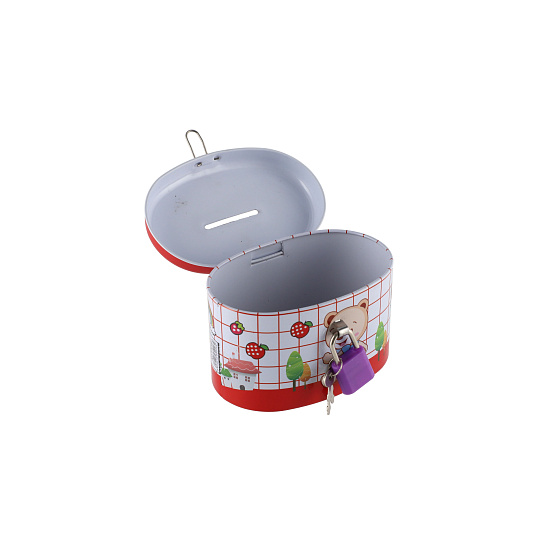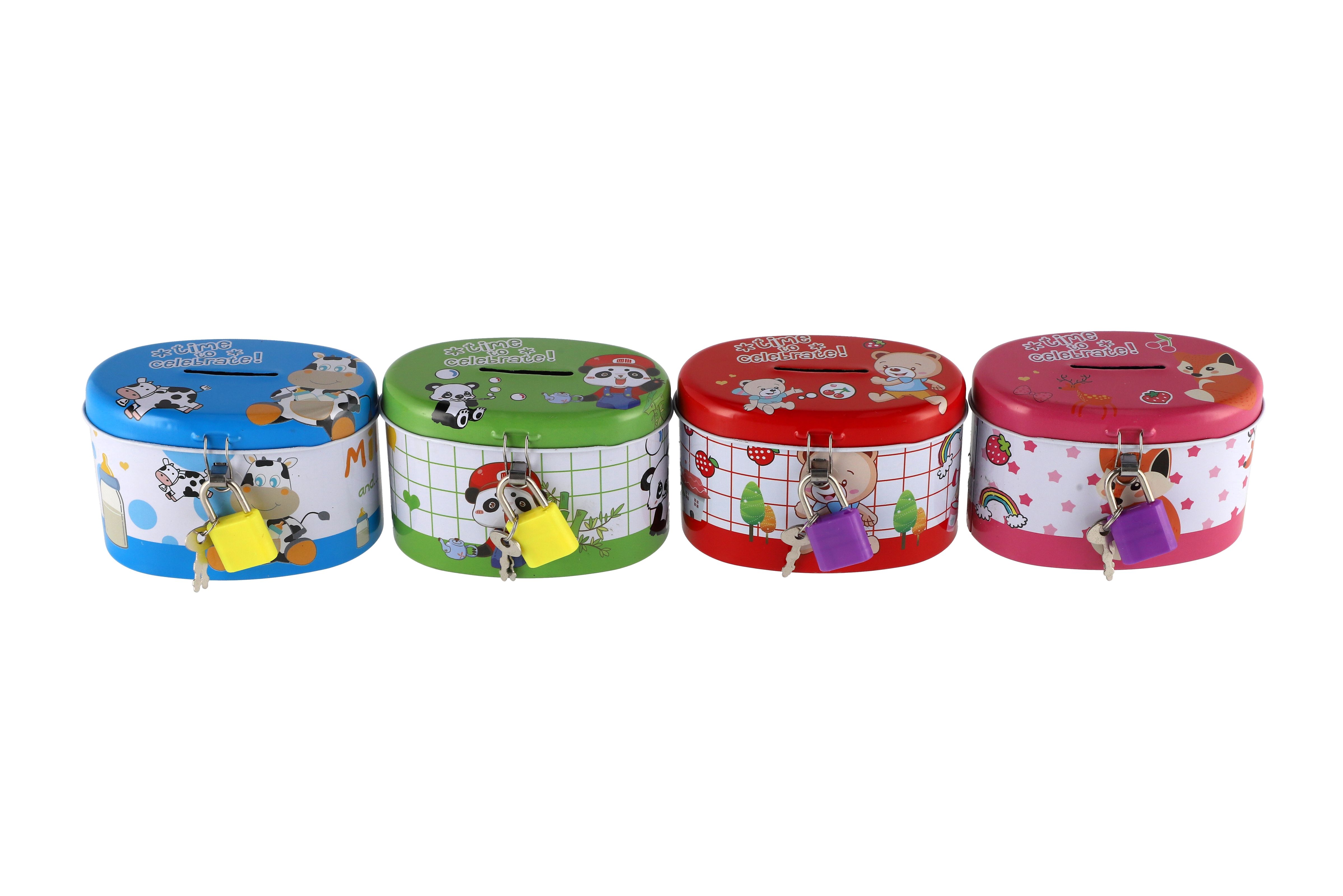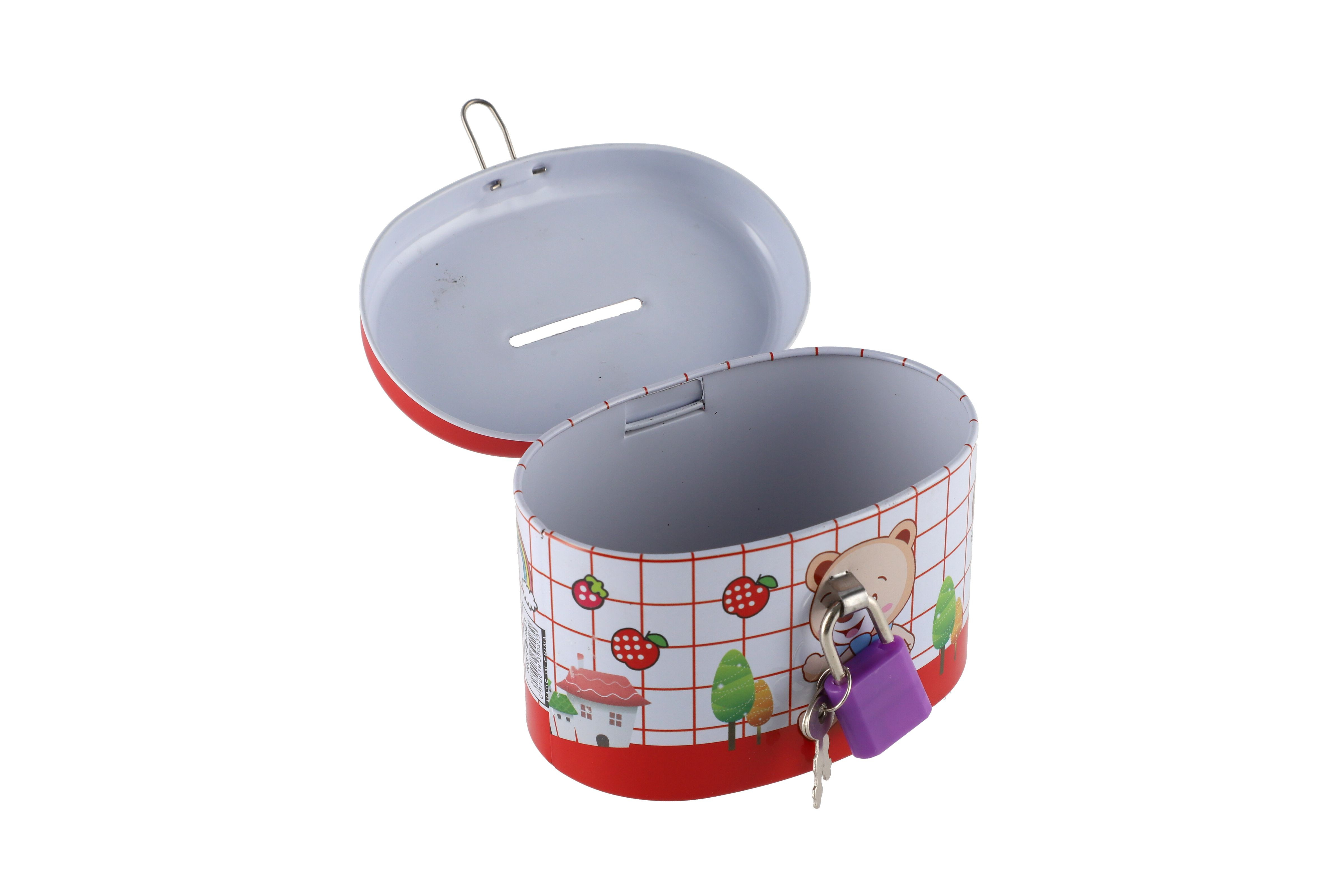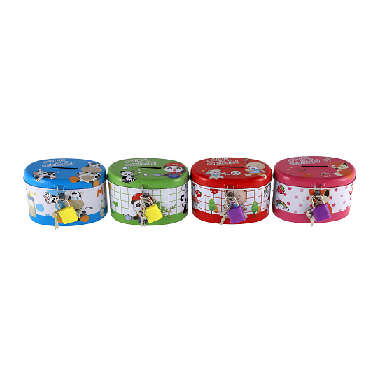 Teddies Pokladnička se zámkem plechová ovál 10x6cm 4 barvy
