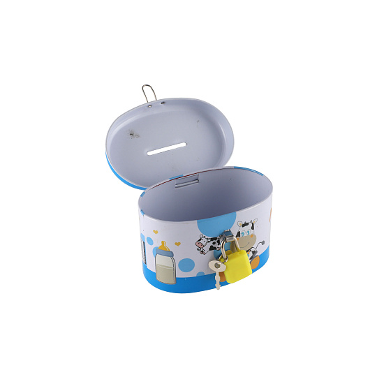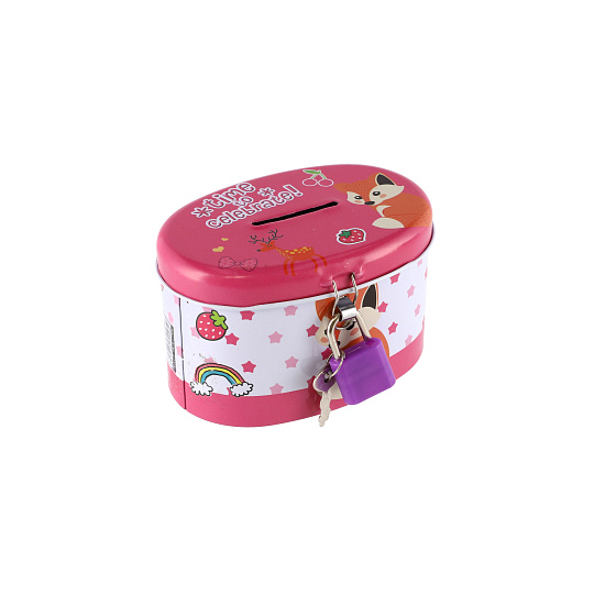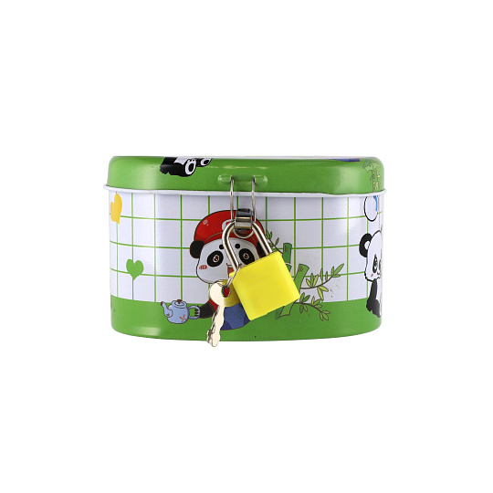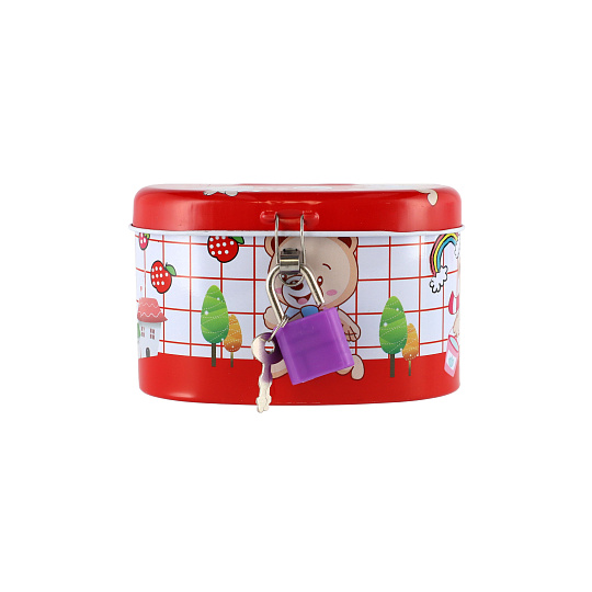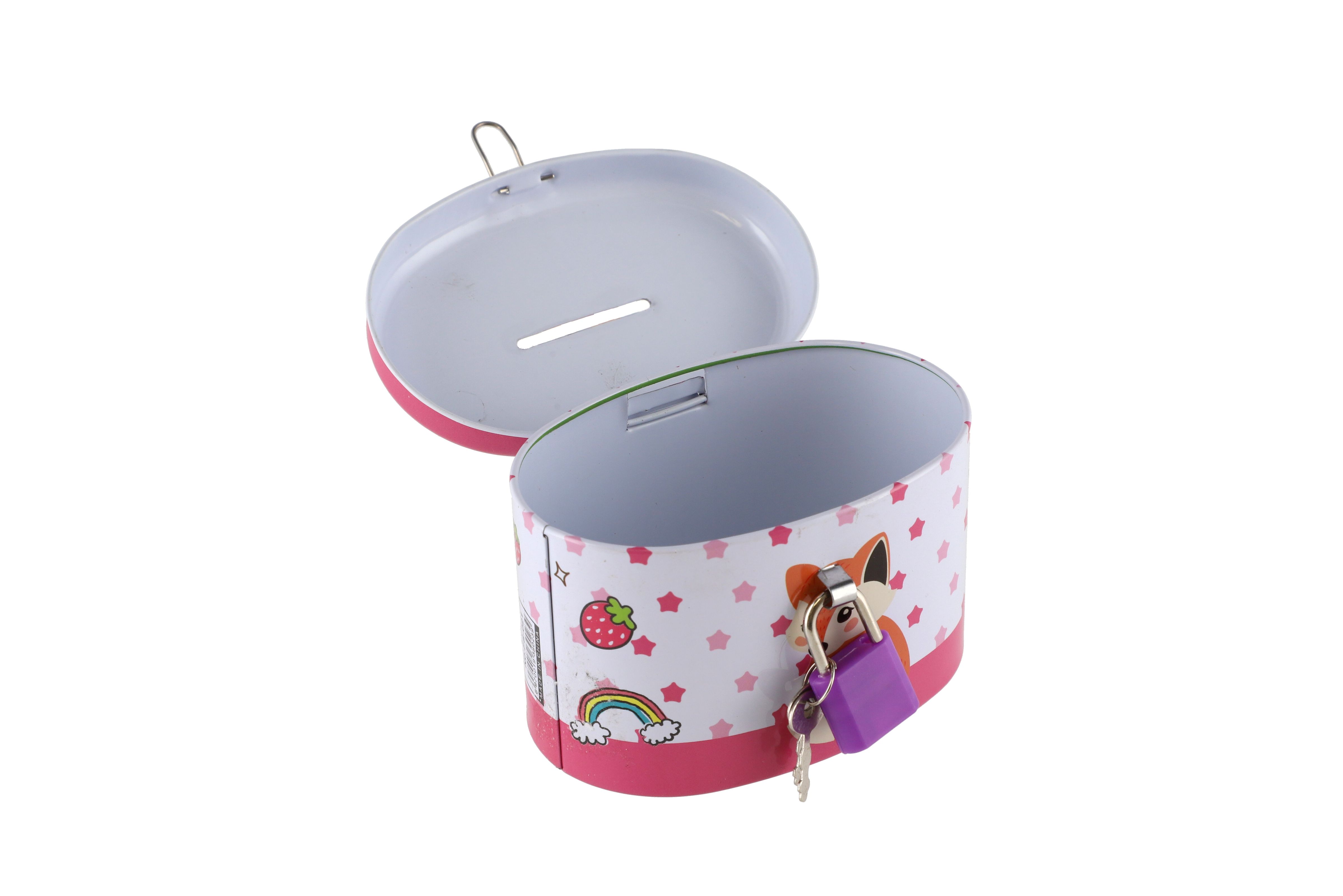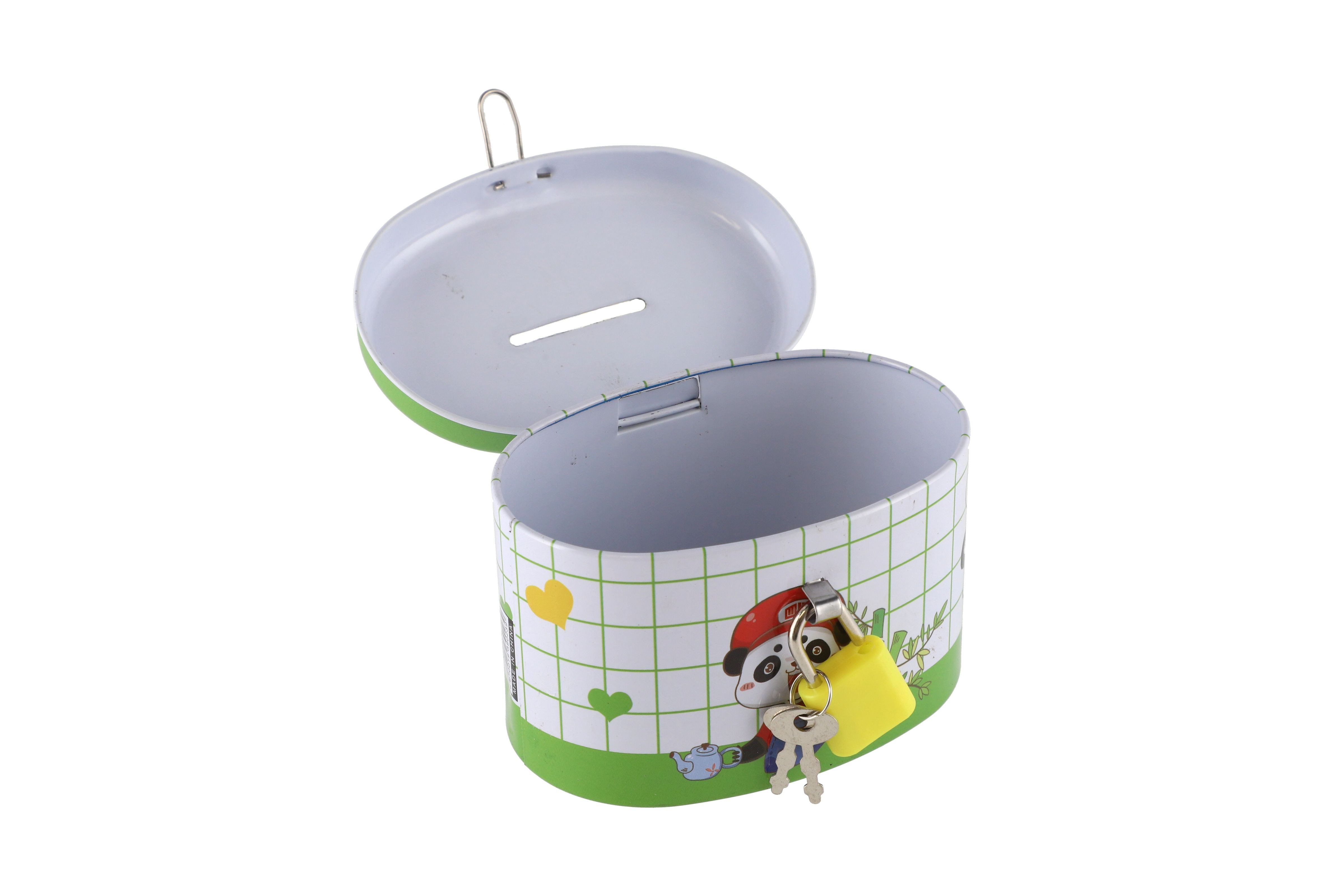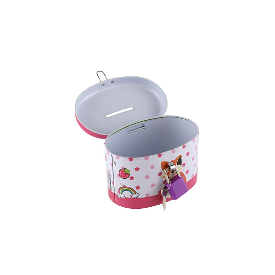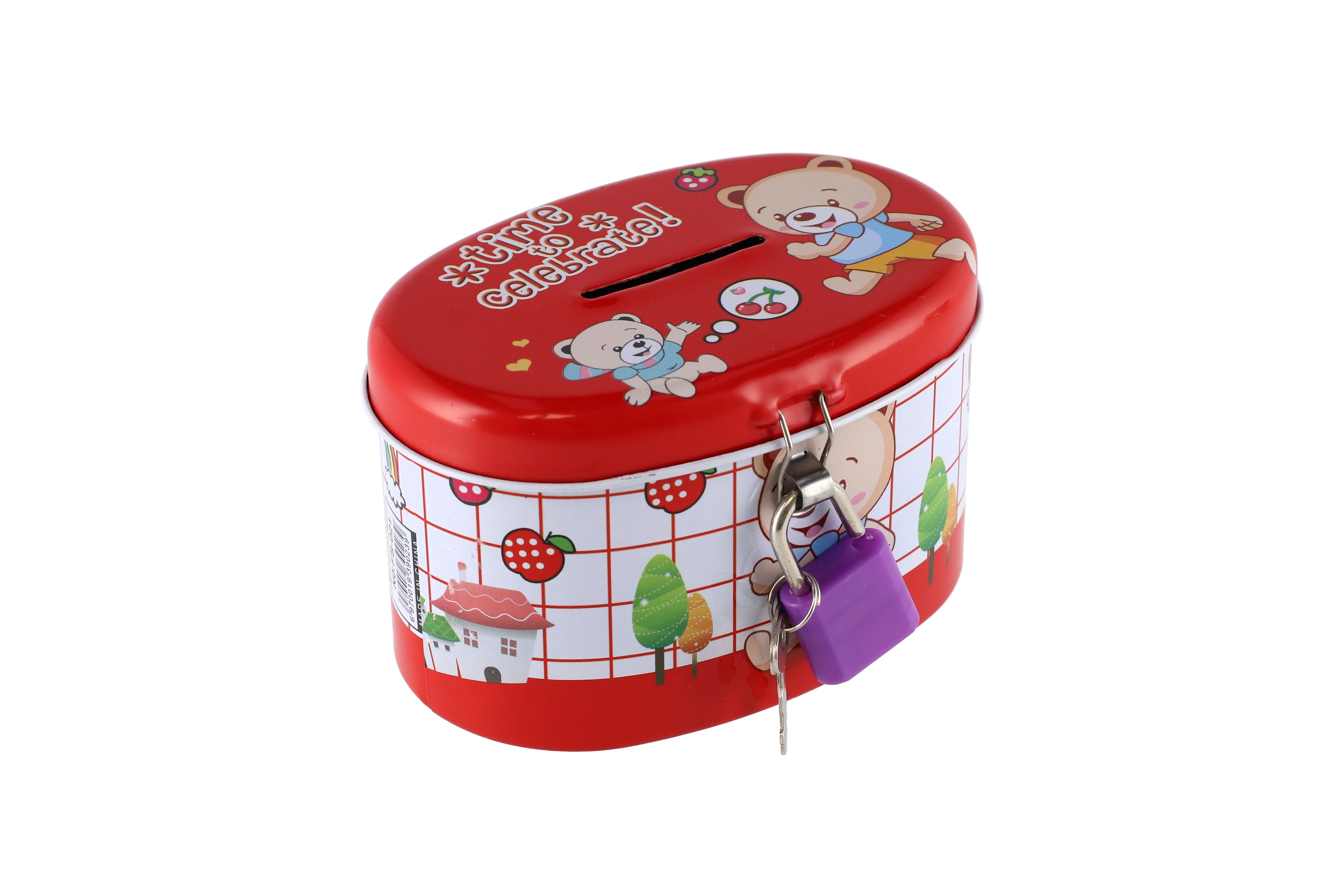 Teddies Pokladnička se zámkem plechová ovál 10x6cm 4 barvy