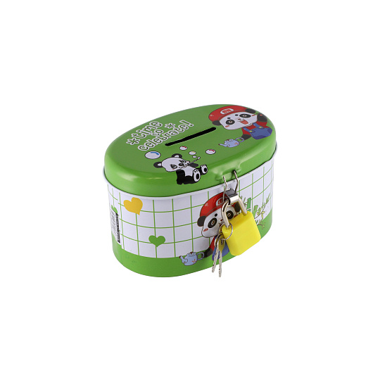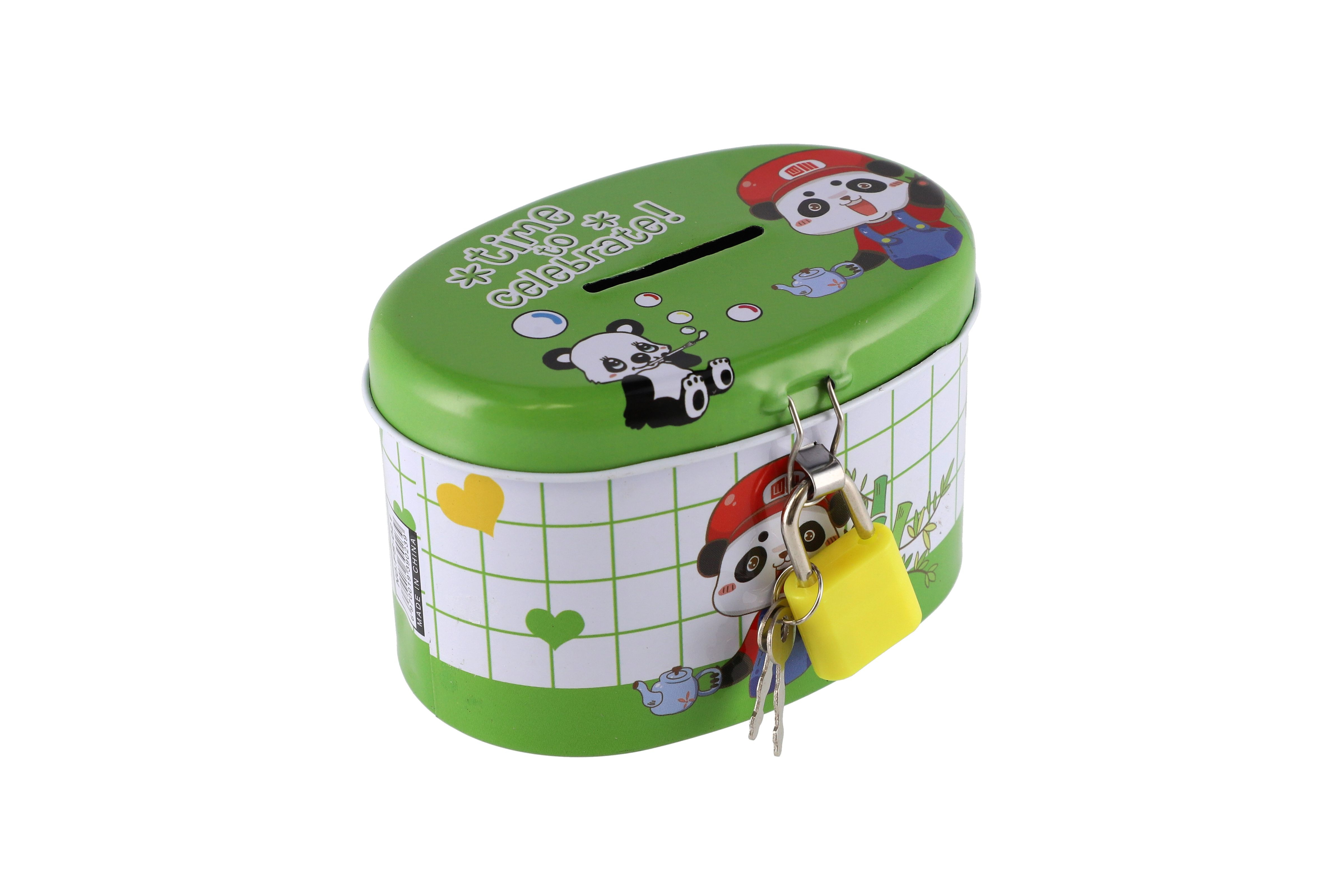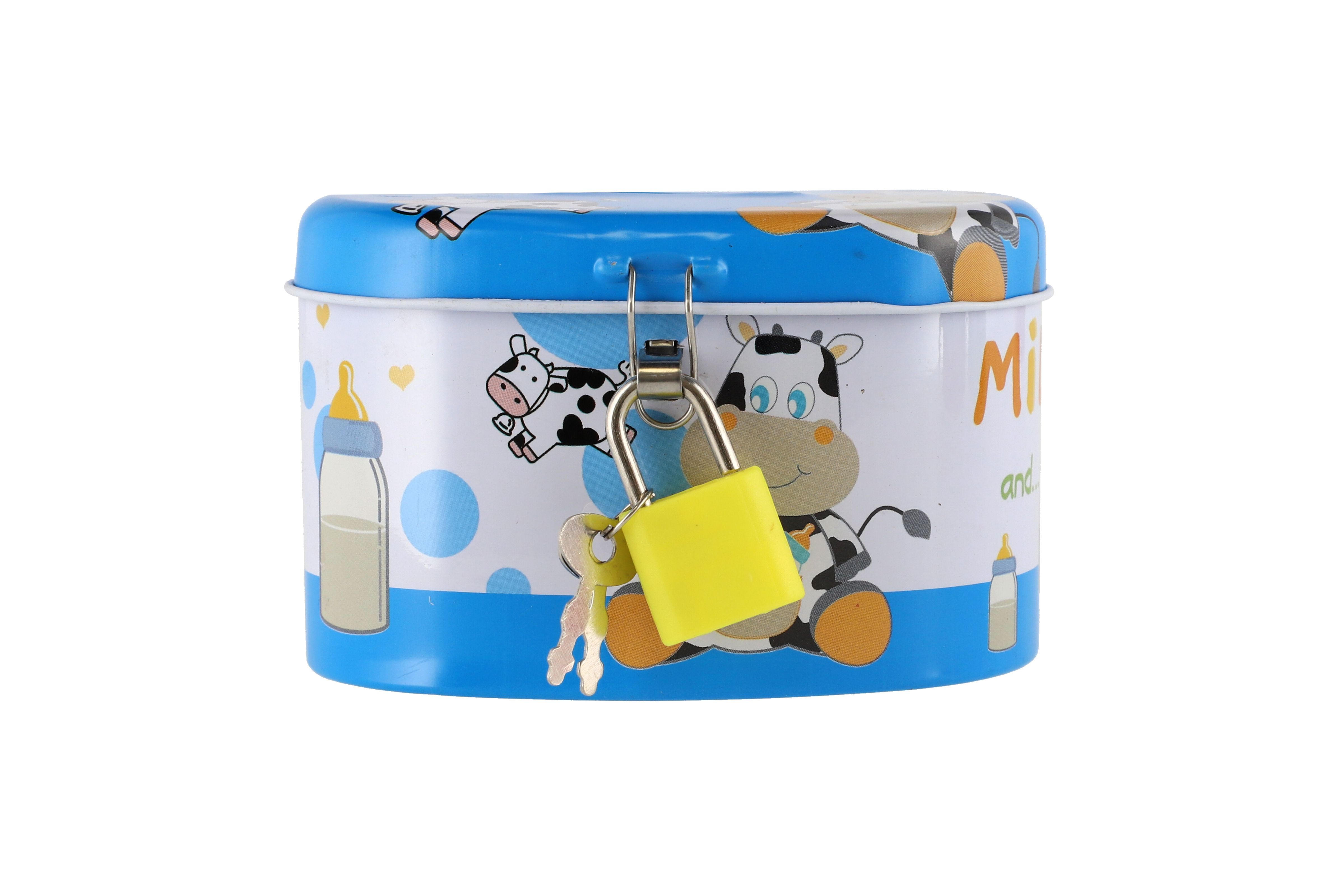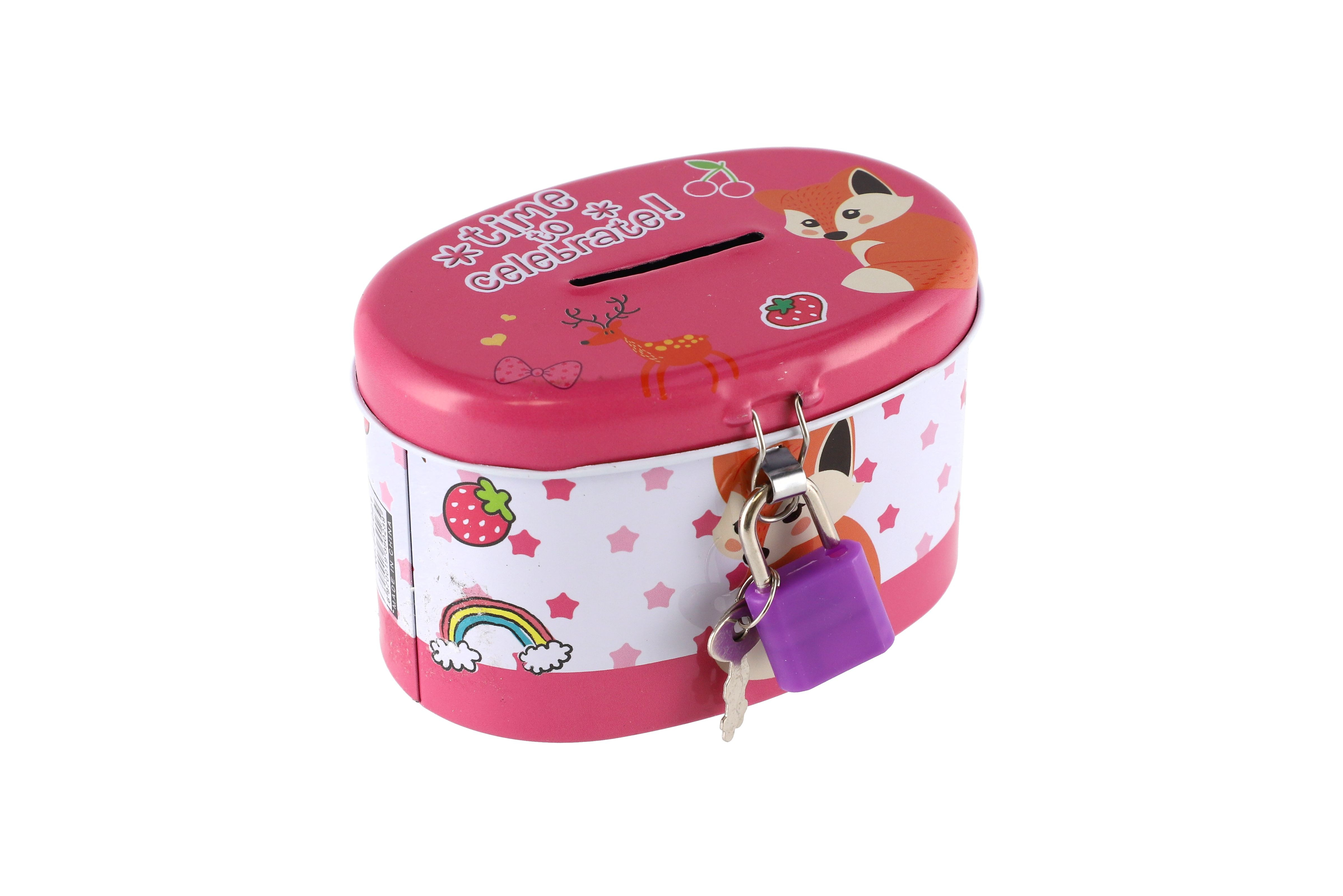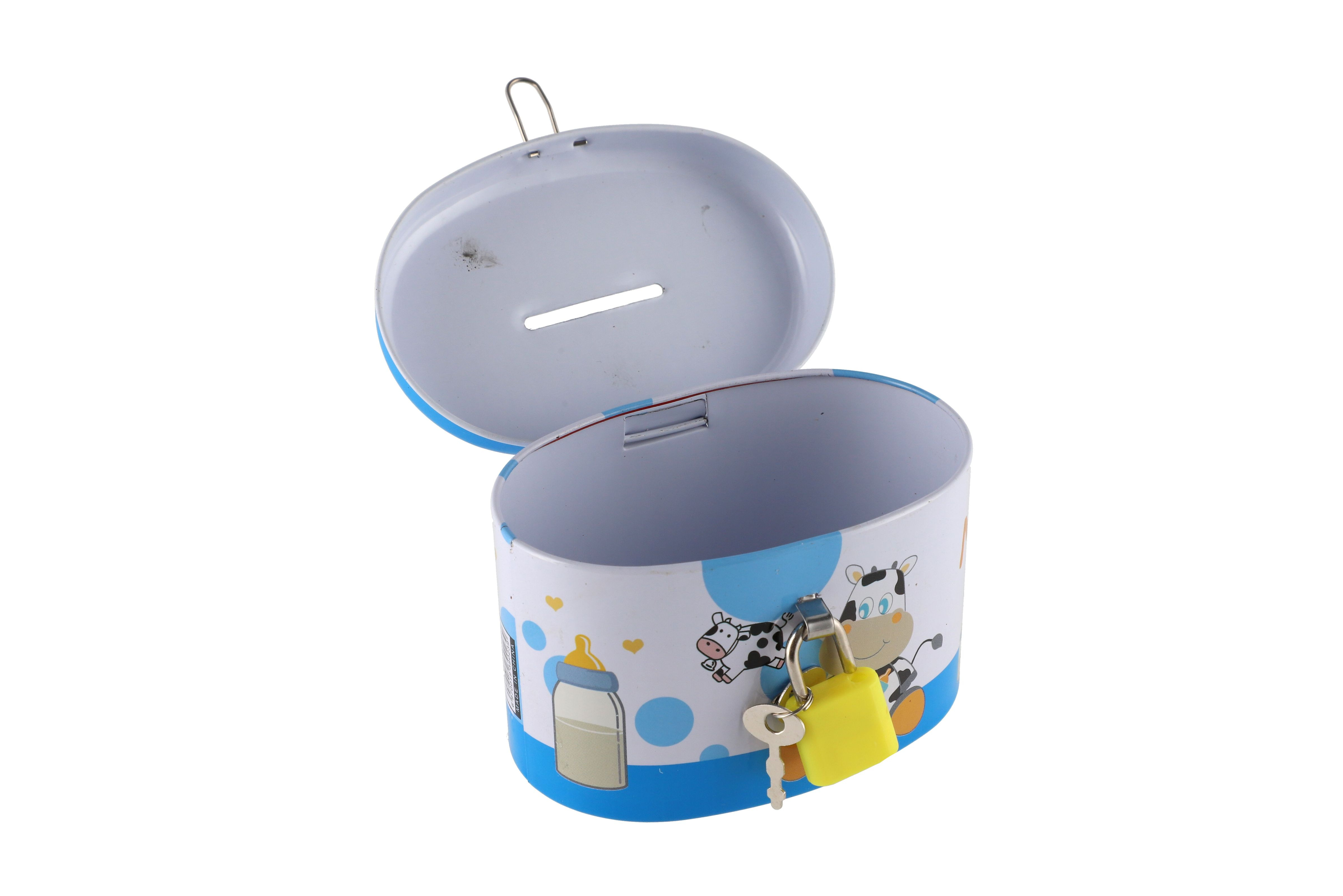 Teddies Pokladnička se zámkem plechová ovál 10x6cm 4 barvy