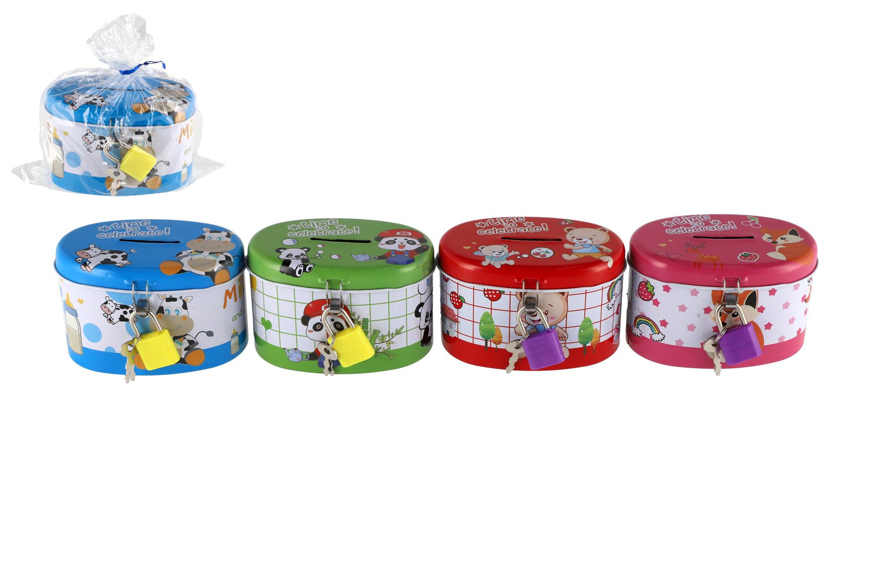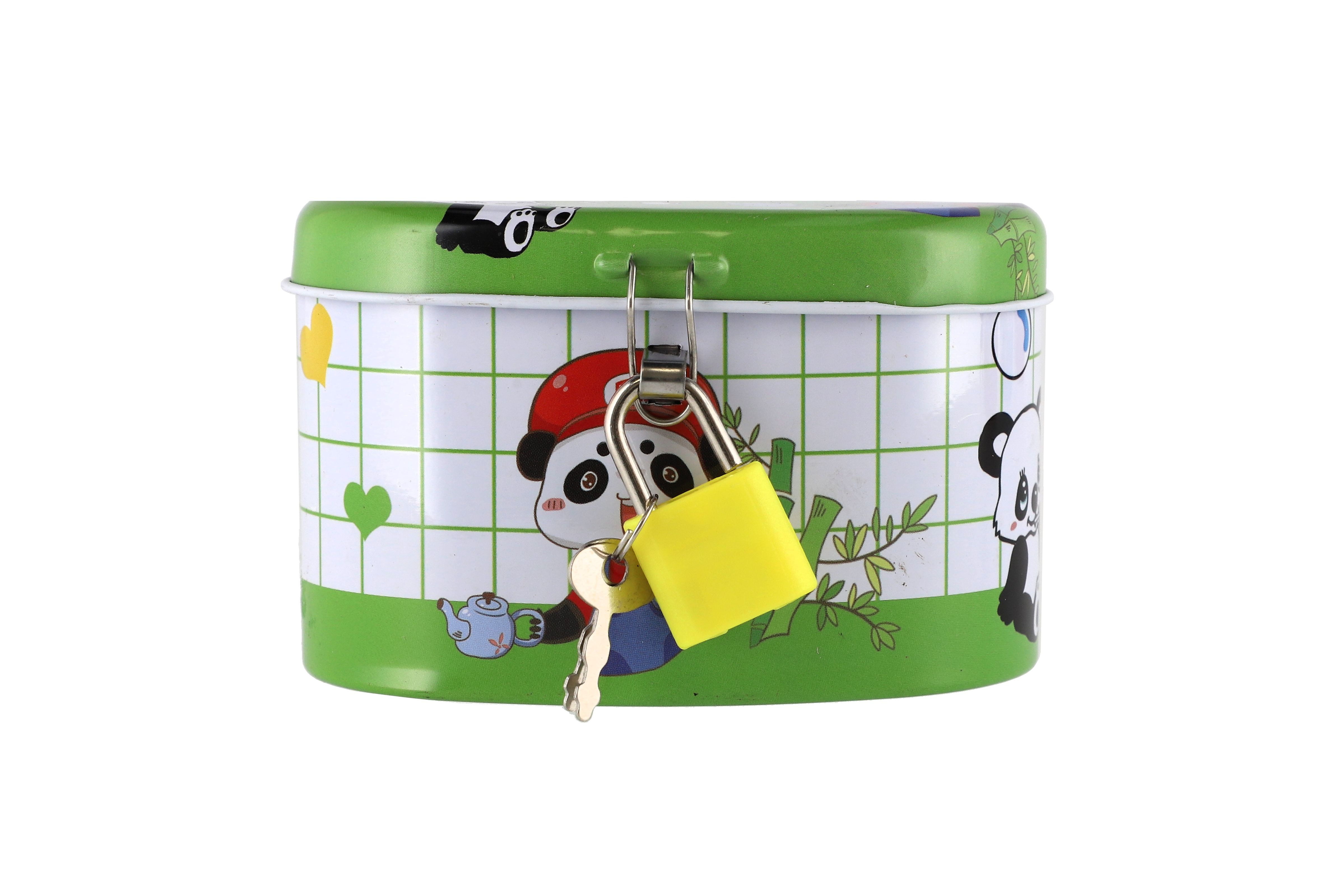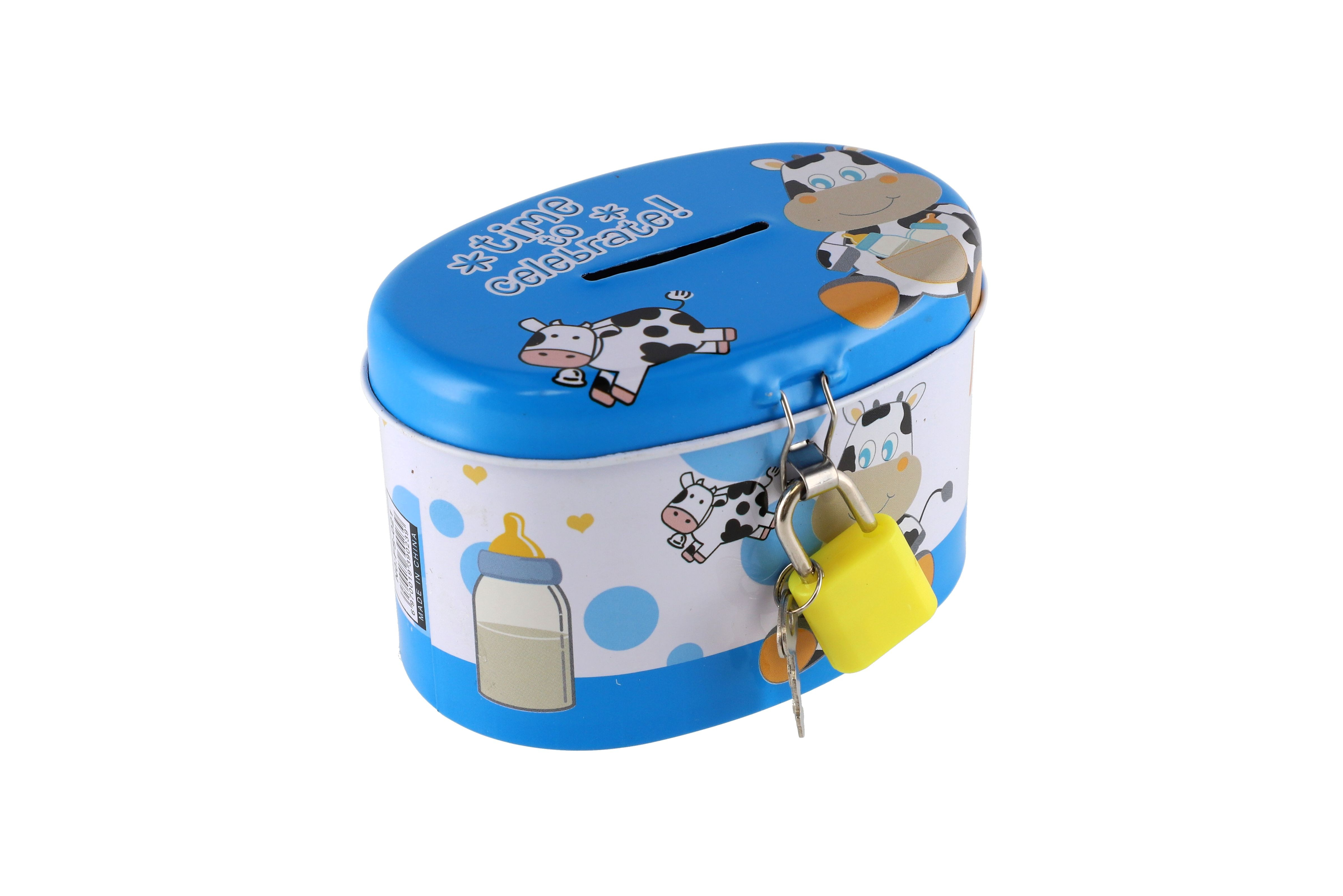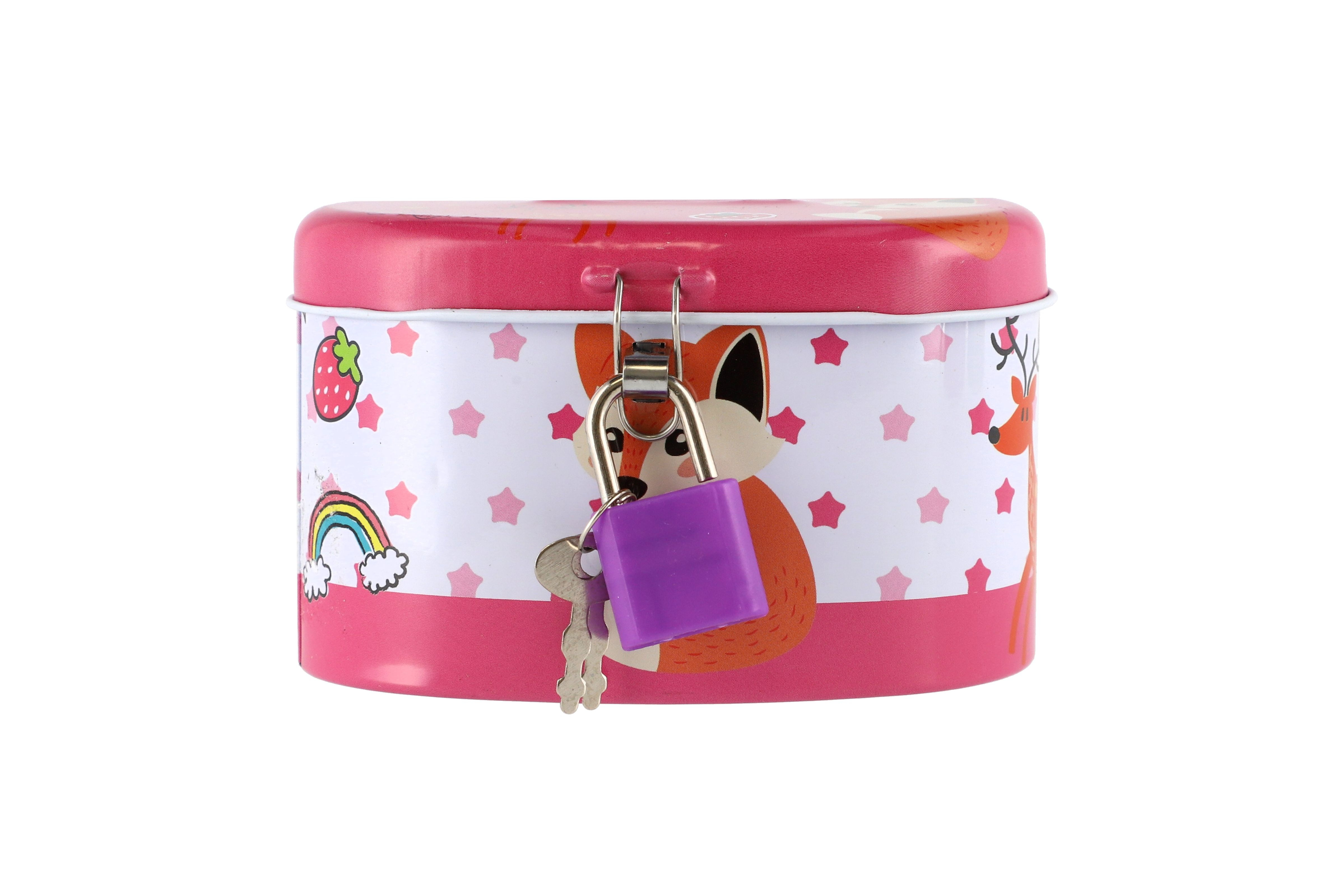 Teddies Pokladnička se zámkem plechová ovál 10x6cm 4 barvy