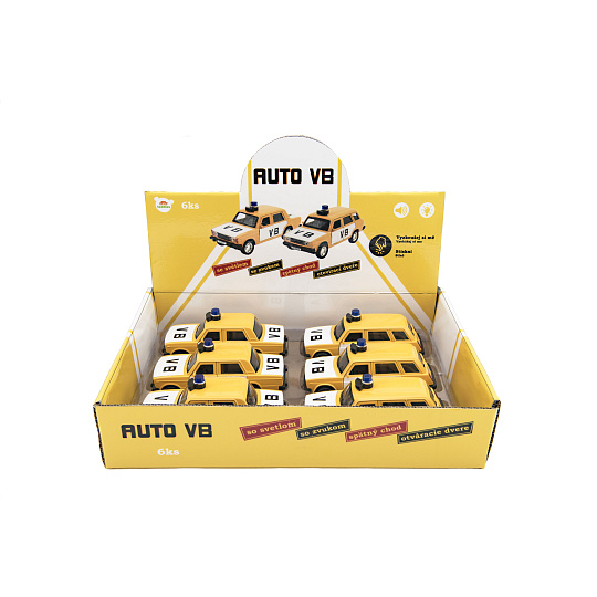 Krásný model policejního auta VB Lada, který nesmí chybět v garáži žádného malého policisty. Model má otevírací přední dveře. Auto velikosti cca 12 cm je se světlem zvukem a na zpětné natažení. Baterie 3x AG3 jsou součástí výrobku. Rozměry výrobku 12 x 5 x 5 cm. Vhodné pro děti od 3 let.