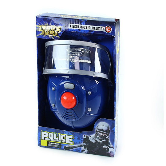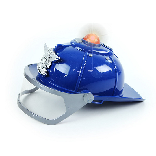 Praktická helma s ochranným krytem pro malé policisty! Tento kvalitní kousek je vyroben z plastu a zdoben odznakem na přední straně. Navíc při stisknutí tlačítka helma bliká a hraje. Velikost helmy si můžeš nastavit podle vlastní hlavy! Tak zažij opravdickou záchrannou akci. Součástí balení jsou 3 ks baterií typu AG13. UPOZORNĚNÍ: Tato hračka nezajišťuje ochranu.