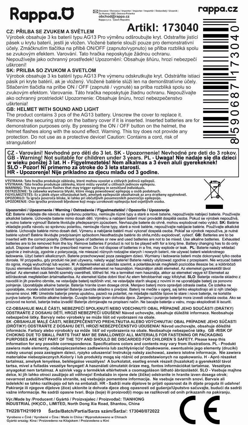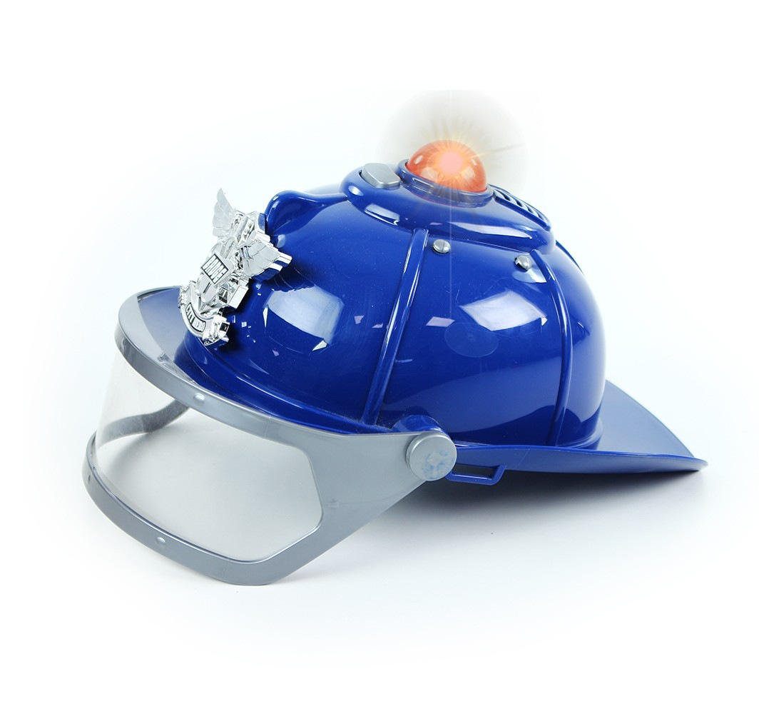 Praktická helma s ochranným krytem pro malé policisty! Tento kvalitní kousek je vyroben z plastu a zdoben odznakem na přední straně. Navíc při stisknutí tlačítka helma bliká a hraje. Velikost helmy si můžeš nastavit podle vlastní hlavy! Tak zažij opravdickou záchrannou akci. Součástí balení jsou 3 ks baterií typu AG13. UPOZORNĚNÍ: Tato hračka nezajišťuje ochranu.