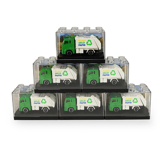 Kovové popelářské auto s plastovou korbou má v zadní části odklápěcí dveře. Autíčko jezdí na volný chod a jeho délka je cca 7 cm a určitě potěší malé i velké sběratele.
