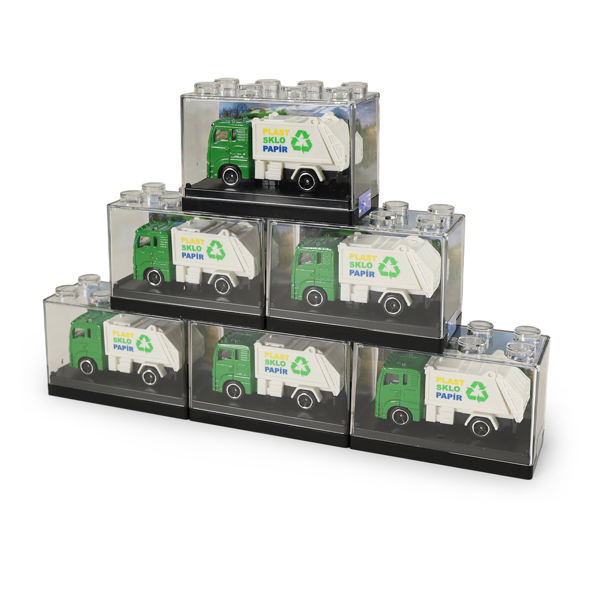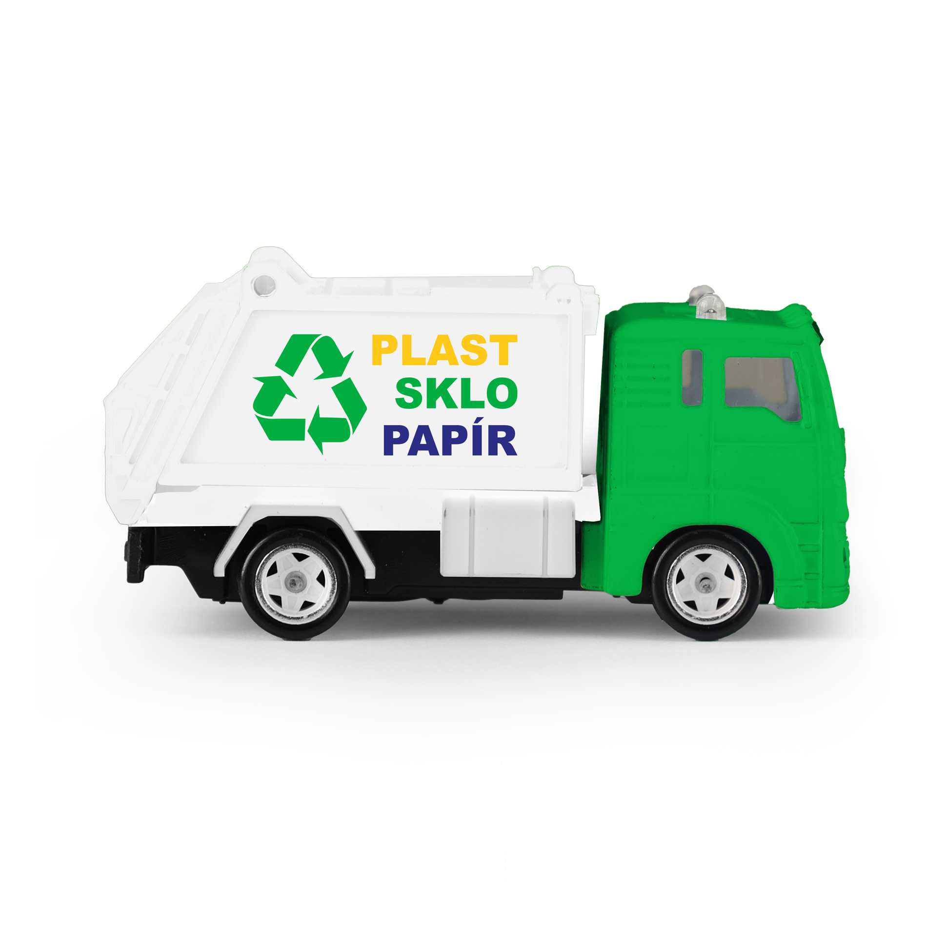 Kovové popelářské auto s plastovou korbou má v zadní části odklápěcí dveře. Autíčko jezdí na volný chod a jeho délka je cca 7 cm a určitě potěší malé i velké sběratele.