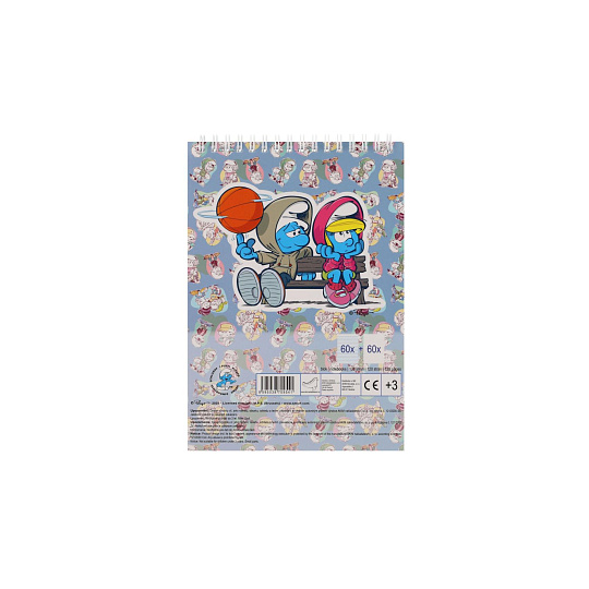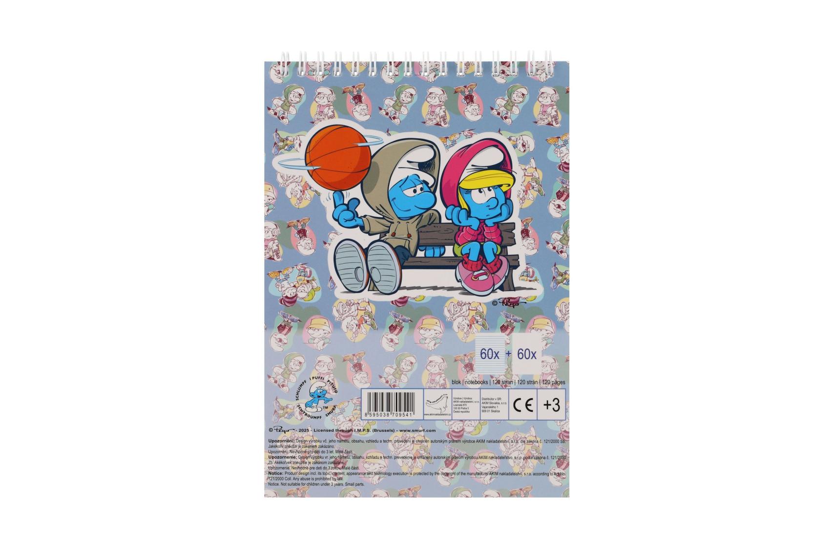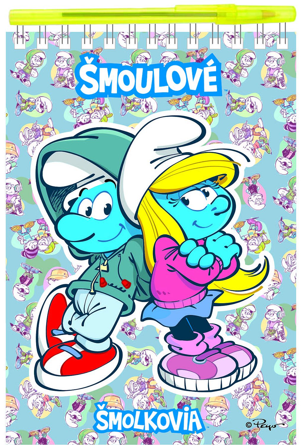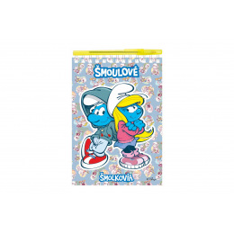 Poznámkový blok/notes Šmoulové s perem kroužkový linkovaný/prázdný 60 stran 15x22cm v sáčku