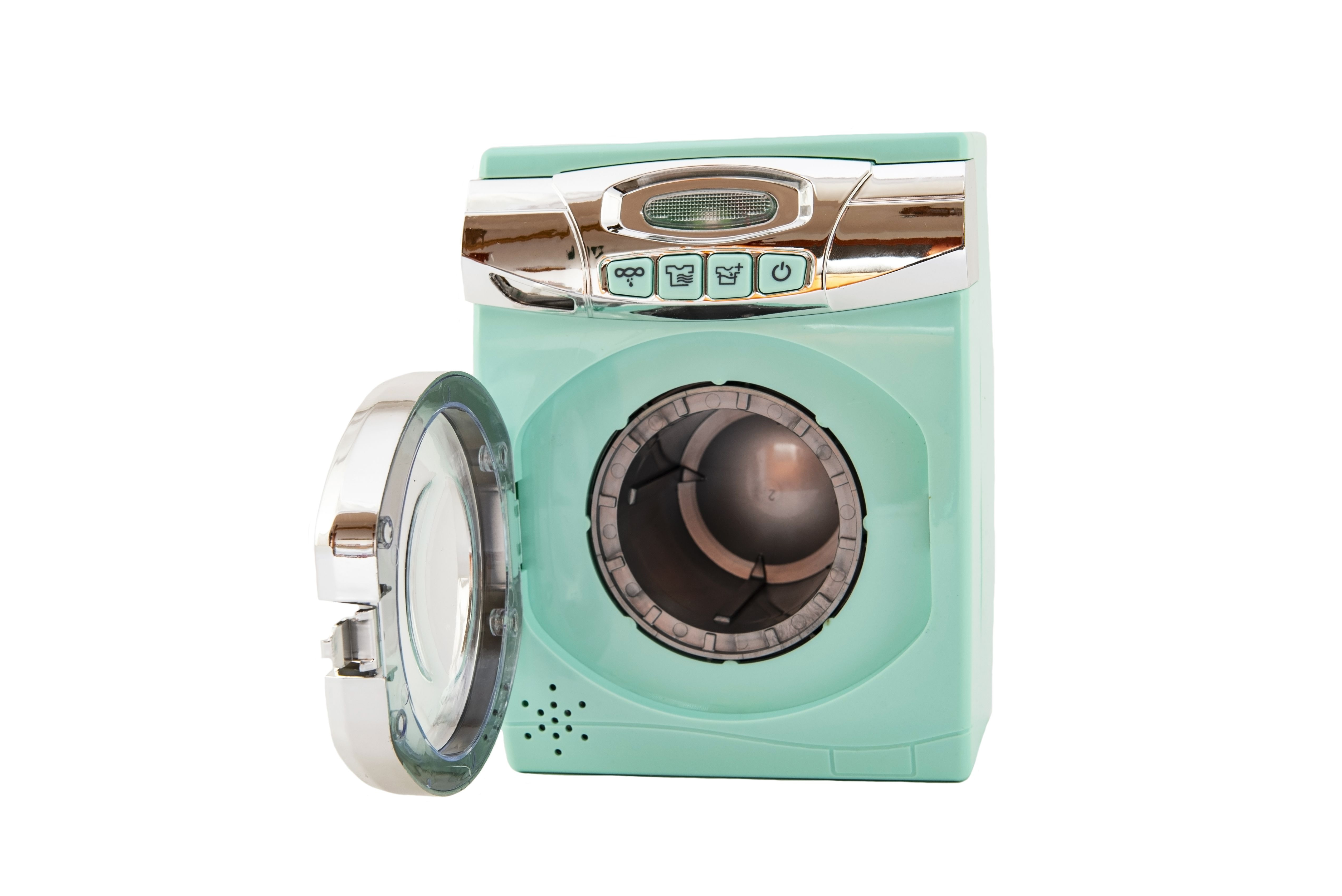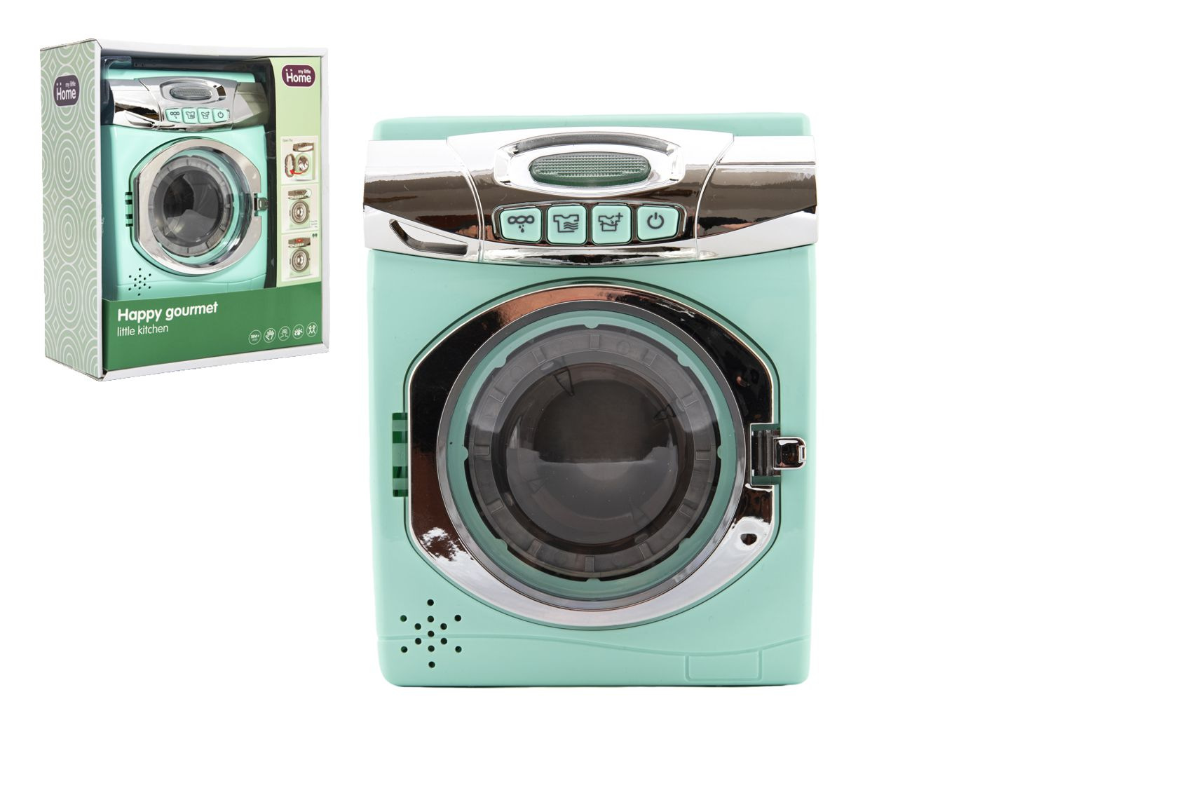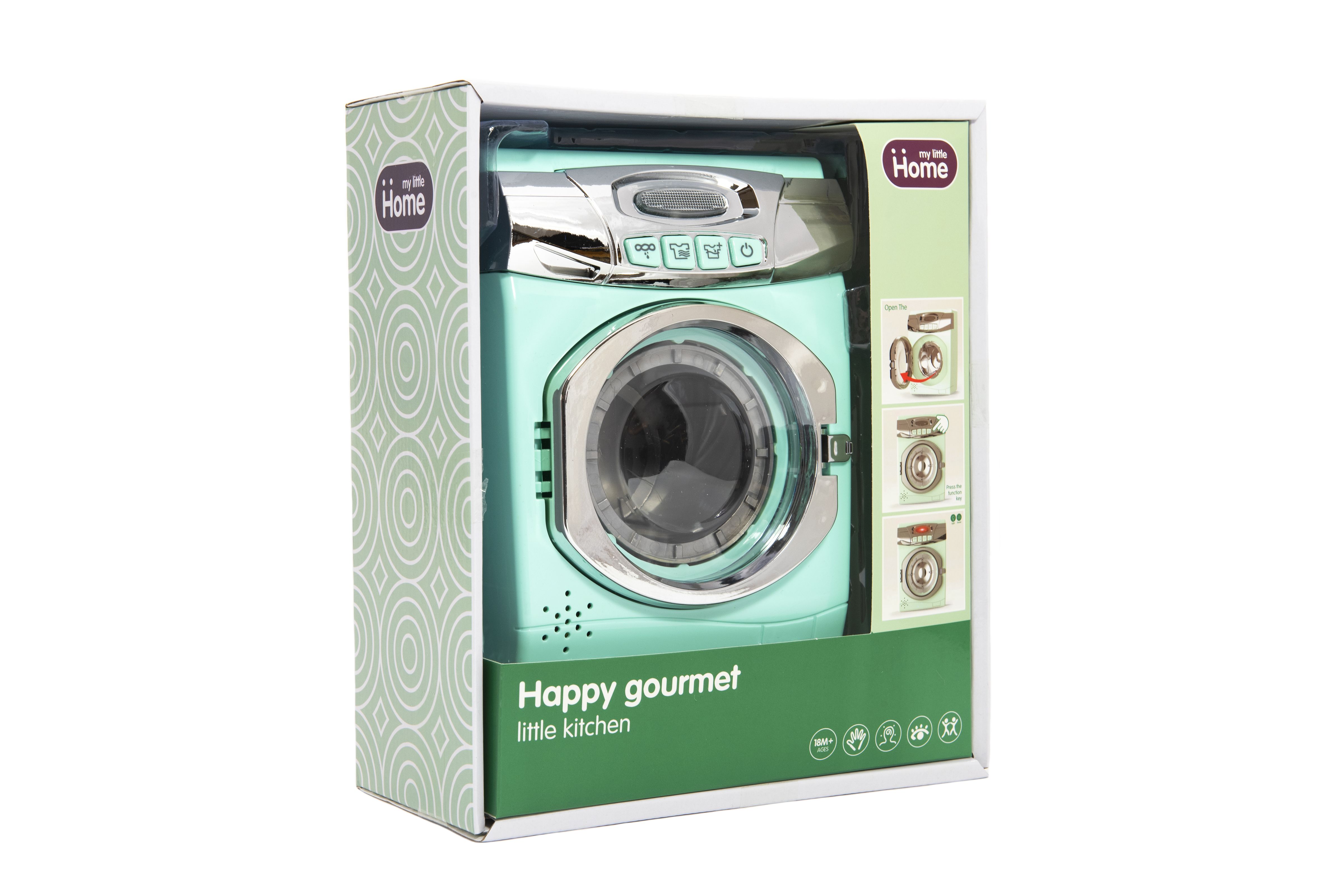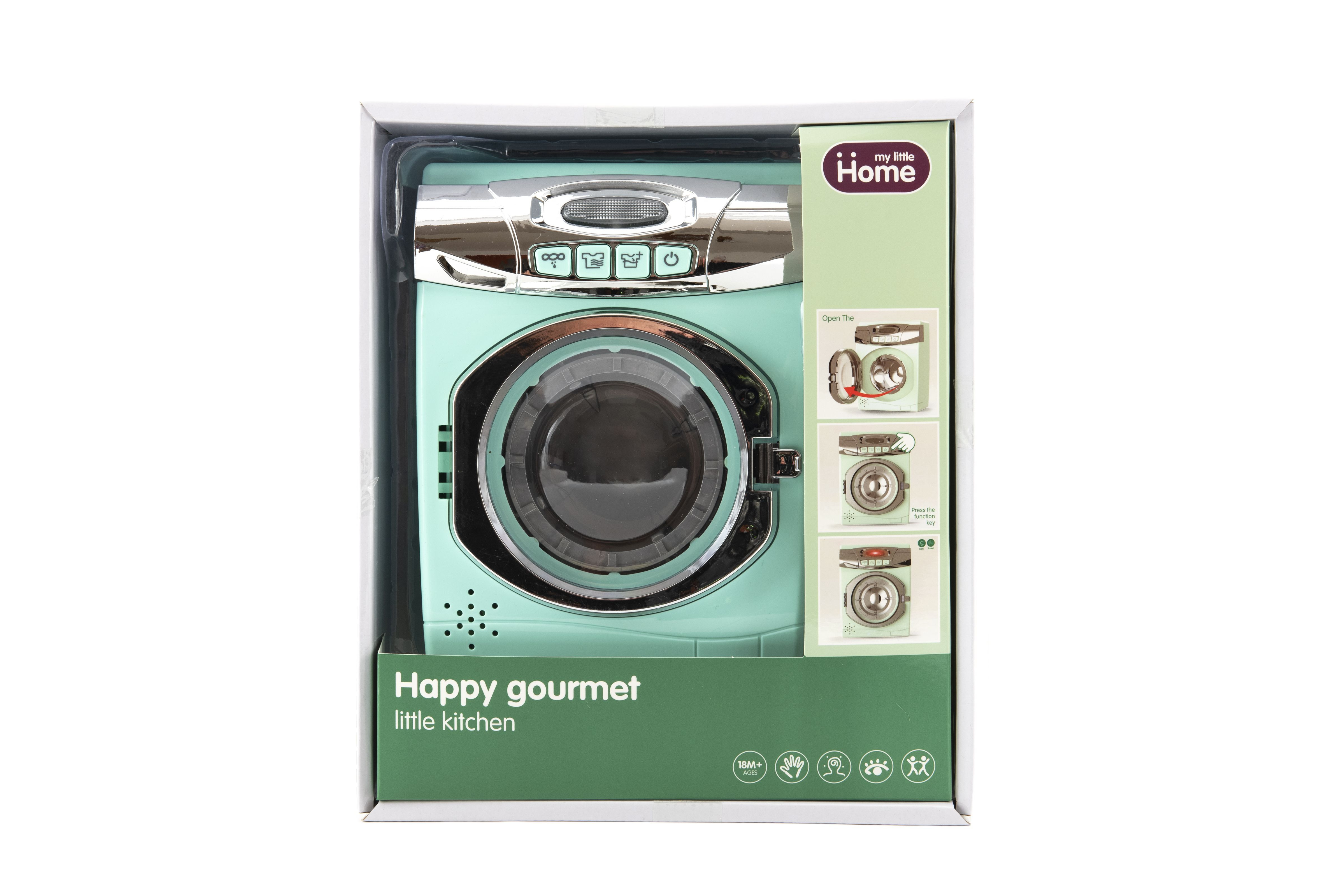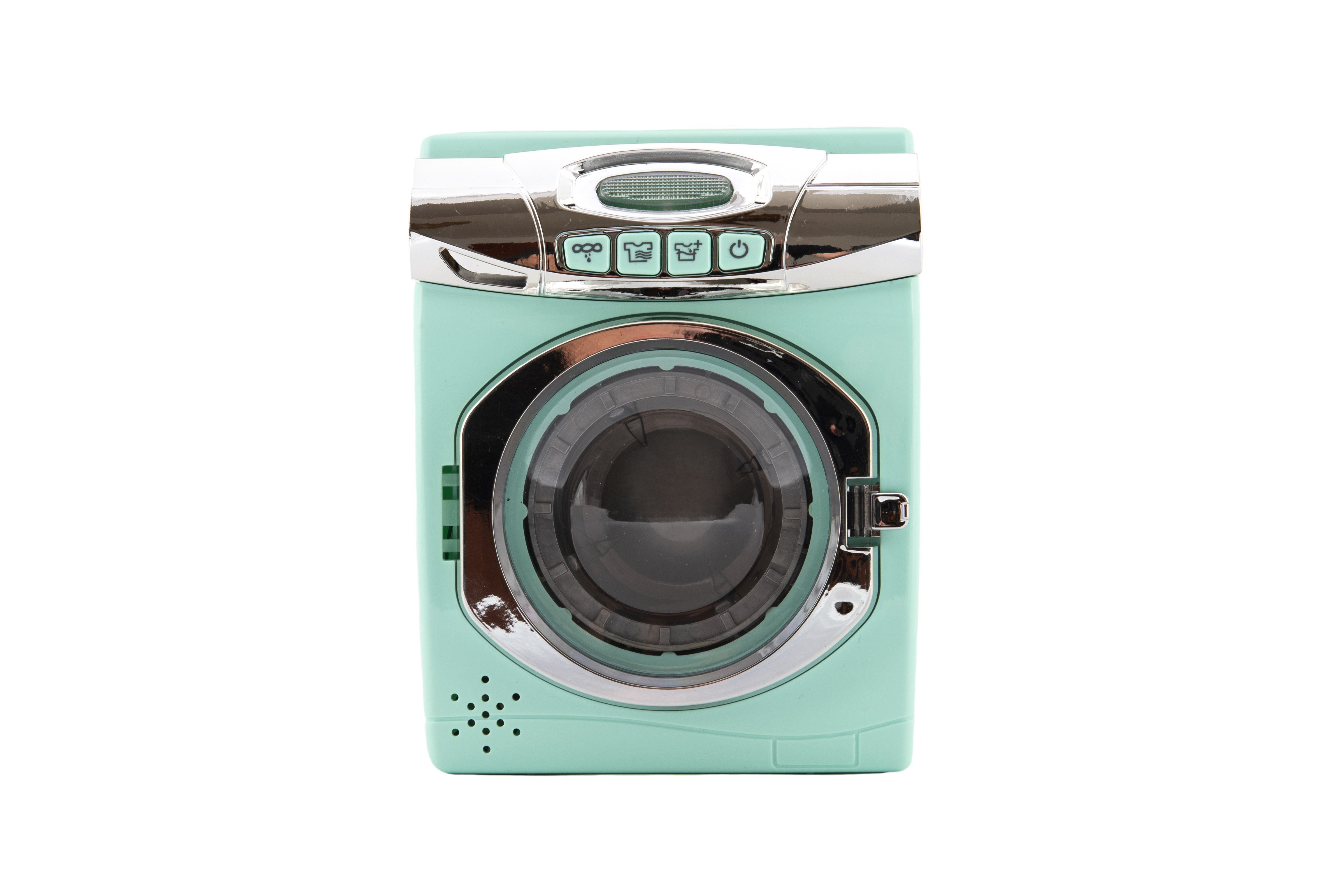 Díky této pračce se děti budou cítit jako dospělí, když budou napodobovat jejich činnosti. Pračka je senzačním doplňkem do každého dětského pokojíčku. Pračka je na baterie se světelnými efekty. Má otevíratelné dvířka a nádobku na prášek. Baterie 3x AA nejsou součástí balení. Rozměr pračky: 13 x 17 cm Vhodné pro děti od 18 měsíců