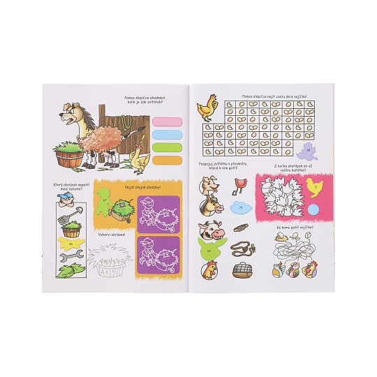 Zábavný pracovní sešit pro každou dlouhou chvíli se zvířátky na farmě! V sešitě najdeš 4 stránky nálepek a 16 stránek plných zábavných úkolů, rébusů, bludiští a spoustu dalšího. Dle čísel nalepte samolepky na správné místa a dotvořte si tak stránky k dokonalosti. S tímto pracovním sešitem si děti užijí zábavu a také podpoříte jejich logické myšlení. Rozměr: 21 x 30 cm Vhodné pro děti od 3 let