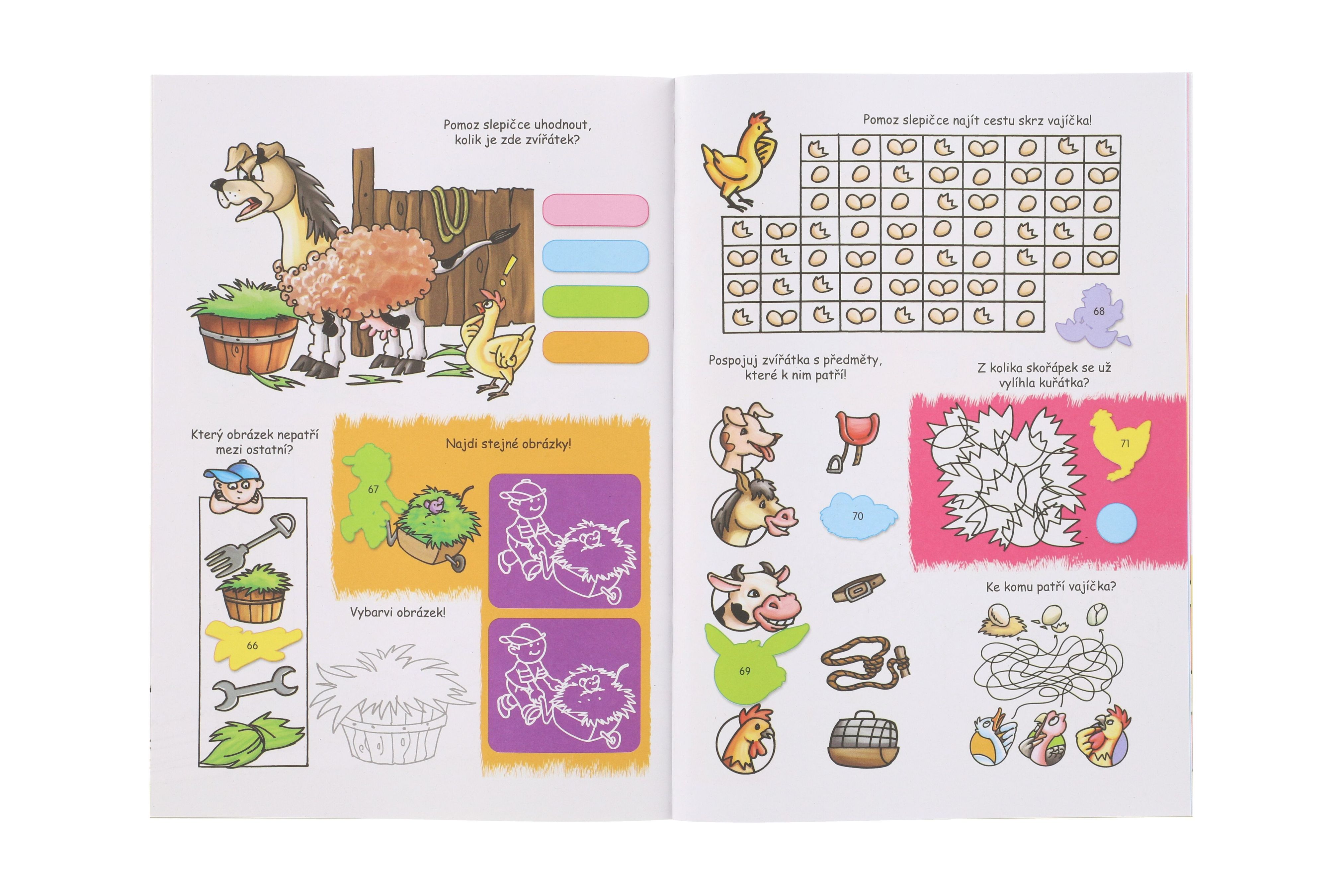 Zábavný pracovní sešit pro každou dlouhou chvíli se zvířátky na farmě! V sešitě najdeš 4 stránky nálepek a 16 stránek plných zábavných úkolů, rébusů, bludiští a spoustu dalšího. Dle čísel nalepte samolepky na správné místa a dotvořte si tak stránky k dokonalosti. S tímto pracovním sešitem si děti užijí zábavu a také podpoříte jejich logické myšlení. Rozměr: 21 x 30 cm Vhodné pro děti od 3 let