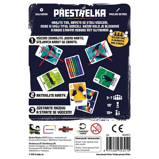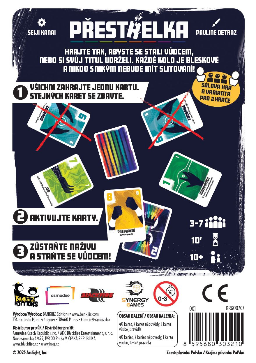 Přestřelka je hra, která hráče staví do velmi zranitelné pozice! V jediném kole může být vyloučeno více hráčů a hra může skončit během okamžiku. Rozhodněte se co nejlépe a užijte si tuto nevídanou vysokooktanovou akci!
