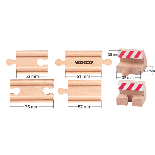 Woody Příslušenství k dráze - Propojovací koleje a zarážky, 6ks