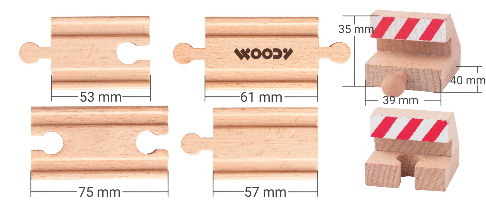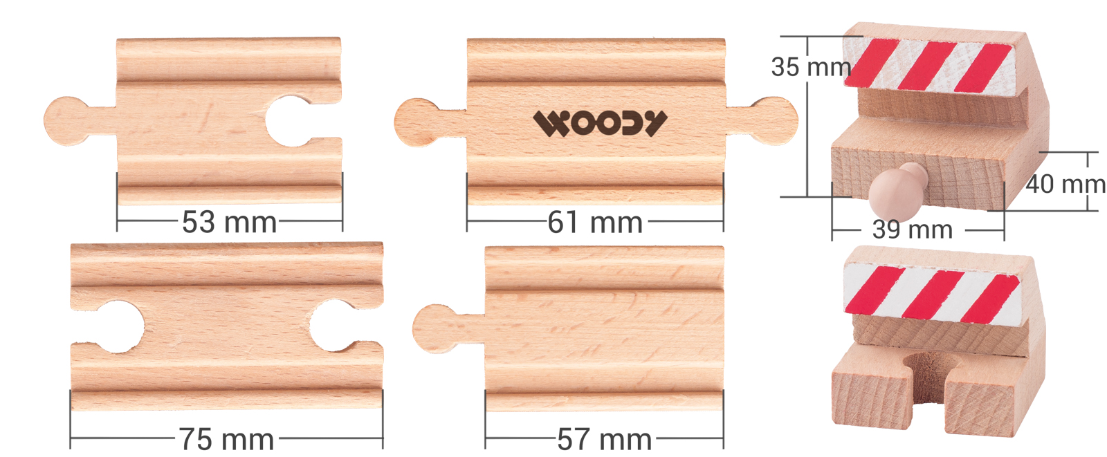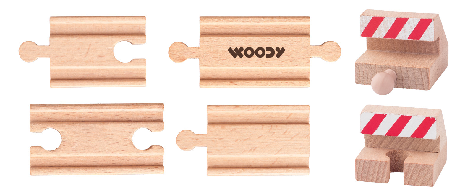 Woody Příslušenství k dráze - Propojovací koleje a zarážky, 6ks