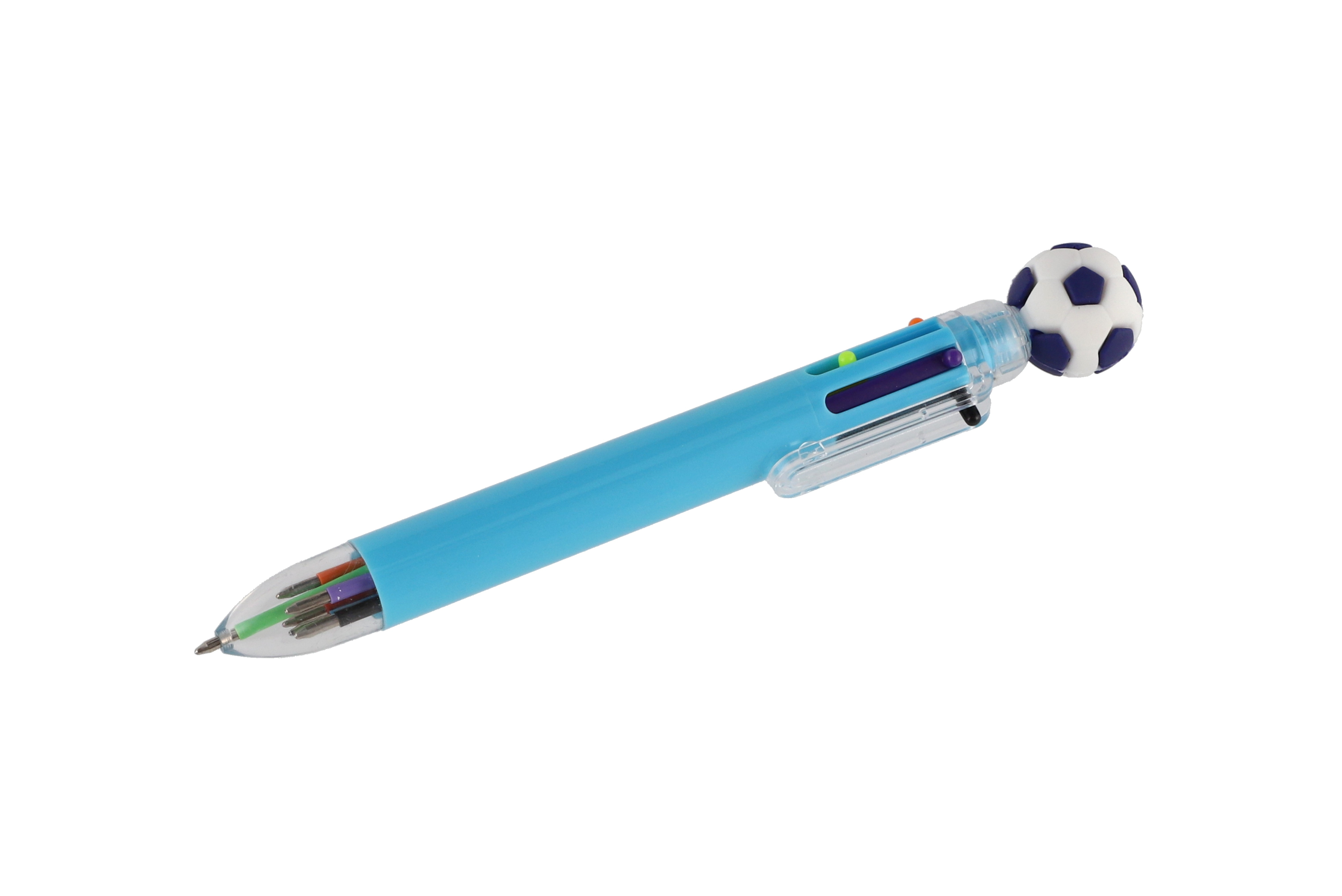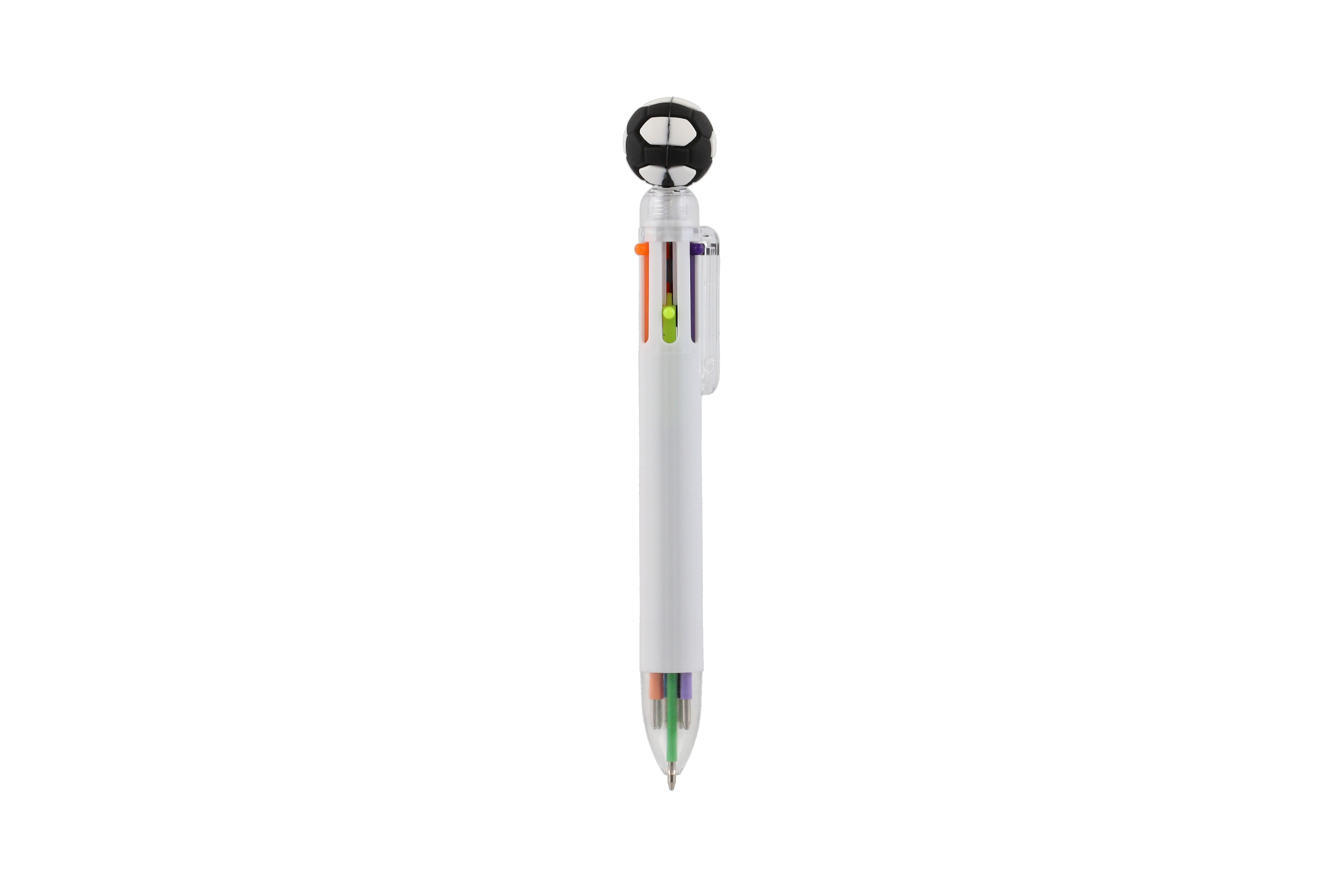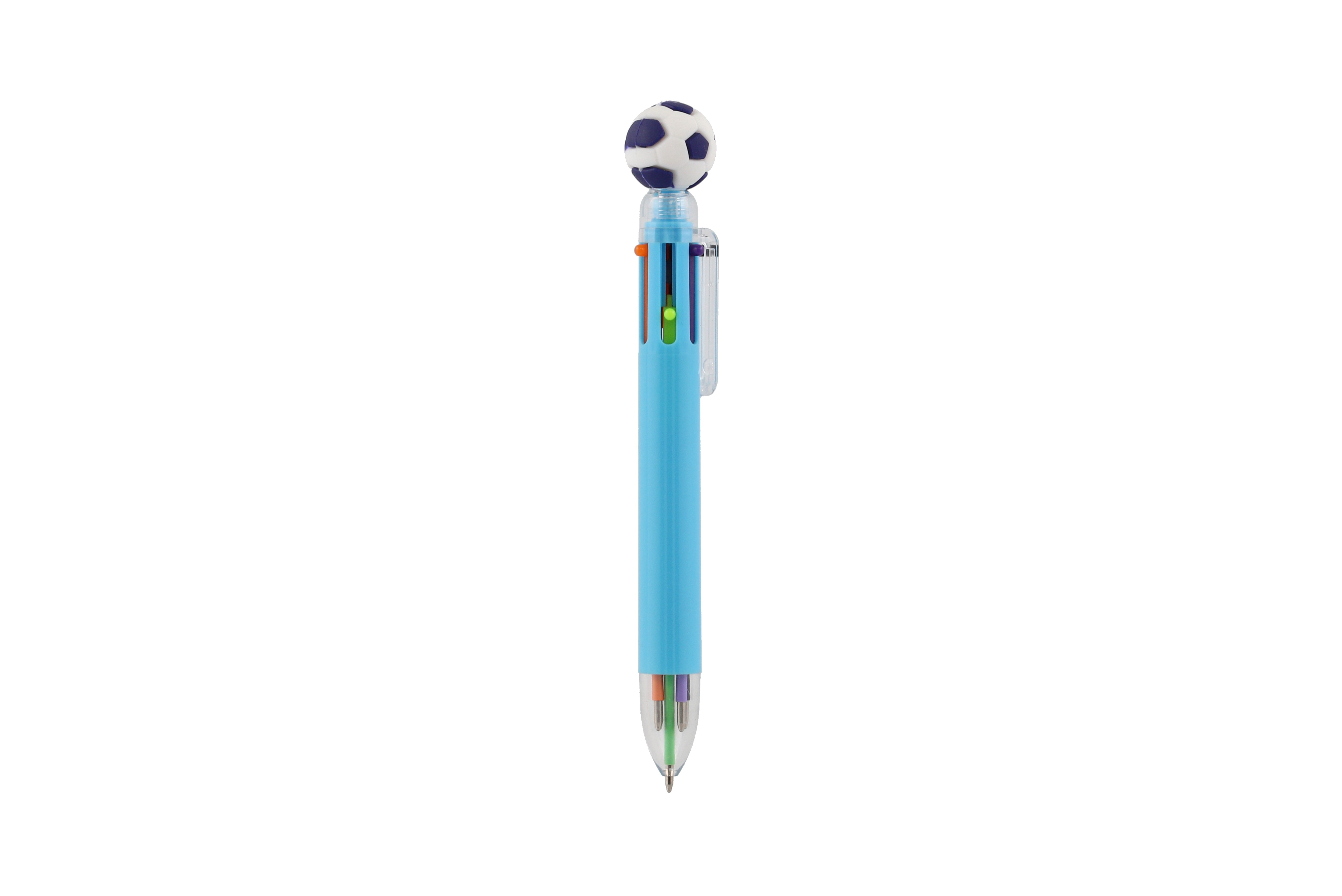 Nápaditá propiska s motivem fotbalu prostě baví! Propiska s fotbalovým míčem zkrátka nesmí chybět v žádném penálu ani v žádném dětském šuplíku. Uvnitř se ukrývá 6 barevných tuh, které lze libovolně měnit. Přepínání mezi barvami je velmi snadné, stačí stlačit novou barvu. S touto propiskou si děti užijí spoustu zábavy, kreslení je bude bavit, navíc ji mohou využít jak ve škole, tak doma. Rozměr pera: 16 cm