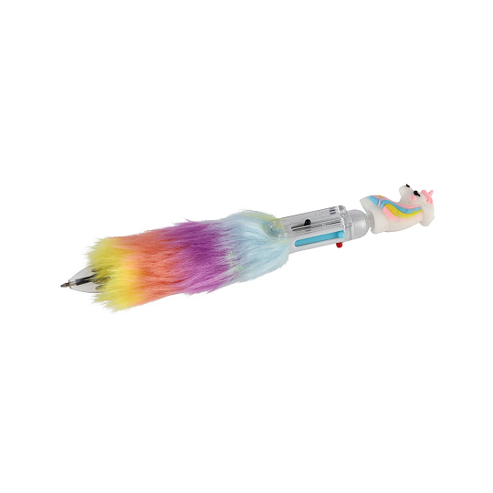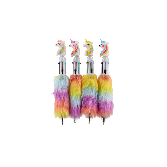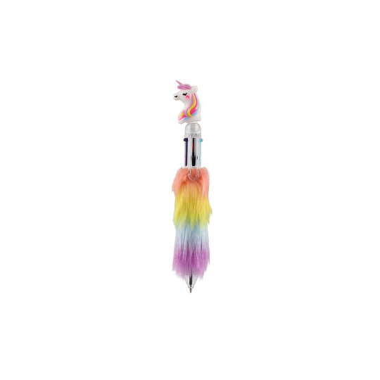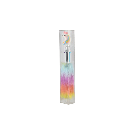 Nápaditá propiska s motivem jednorožce a třásněmi prostě baví! Propiska zkrátka nesmí chybět v žádném penálu ani v žádném dětském šuplíku. Uvnitř se ukrývá 6 barevných tuh, které lze libovolně měnit. Přepínání mezi barvami je velmi snadné, stačí stlačit novou barvu. S touto propiskou si děti užijí spoustu zábavy, kreslení a psaní je bude bavit. Rozměr pera: 16 cm