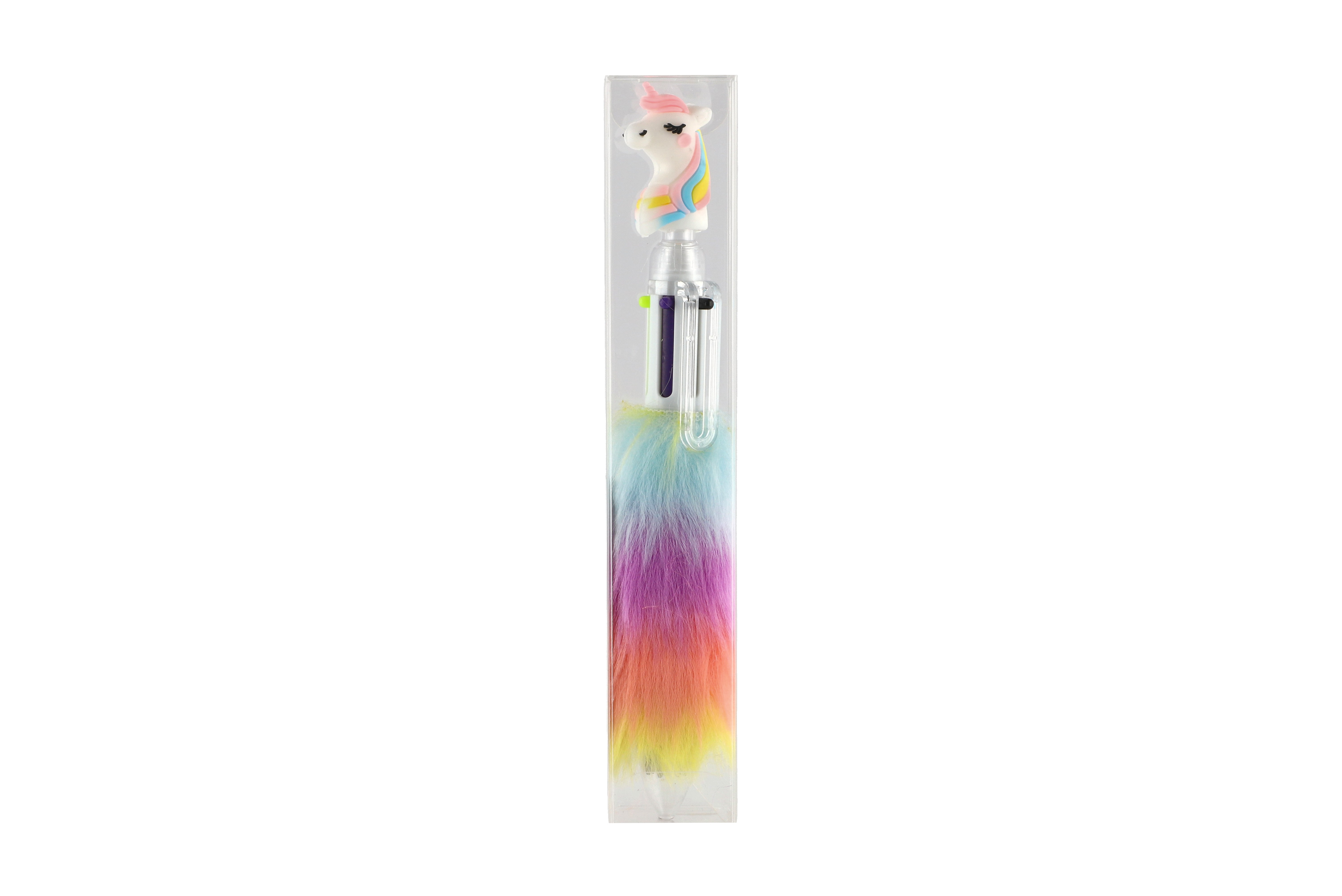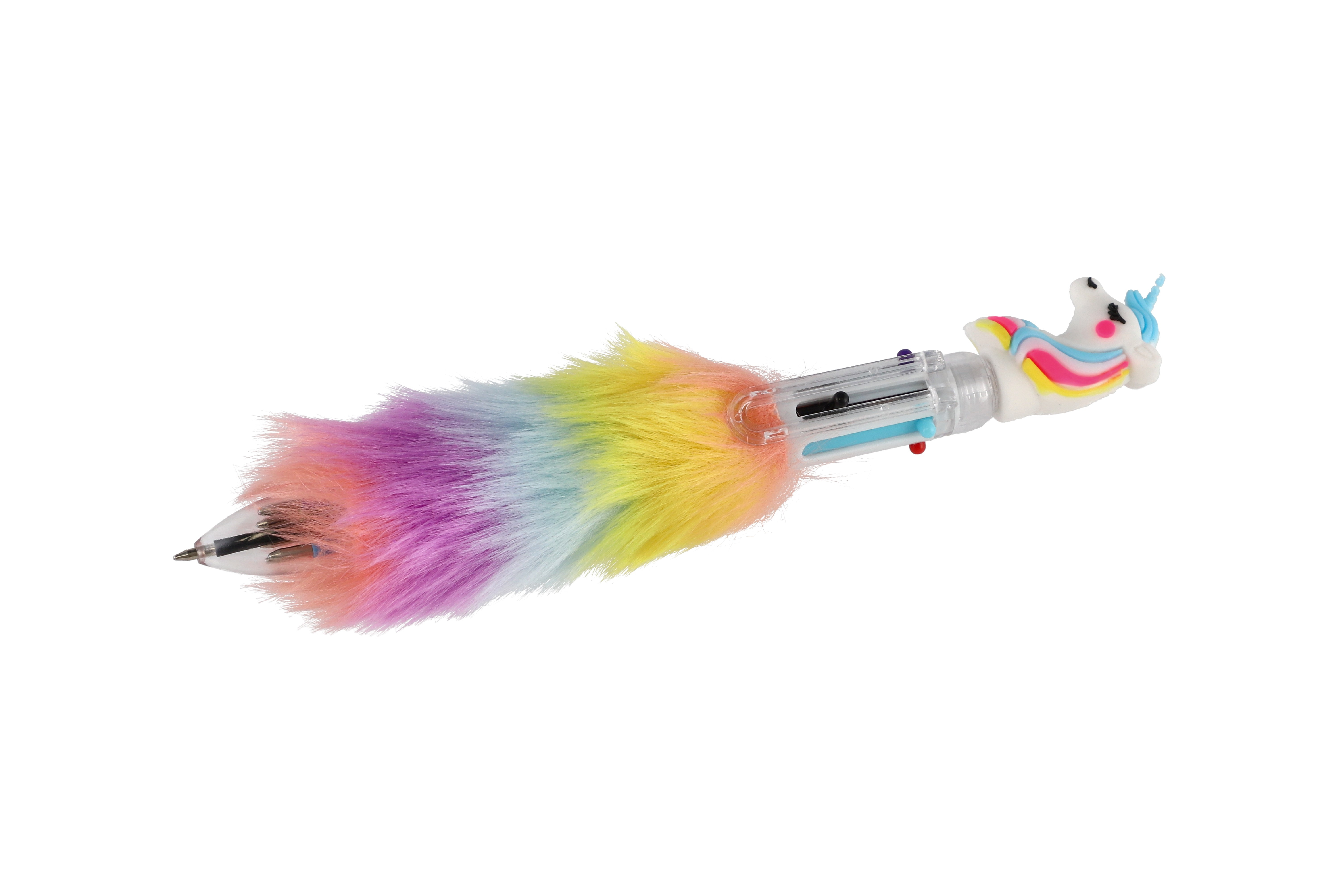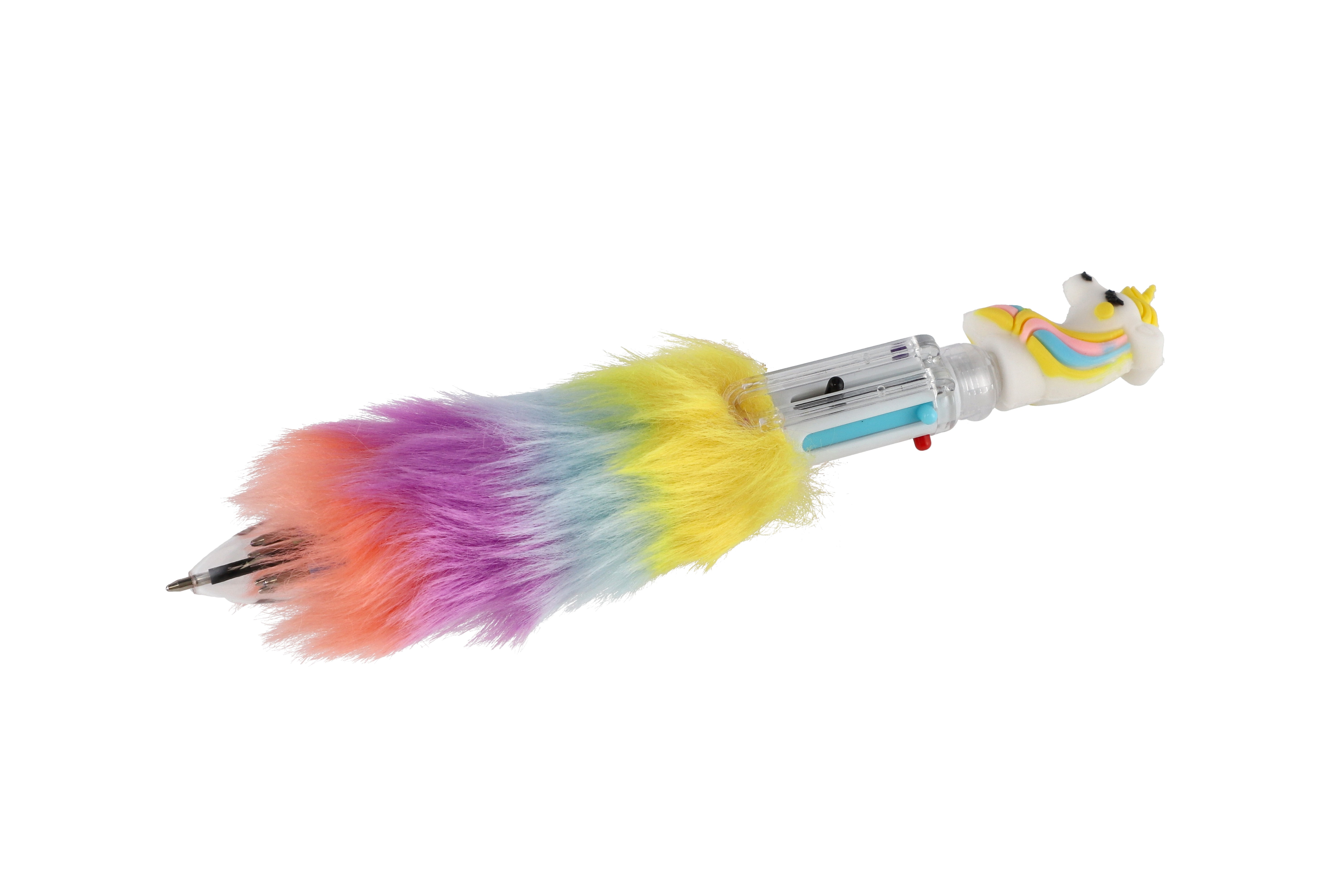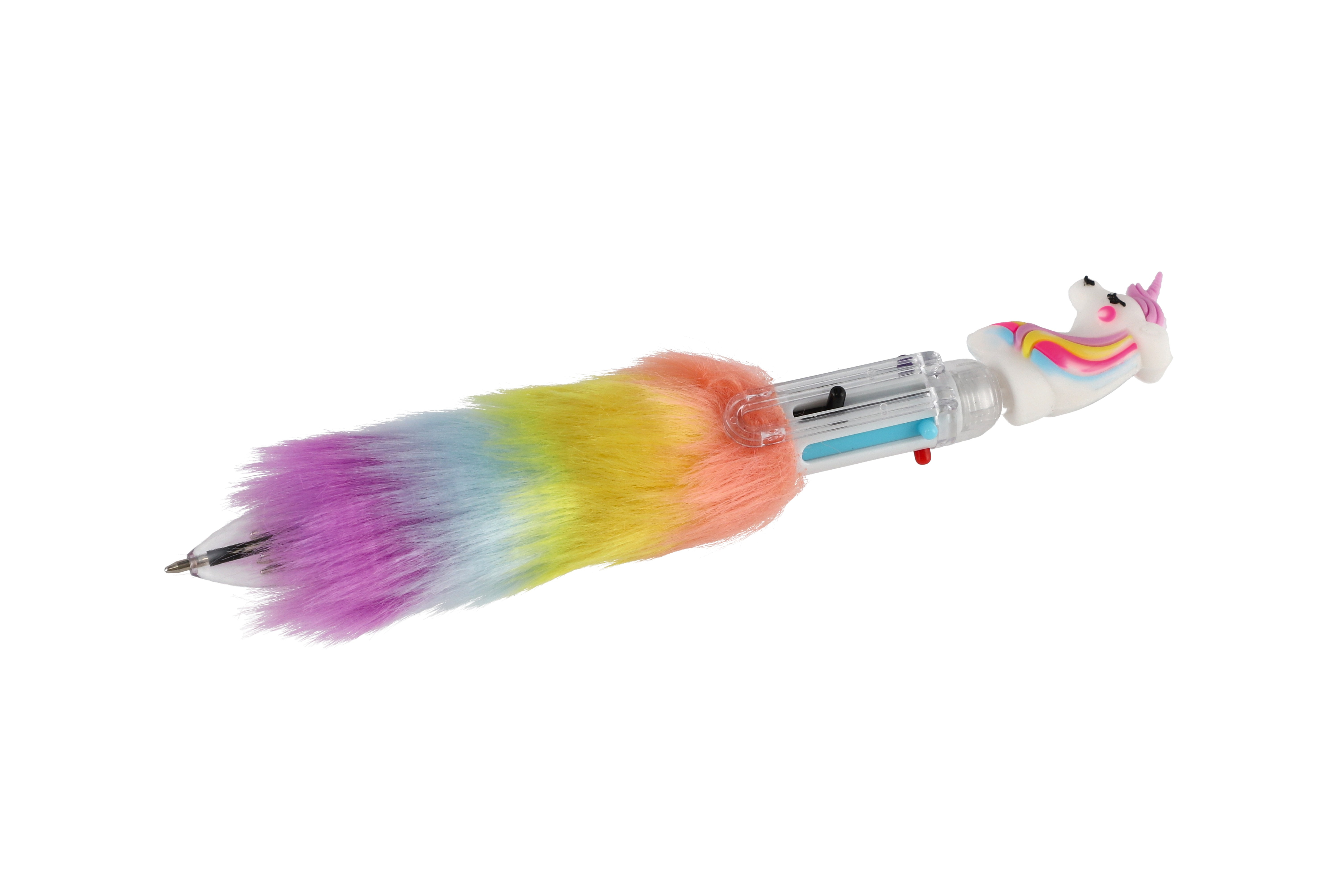 Nápaditá propiska s motivem jednorožce a třásněmi prostě baví! Propiska zkrátka nesmí chybět v žádném penálu ani v žádném dětském šuplíku. Uvnitř se ukrývá 6 barevných tuh, které lze libovolně měnit. Přepínání mezi barvami je velmi snadné, stačí stlačit novou barvu. S touto propiskou si děti užijí spoustu zábavy, kreslení a psaní je bude bavit. Rozměr pera: 16 cm