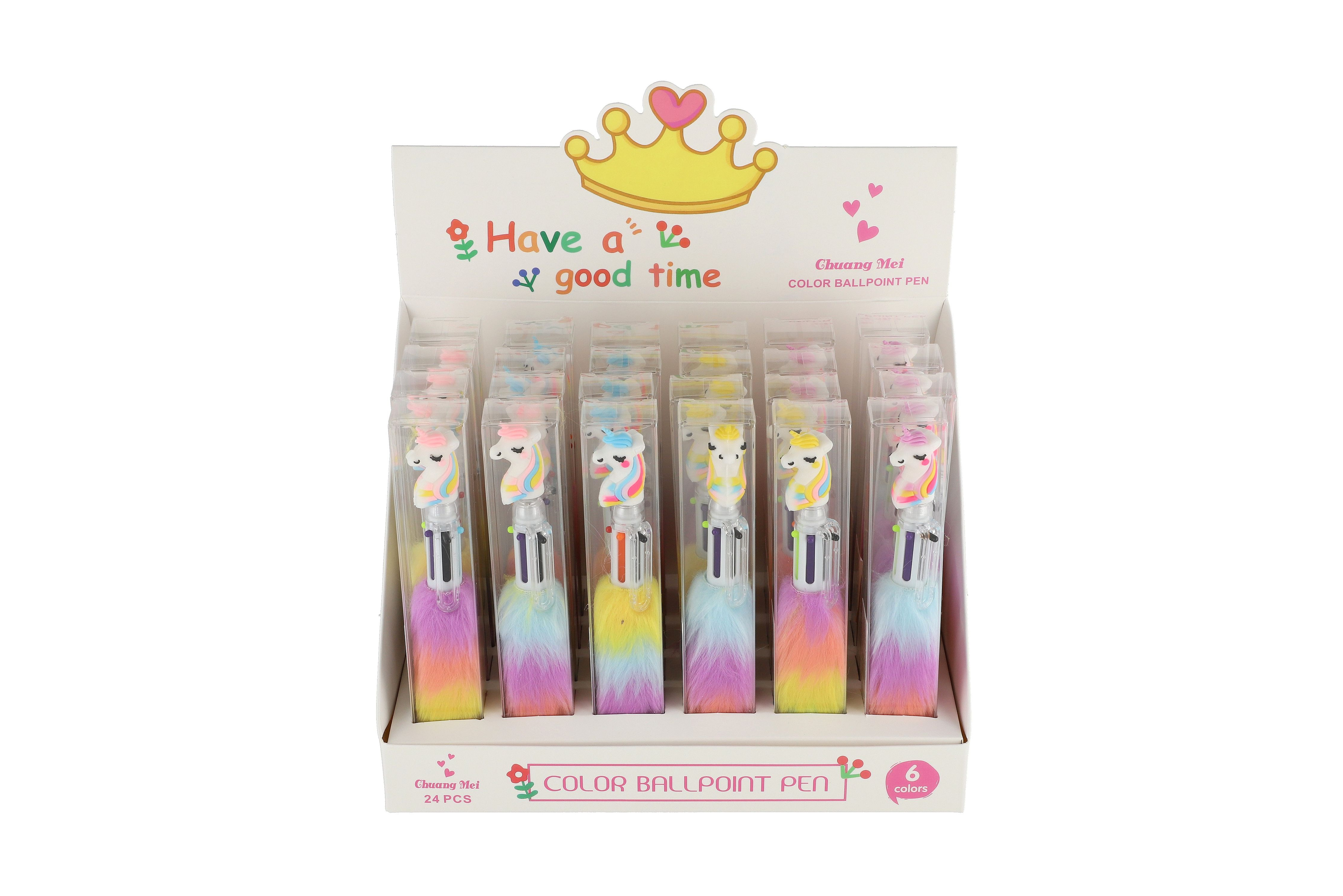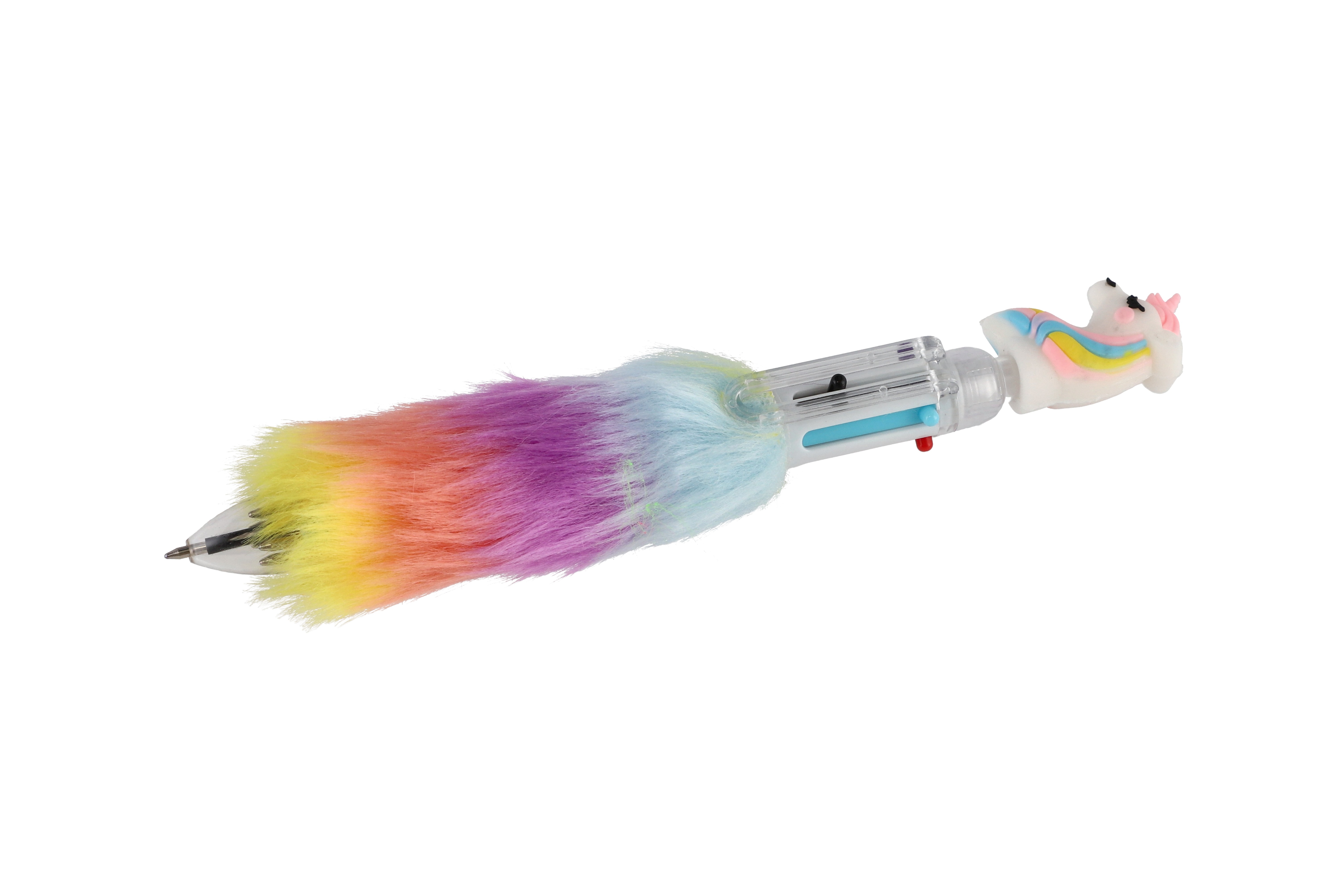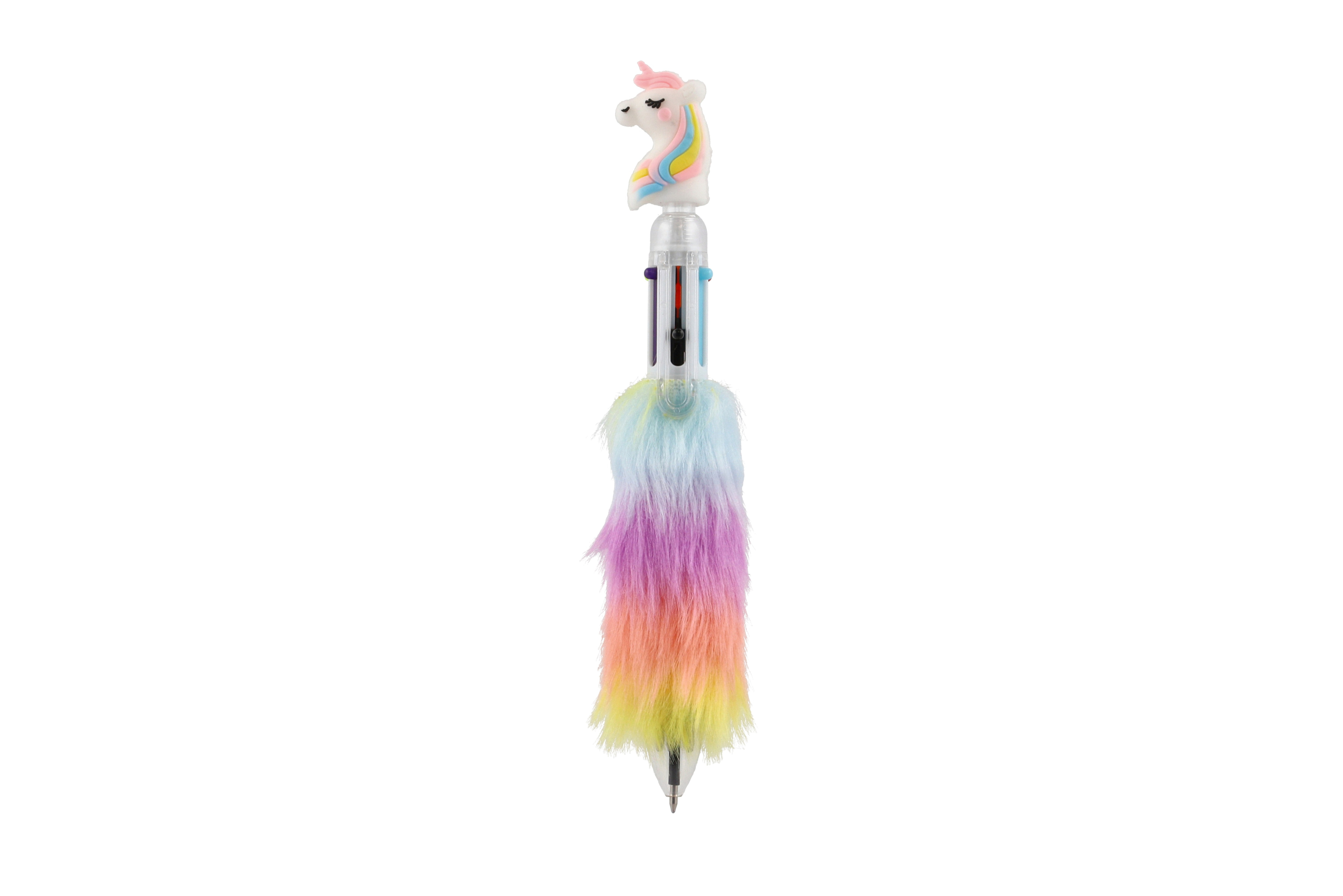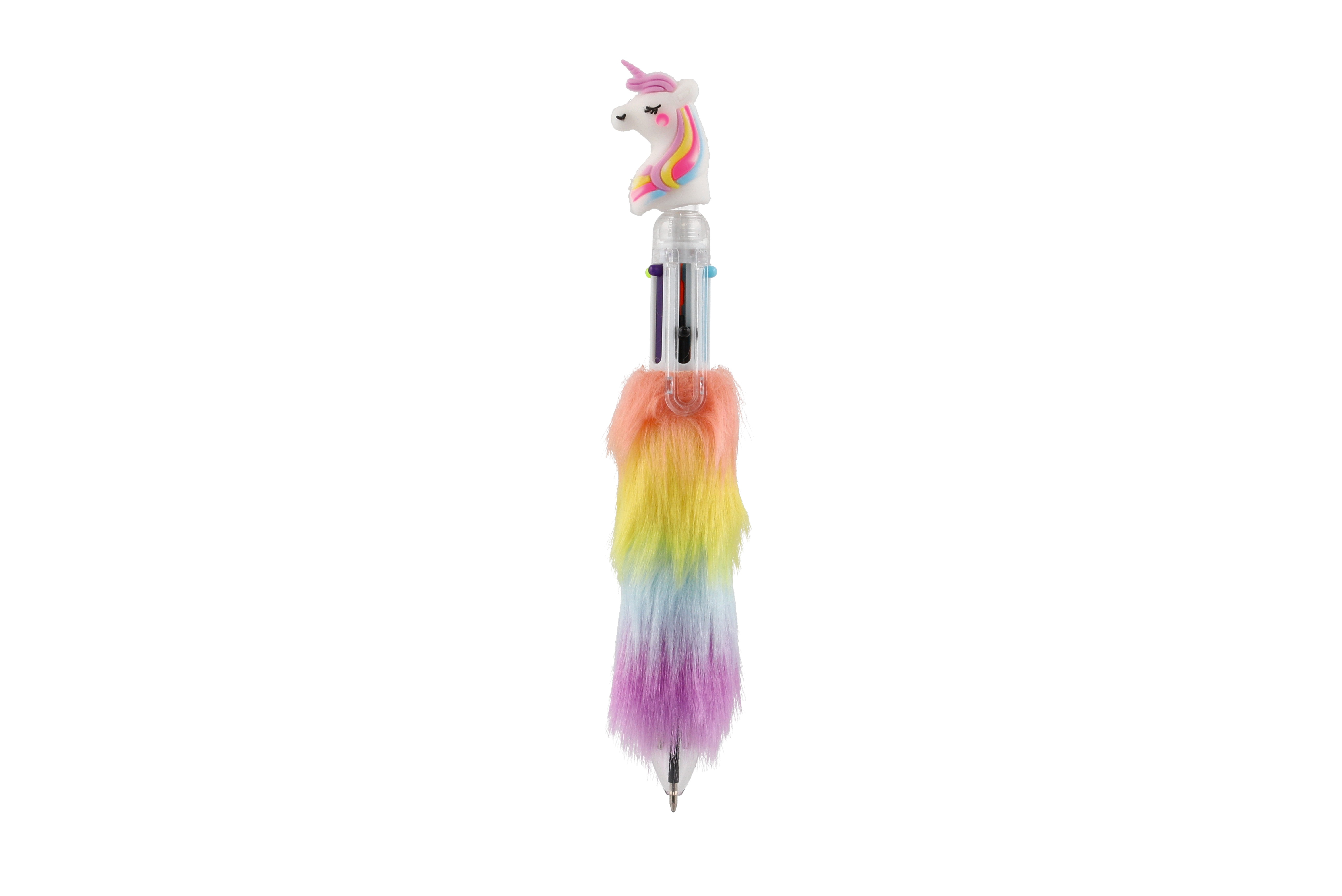 Nápaditá propiska s motivem jednorožce a třásněmi prostě baví! Propiska zkrátka nesmí chybět v žádném penálu ani v žádném dětském šuplíku. Uvnitř se ukrývá 6 barevných tuh, které lze libovolně měnit. Přepínání mezi barvami je velmi snadné, stačí stlačit novou barvu. S touto propiskou si děti užijí spoustu zábavy, kreslení a psaní je bude bavit. Rozměr pera: 16 cm
