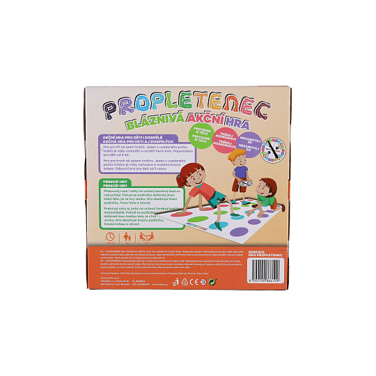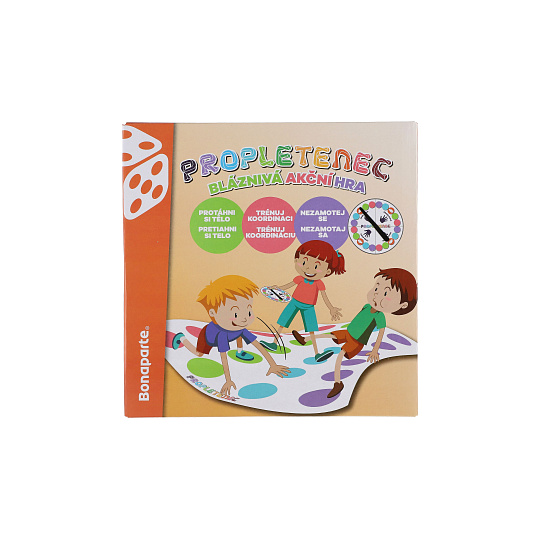Bláznivá akční hra, která velice vtipným způsobem trénuje koordinaci těla. Kdo se nejdéle udrží na nohou, nebo snad na rukou? Přesouvej ruce i nohy na určený barevný bod co nejrychleji. Pokud se podložky dotkneš jinou částí těla, jsi ze hry venku. Obsahuje hrací podložku velikosti 117 x 160 cm, hrací kolo a návod. Hra je určena pro 3 až 7 hráčů. Rozměry balení 28 x 27 x 6 cm. Vhodné pro děti od 5 let.