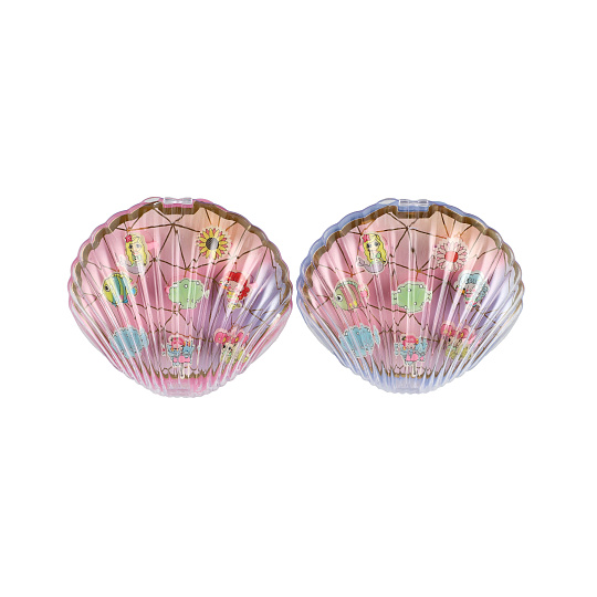 Prstýnek/Prstýnky plast 8ks nastavitelná velikost 2 barvy v krabičce ve tvaru mušle 12ks v boxu