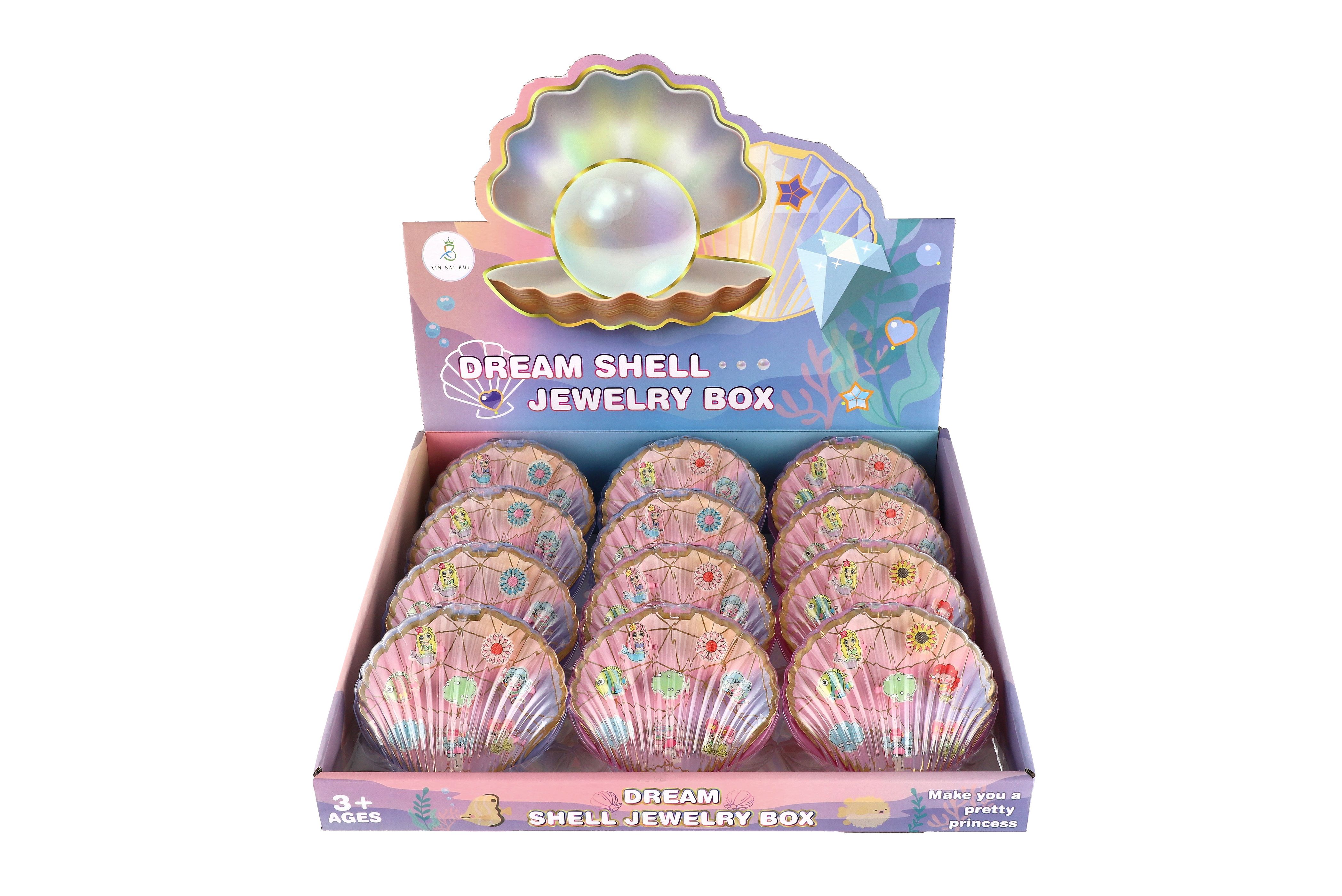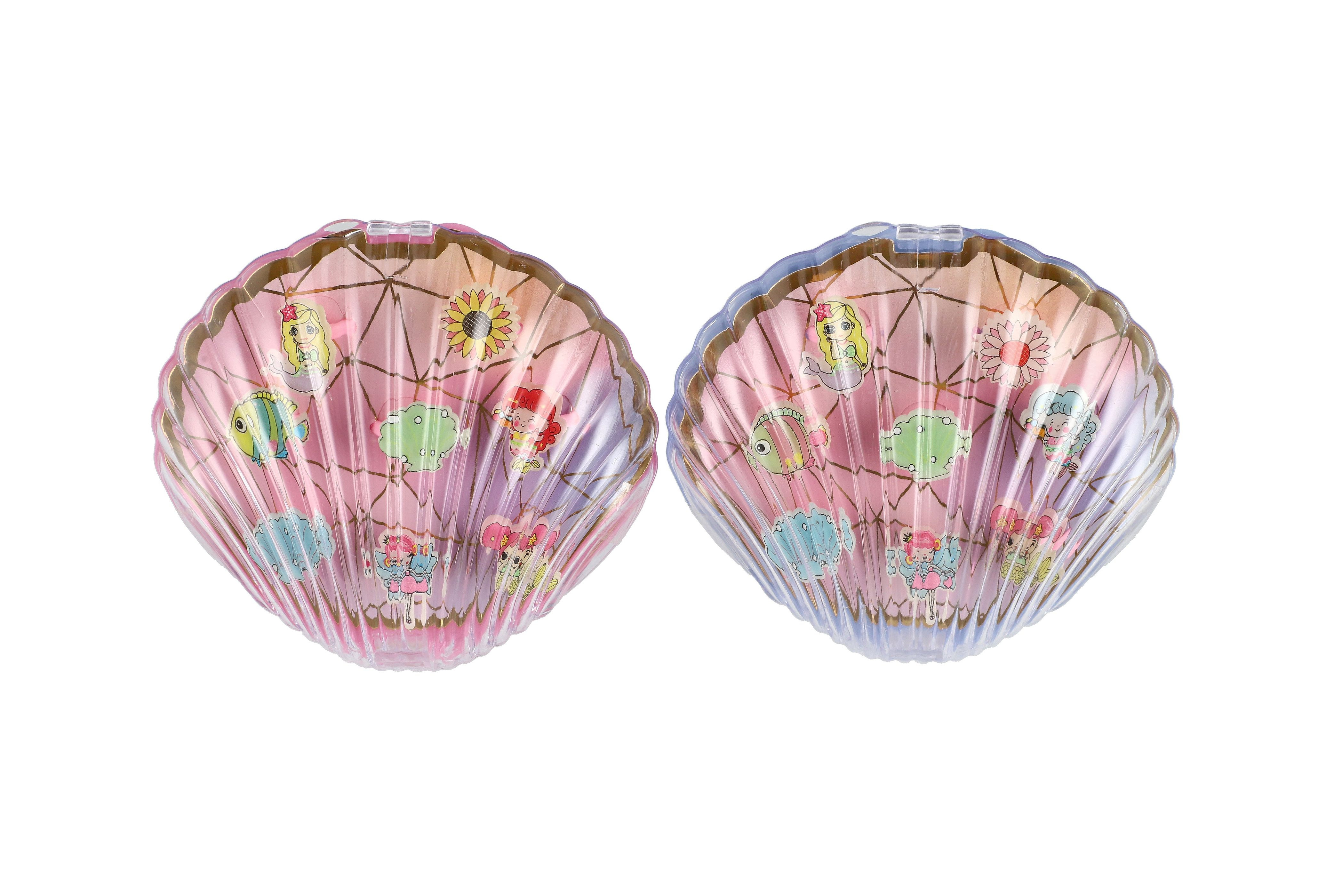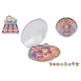 Prstýnek/Prstýnky plast 8ks nastavitelná velikost 2 barvy v krabičce ve tvaru mušle 12ks v boxu