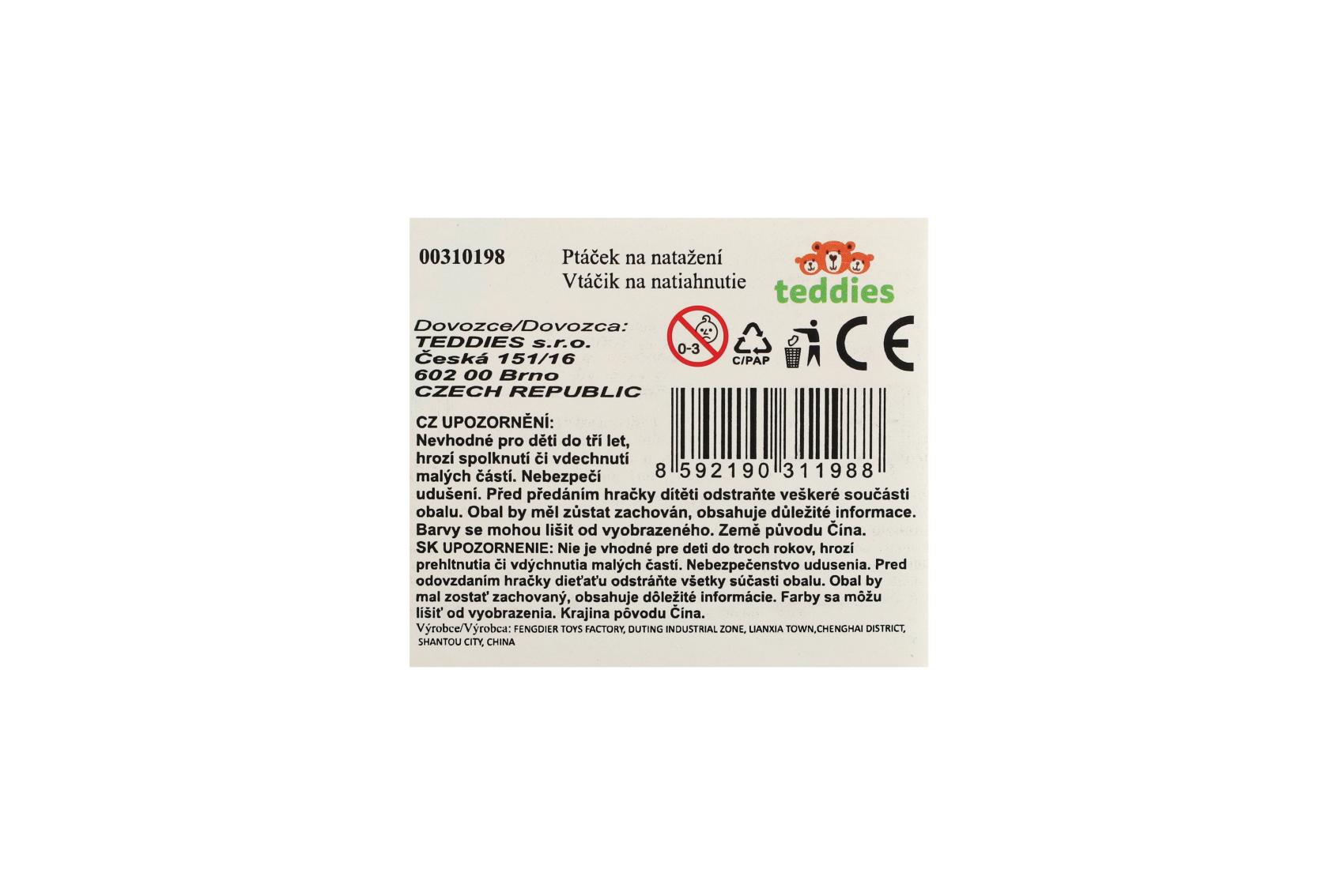 Rozkošný plastový ptáček na klíček, který po natažení vesele skáče po stole nebo podlaze. Jednoduchý mechanický pohyb z něj dělá oblíbenou hračku pro děti, které milují zvířátka a pohyb. Rozměry výrobku 6 x 8 x 11 cm Vhodné pro děti od 3 let