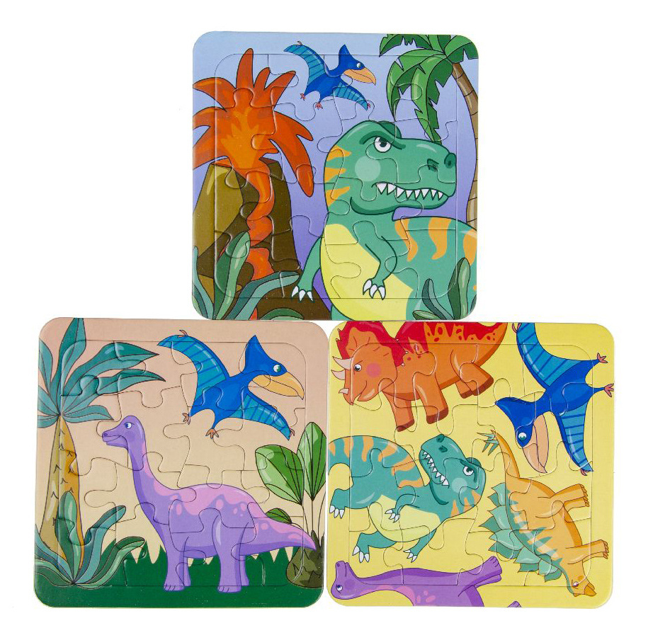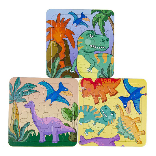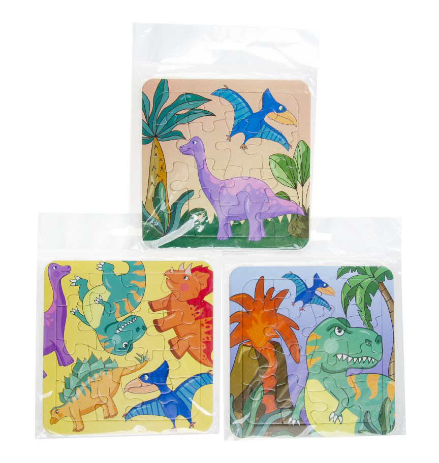 Puzzle deskové Dinosauři 16 dílků, 3 druhy/motivy, puzzle se skládá na podložce/do rámečku, velikost14x14 cm. Nelze vybrat konkrétní druh, dodáváme dle skladové dostupnosti.