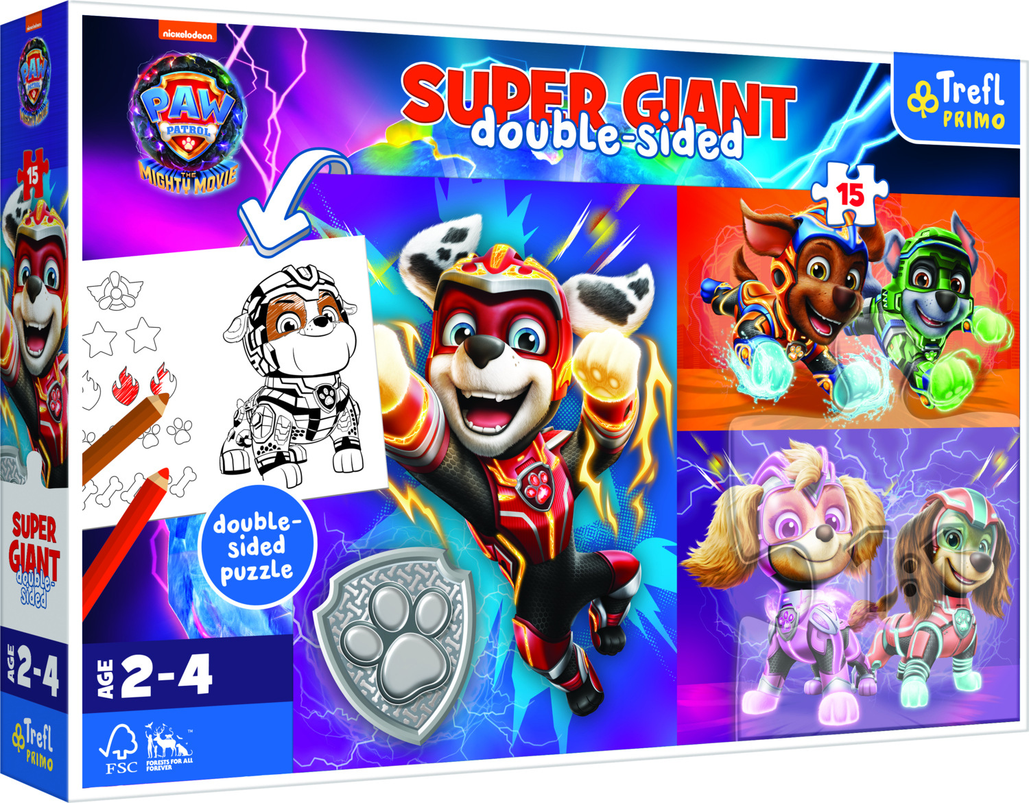 Puzzle GIANT oboustranné Skvělý tým Tlapkové patroly/Paw patrol 15 dílků v krab. 40x27cm 24m+