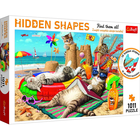 Puzzle Kočky na pláži - Skryté tvary 1011 dílků 68x48cm v krabici 40x27x6cm