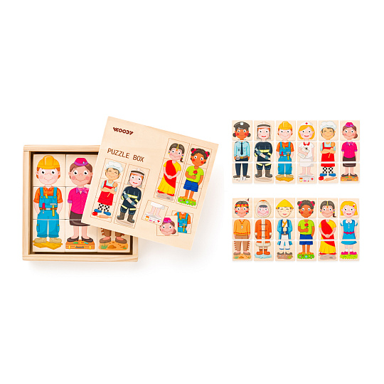 Woody Puzzle - Lidé a povolání z celého světa, v dřevěné krabičce