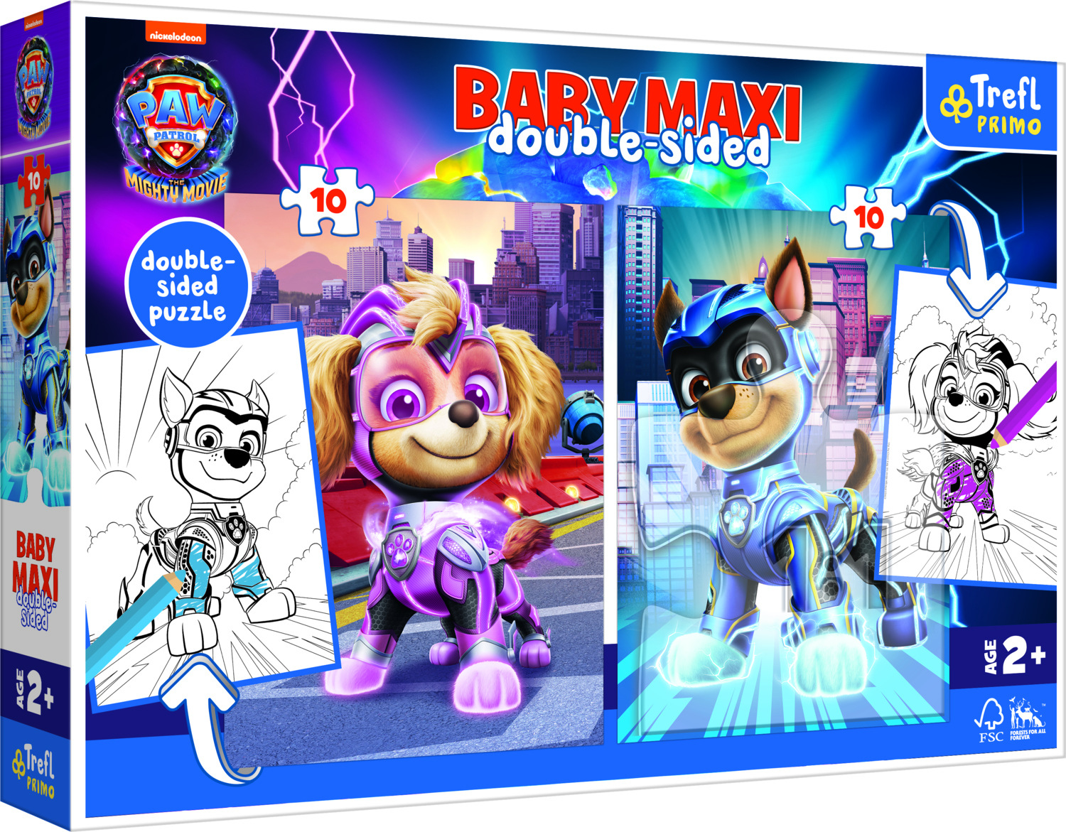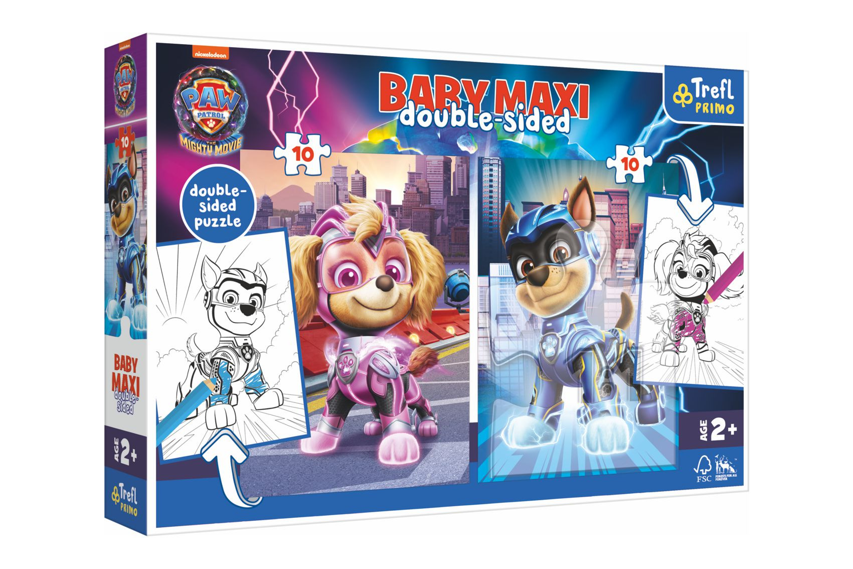 Čtyři hry v jednom produktu! 2 puzzle s 10 velkými dílky, vhodné pro nejmenší děti (od 2 let). Na zadní straně každého puzzle je omalovánka s oblíbenými animovanými postavičkami. Rozměry složených obrázků 30 x 40 cm. Rozměry balení 40 x 27 x 6 cm. Vhodné pro děti od 2 let.