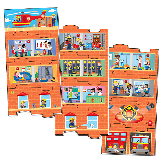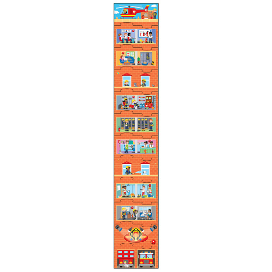 Děti mohou začít s dolním dílkem a připojit 10 dalších dílků v libovolném pořadí, následovaných vrchním dílkem a vytvořit si tak svou požární stanici pokaždé jinou.