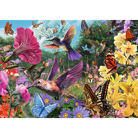Kvalitní puzzle nadchne nejen fanoušky těchto skládaček. Procvičujte svoji pozornost, ale také trpělivost. Krásný motiv znázorňuje kolibříky v zahradě. Puzzle se skládá z 1000 dílků. Velikost složeného obrázku je 68,3 x 48 cm. Rozměry balení: 40 x 27 x 6 cm Vhodné pro děti od 12 let