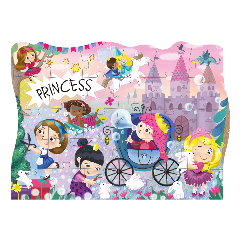 Zábavné a poutavé puzzle přenáší děti do světa princezen. Tato originální hračka kombinuje radost ze skládání puzzle s kreativním světem holčiček. Velikost složeného obrázku 20 x 27 cm. Balení obsahuje 30 dílků. Rozměry balení: 21 x 14 x 4cm Vhodné pro děti od 3 let.