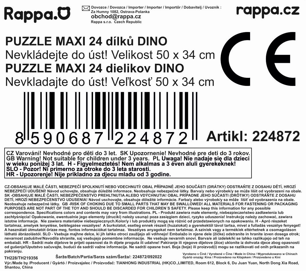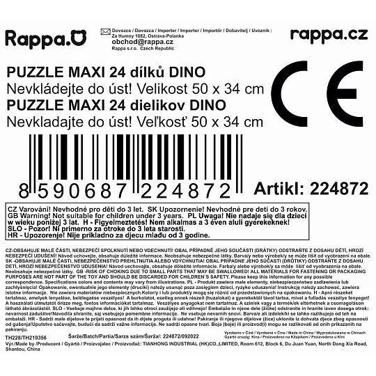 Rappa Puzzle s dinosaury 24 dílů 50 x 34 cm