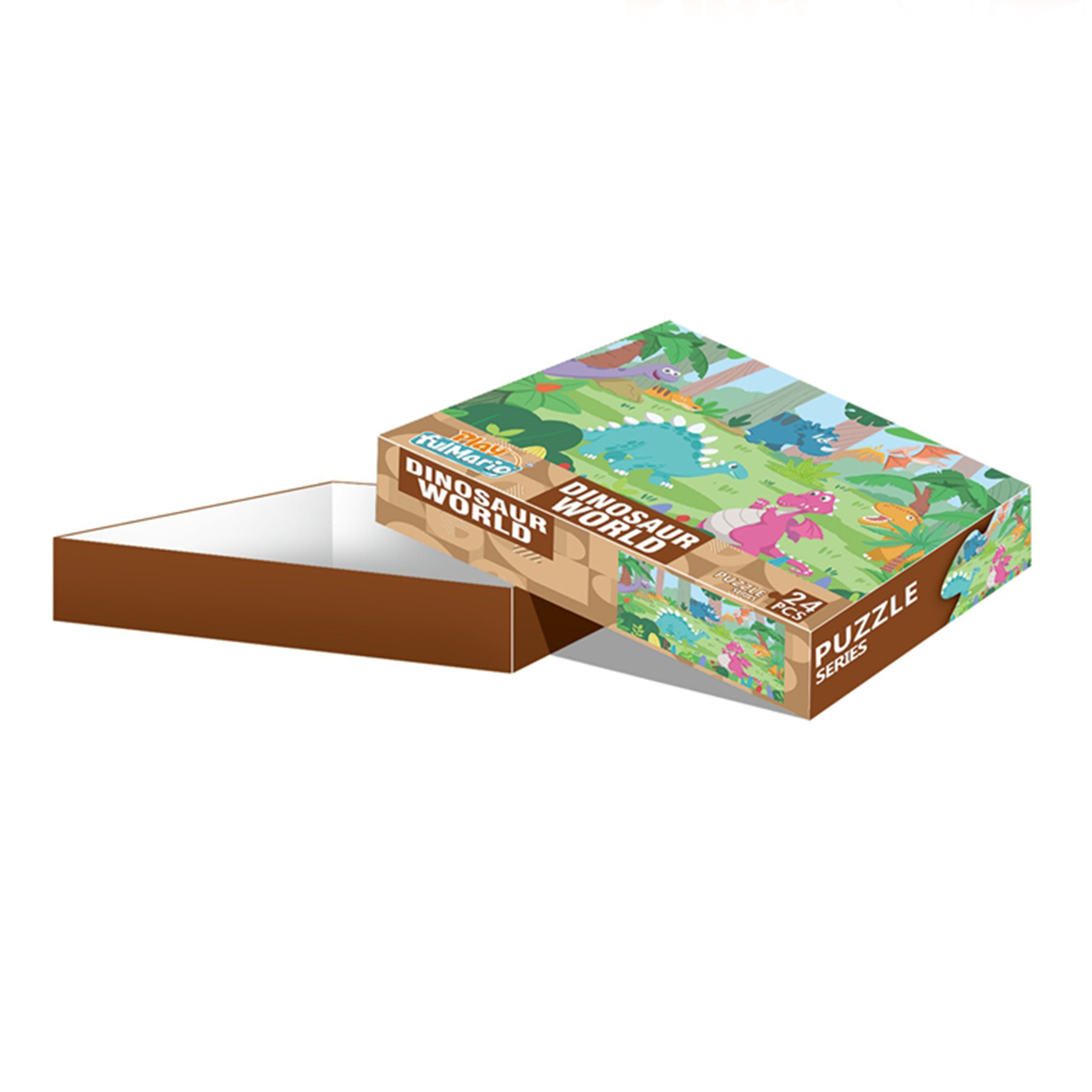 Puzzle s motivem veselých dinosaurů. Obsahuje 24 dílků, výsledný obrazec je velký 50 x 34 cm. Jednotlivé dílky jsou dostatečně velké a snadno uchopitelné. Rozvíjí myšlení a kreativitu dětí.