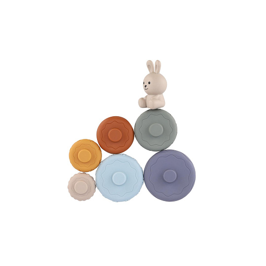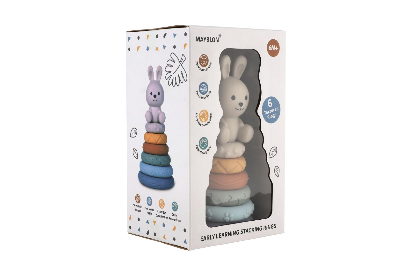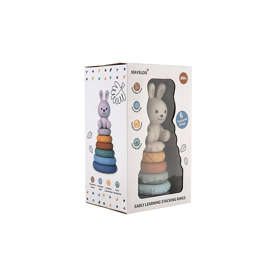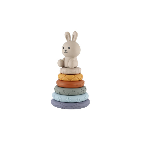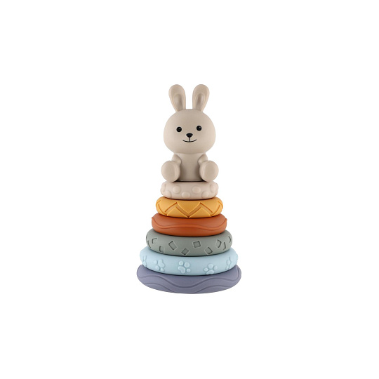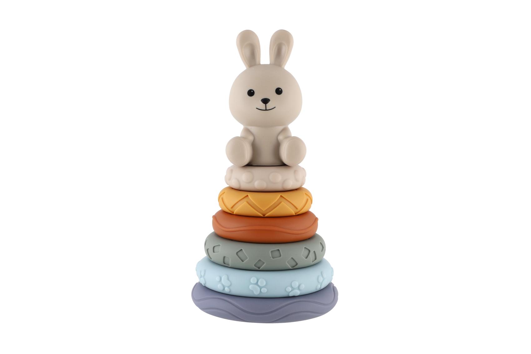 Barevná stohovací pyramida s roztomilým zajíčkem je ideální hračkou pro nejmenší děti. Jednotlivé kroužky mají různé povrchy a textury, které podporují rozvoj hmatu a jemné motoriky. Děti skládáním kroužků na sebe trénují koordinaci pohybů, učí se rozpoznávat velikosti a rozvíjejí logické myšlení.