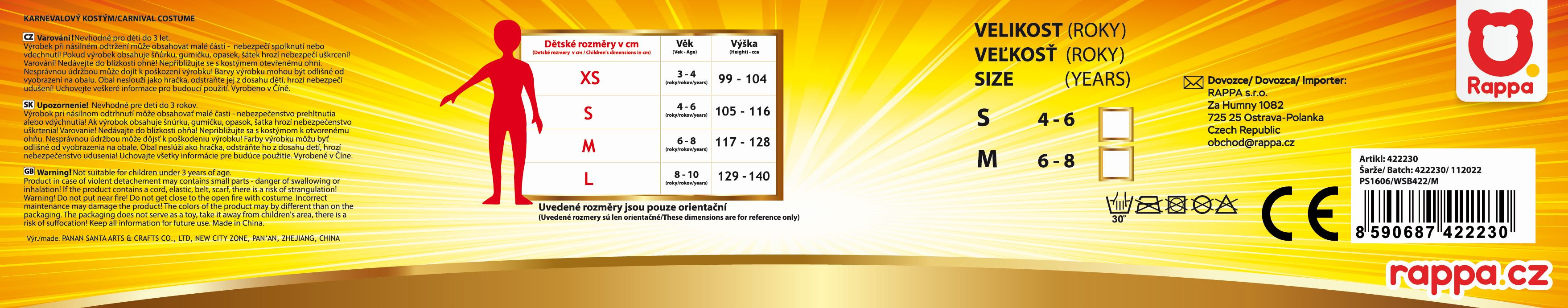 Rappa Dětský kostým čarodějnice barevná/Halloween (M) e-obal