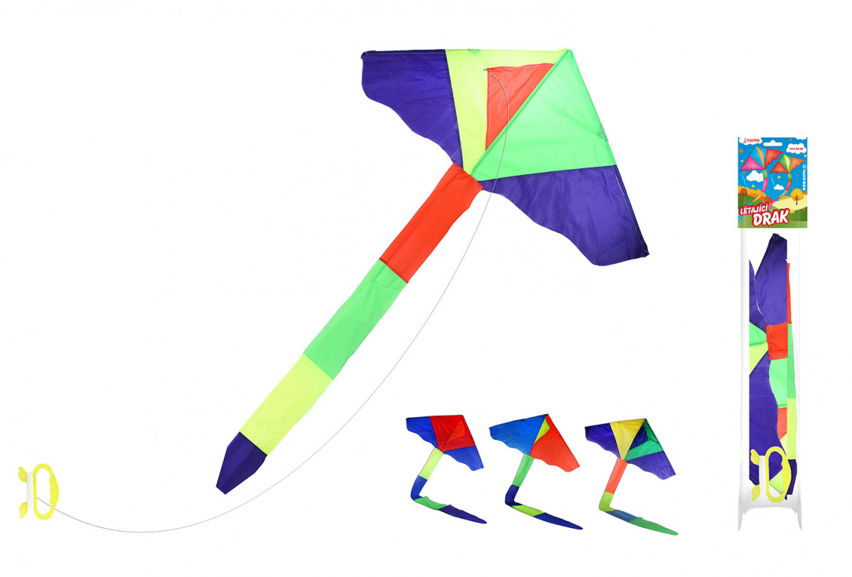 Barevný plastový drak je ideálním doplňkem pro podzimní dovádění! Rozměry draka jsou 128 x 61 cm. Stačí si vybrat! Balení obsahuje draka, konstrukci a vodící šňůru s úchytem.