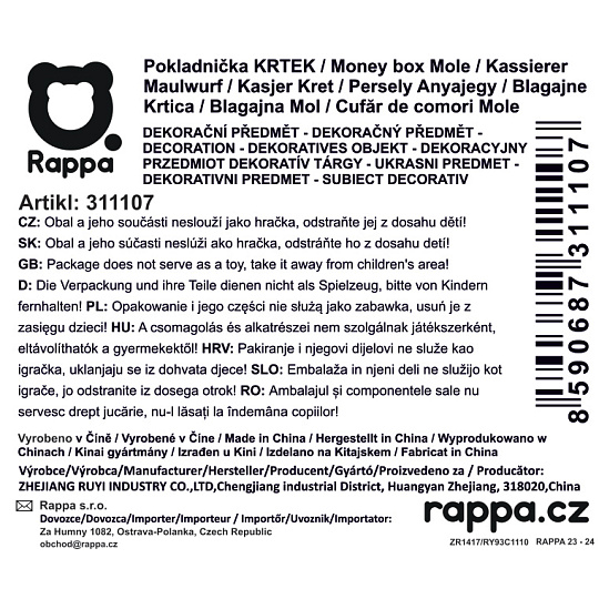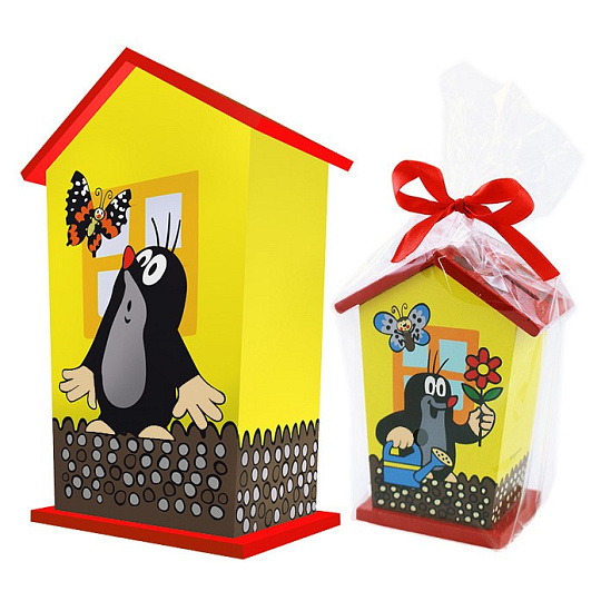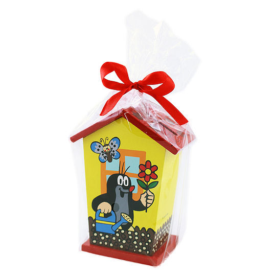 Krásná dřevěná pokladnička s motivem legendárního Krtka na zahrádce. Pokladnička má ve spodní části gumovou zátku a je zabalena v dárkovém balení. Tak šetři s Krtečkem! Rozměr pokladničky je 9 x 12,5 x 6 cm.