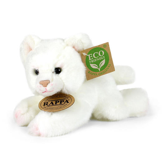 Nádherná plyšová kočka o délce 23 cm. Kočka je vyrobena z vysoce kvalitní plyše a je tak součástí exkluzivní kolekce plyšových hraček RAPPA. Co to vlastně ECO-FRIENDLY znamená? Výplň plyšové hračky je vyrobena z recyklovaných PET lahví. Tento materiál je zcela bezpečný, na omak nerozeznatelný od standartní výplně a plně atestovaný pro bez