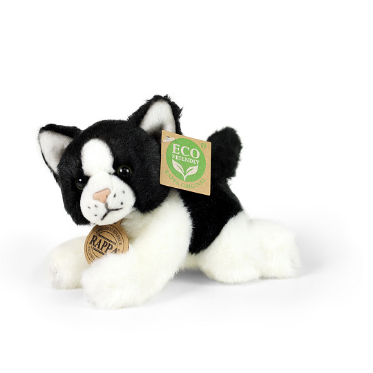 Rappa Plyšová kočka bílo-černá ležící 16 cm ECO-FRIENDLY