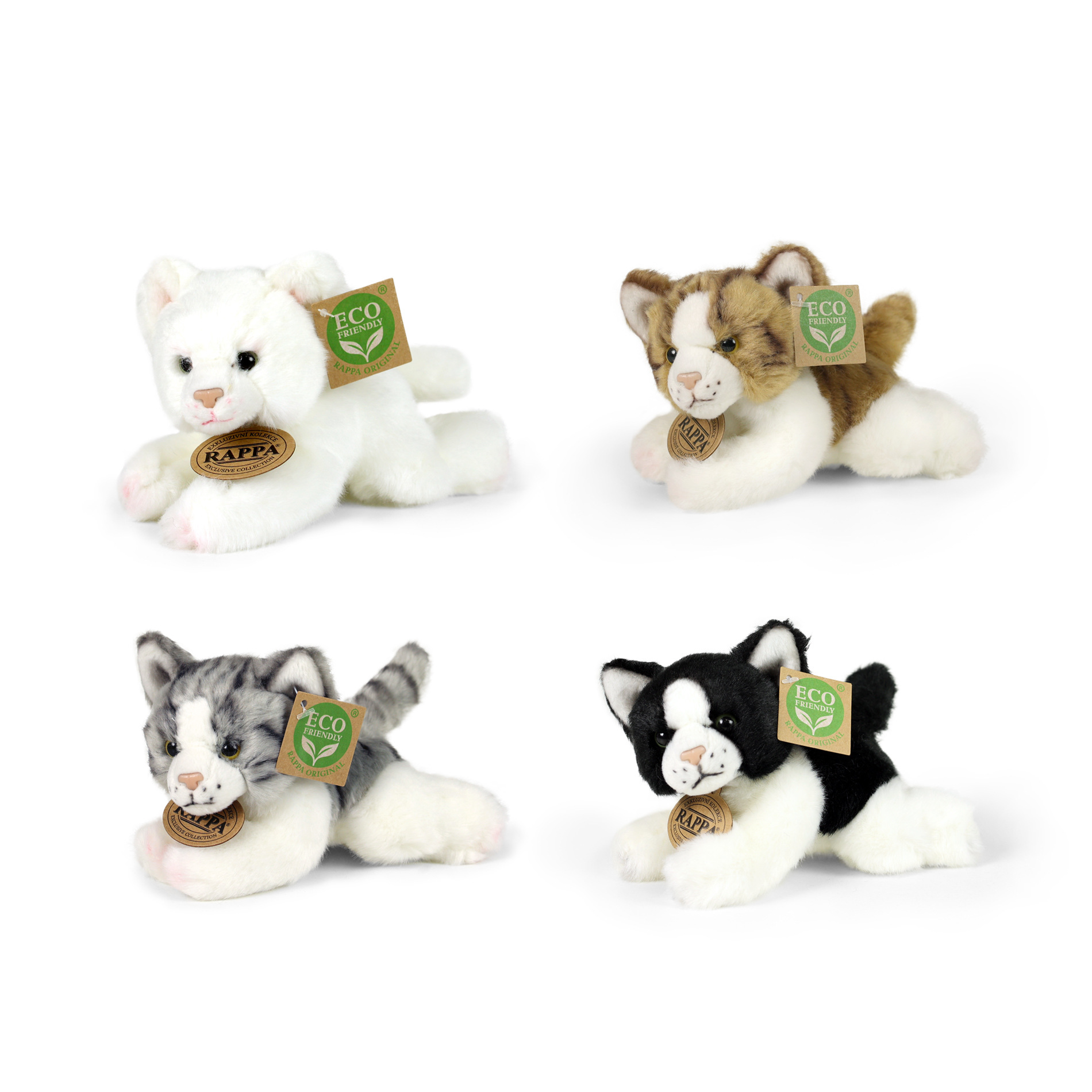 Nádherná plyšová kočka o velikosti 14 cm v šesti druzích. Kočka je vyrobena z vysoce kvalitní plyše a je tak součástí exkluzivní kolekce plyšových hraček RAPPA. Cena je uvedena za 1 ks. Co to vlastně ECO-FRIENDLY znamená? Výplň plyšové hračky je vyrobena z recyklovaných PET lahví. Tento materiál je zcela bezpečný, na omak nerozeznatelný o