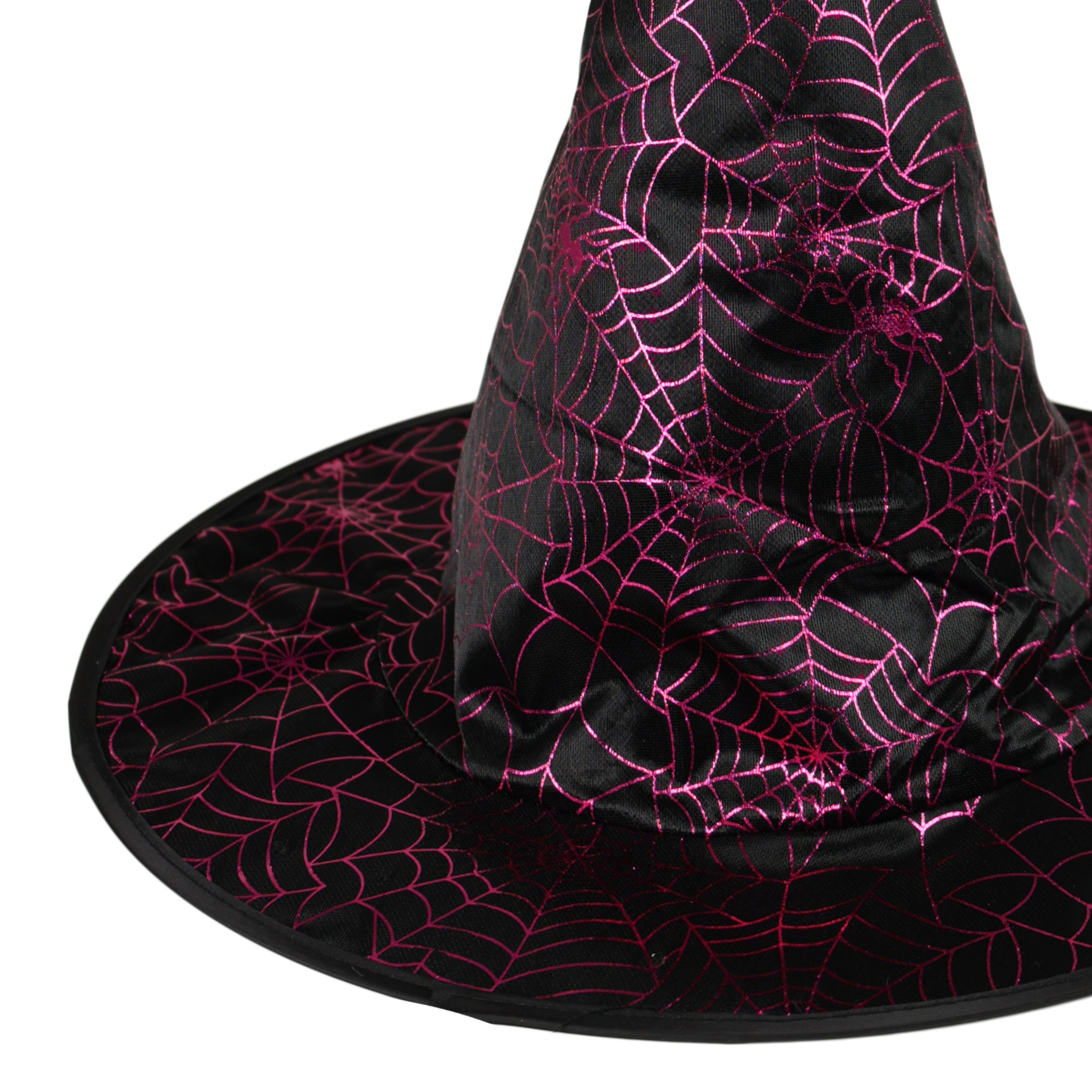 Karnevalový halloweenský klobouk zdobený magickými pavučinami a flitry. Je určen pro dospělé. Výška klobouku cca 39 cm.
